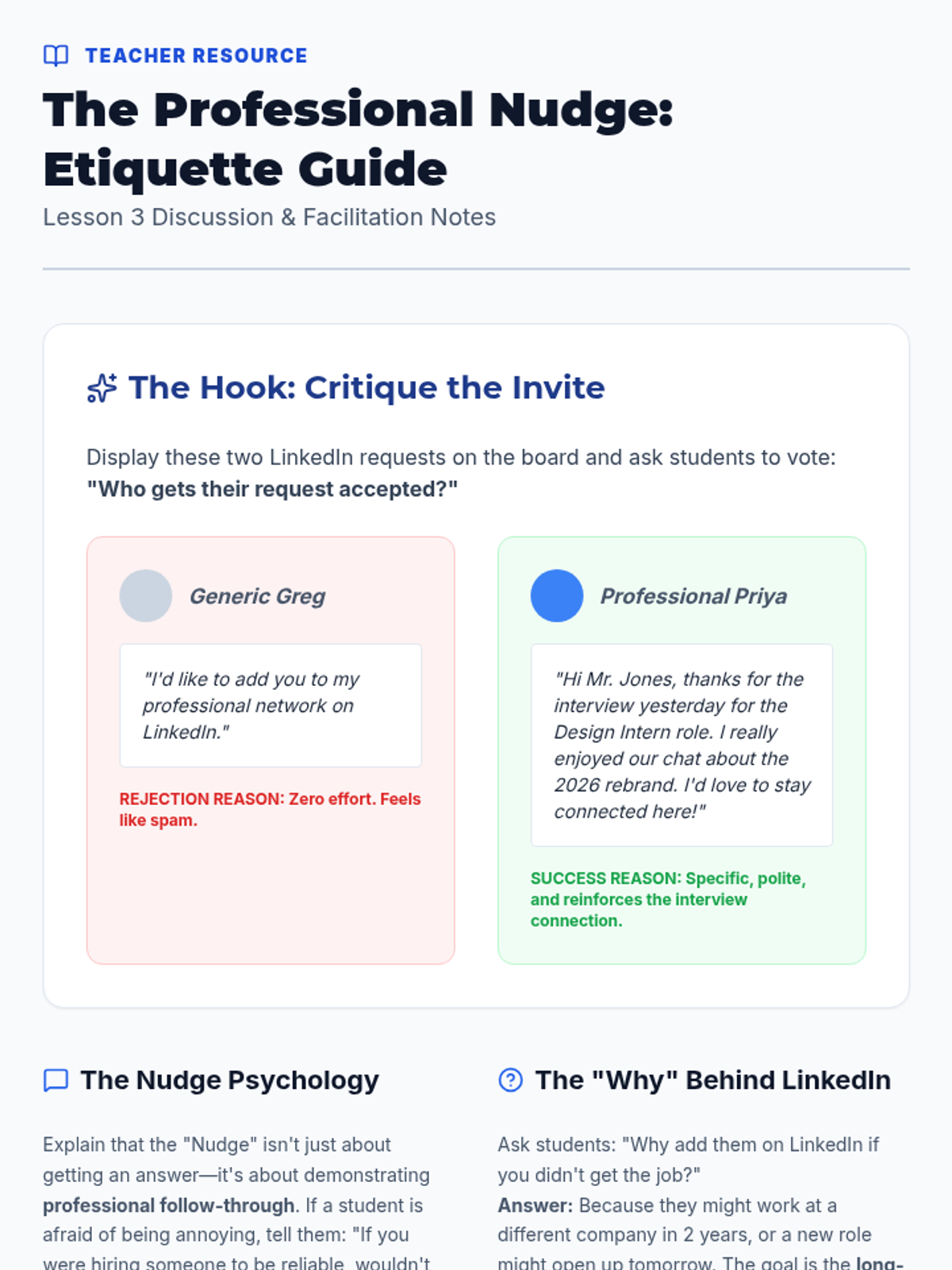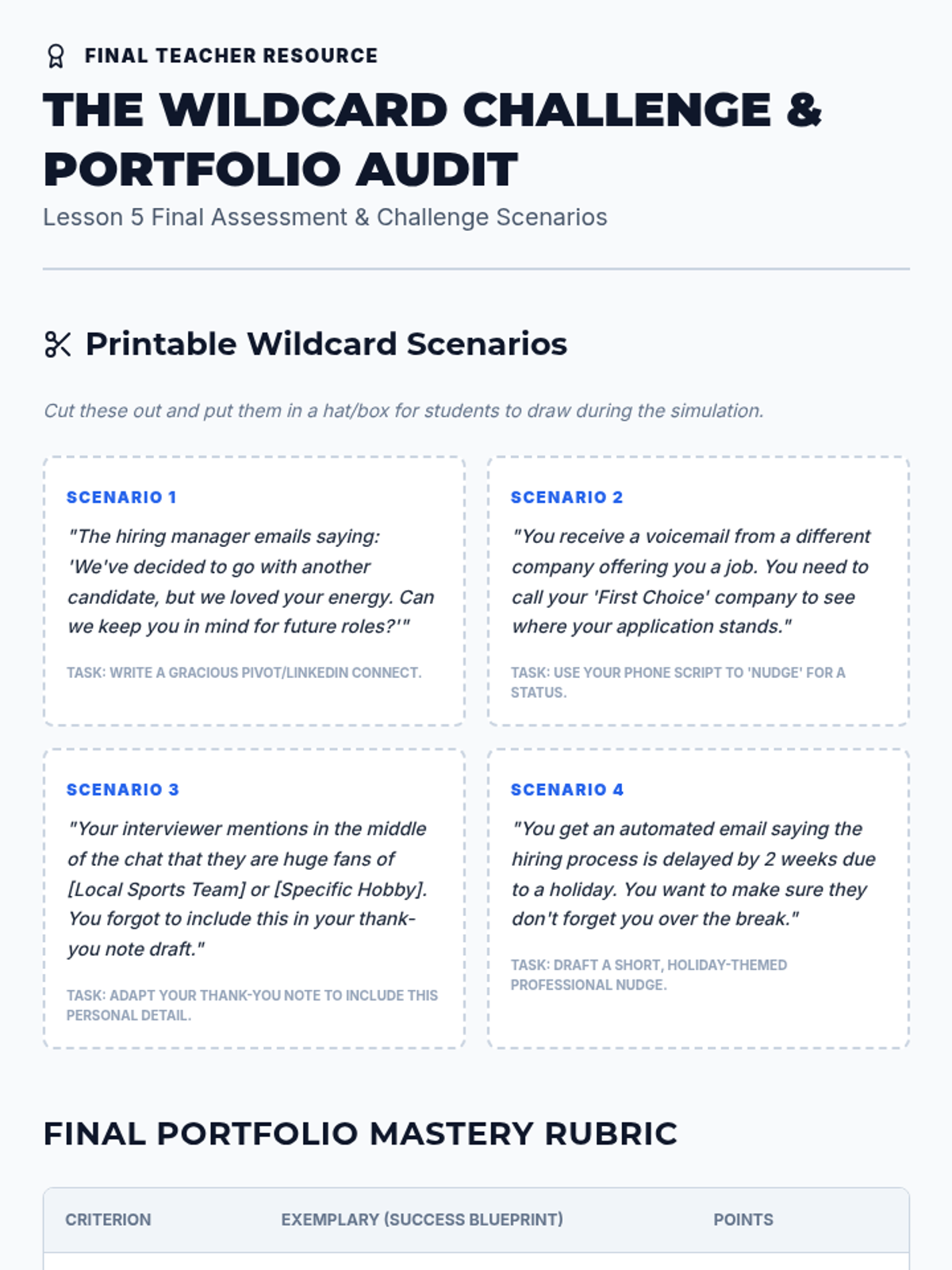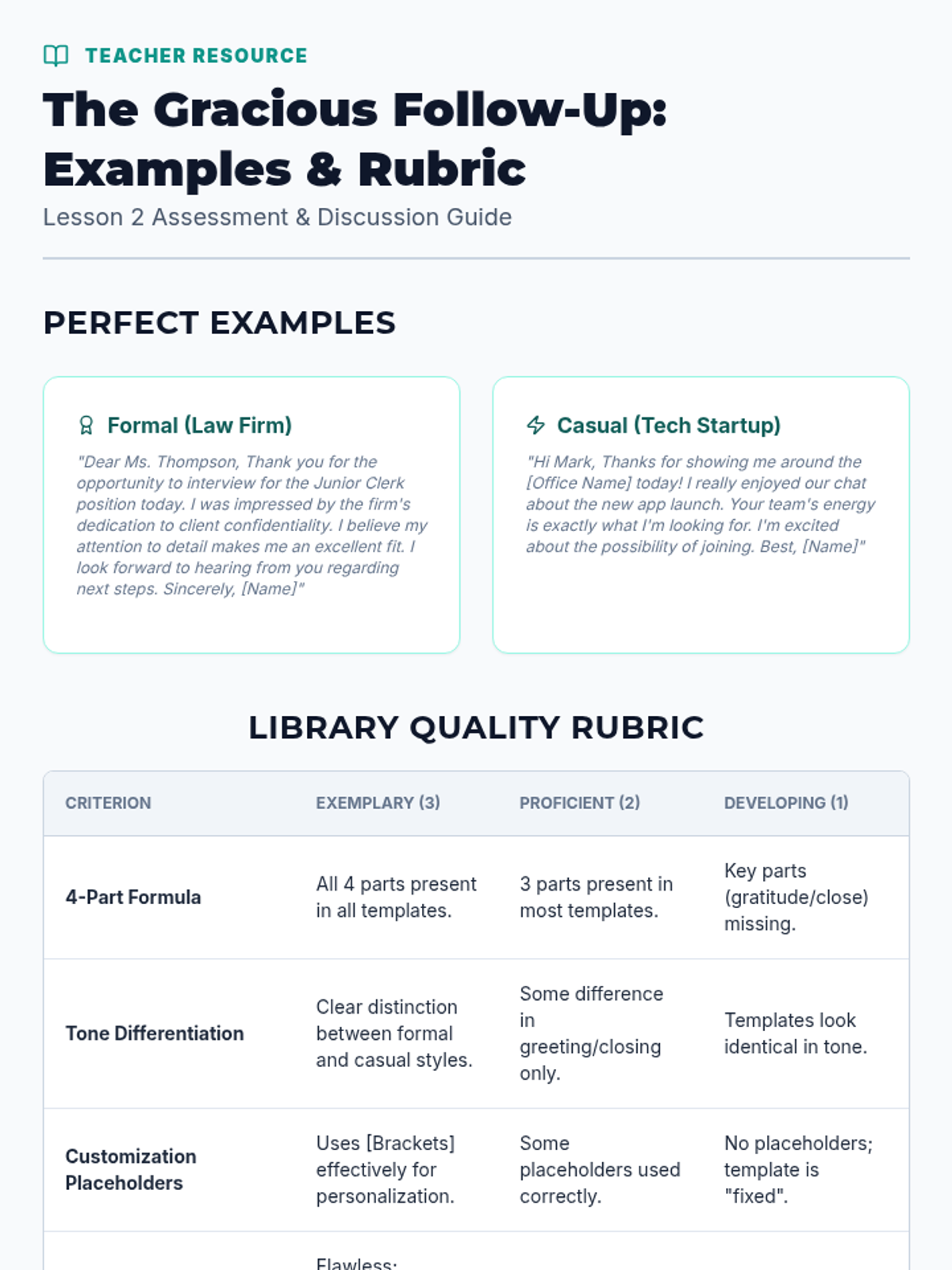 A project-based sequence where 9th-grade students build a 'Follow-Up Kit' of templates, trackers, and scripts to navigate the post-interview process with confidence and organization.