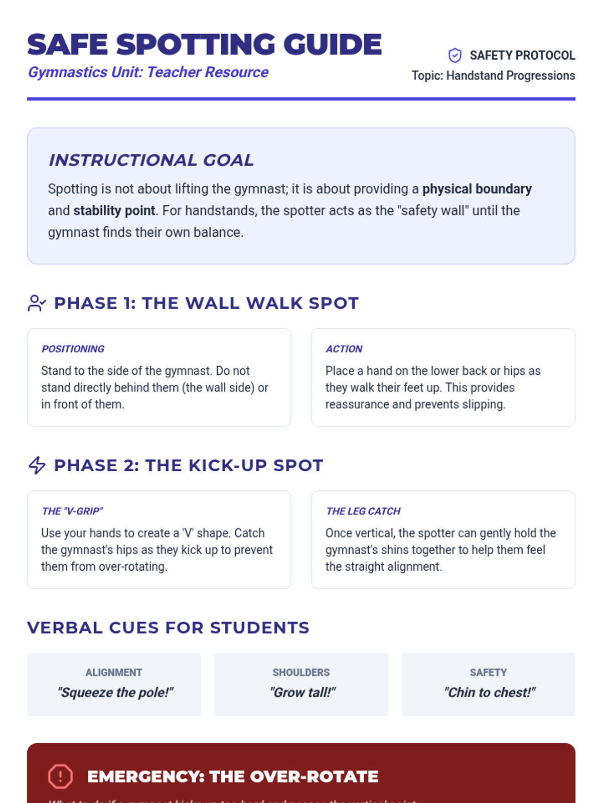A 5th-grade gymnastics unit focusing on weight transfer, inverted balances, and vaulting mechanics. Students progress from animal walks to handstands and explosive vaulting take-offs.