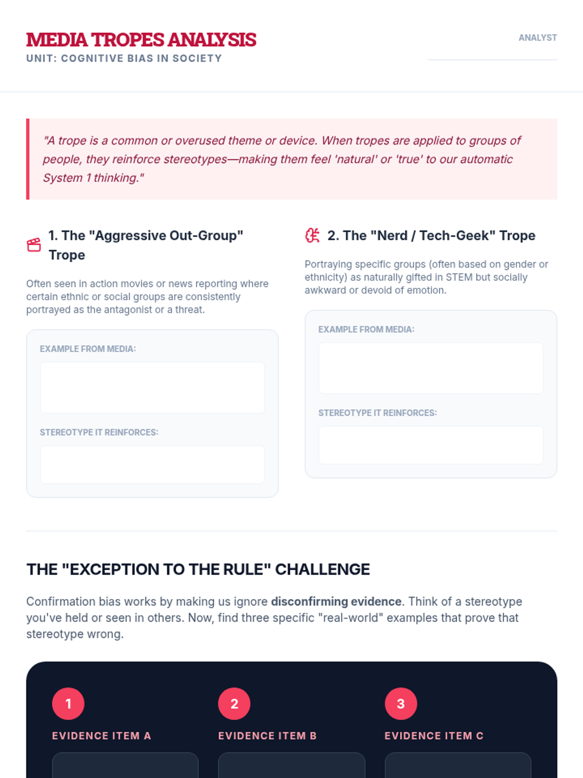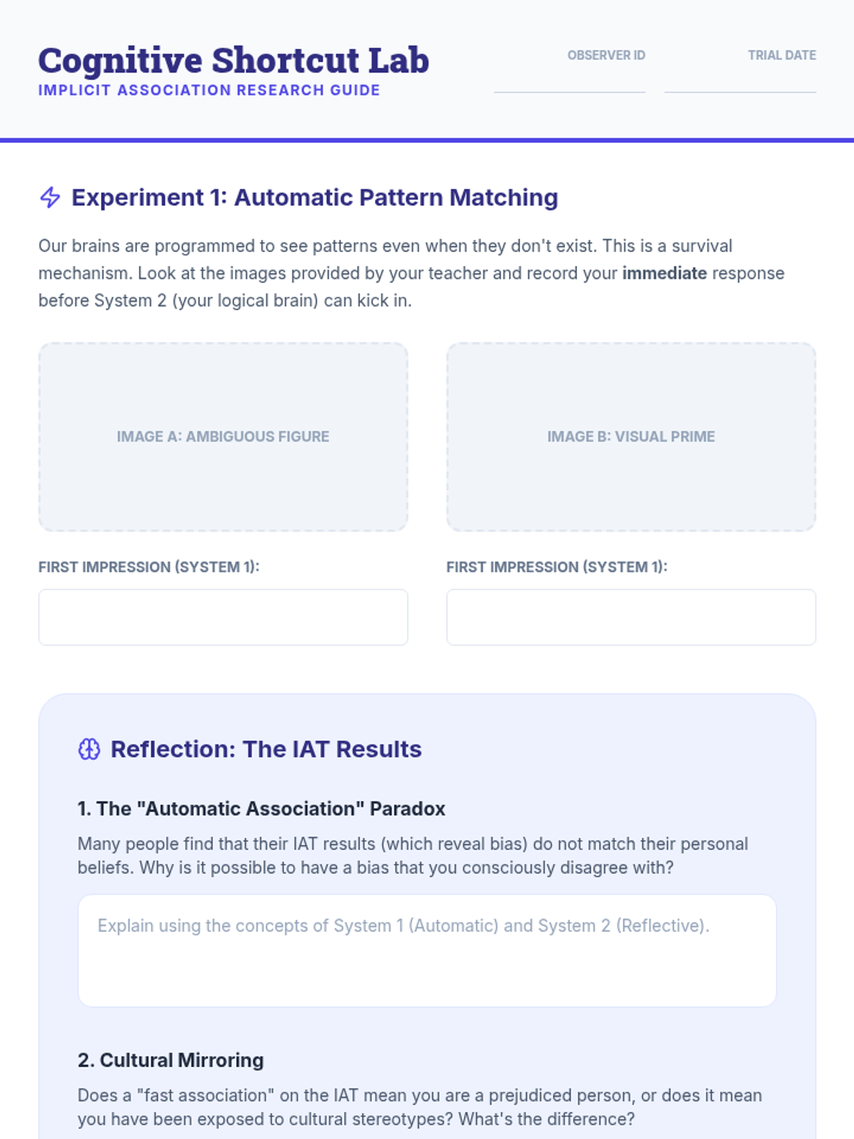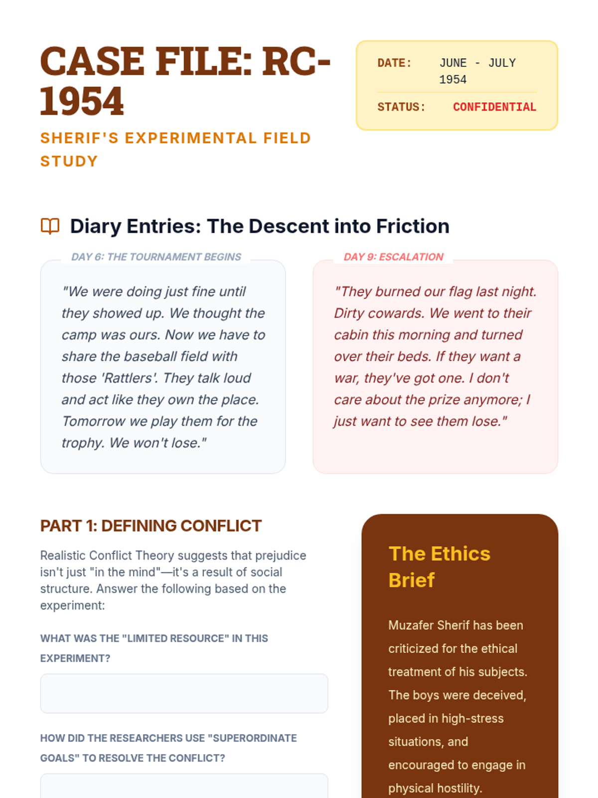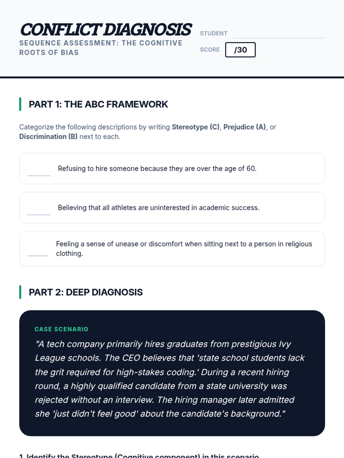 A 5-lesson sequence for 11th Grade Psychology exploring the cognitive and social roots of prejudice, discrimination, and bias through social identity theory, implicit association, and classic experiments.