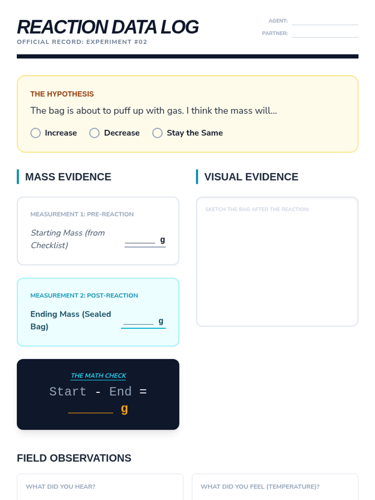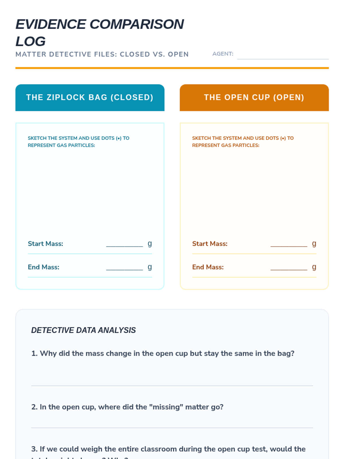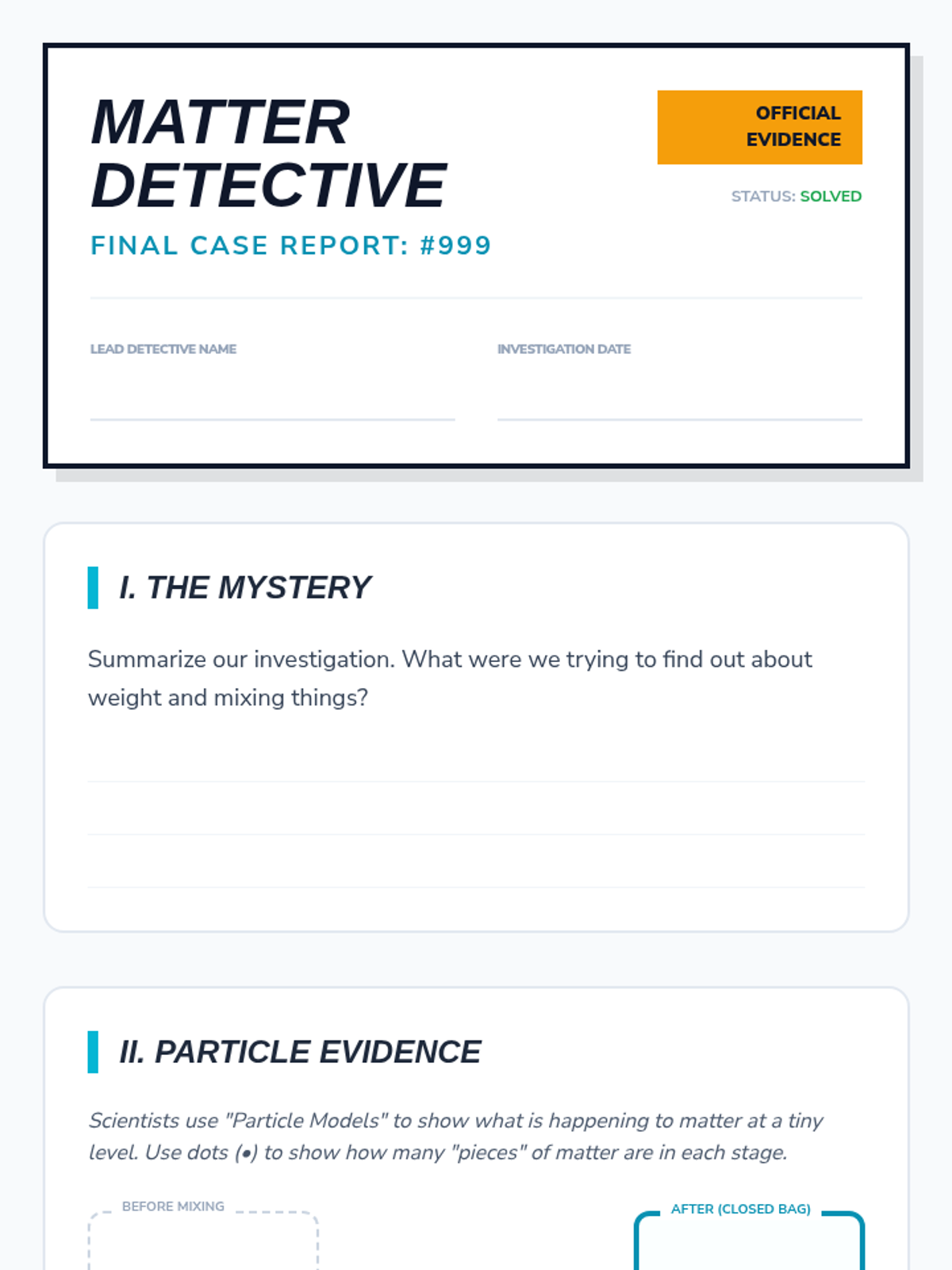A scientific inquiry sequence for 3rd graders that explores the conservation of mass through hands-on experiments with mixing substances in closed and open systems. Students learn that matter is neither created nor destroyed, providing an empirical foundation for understanding balanced chemical equations.