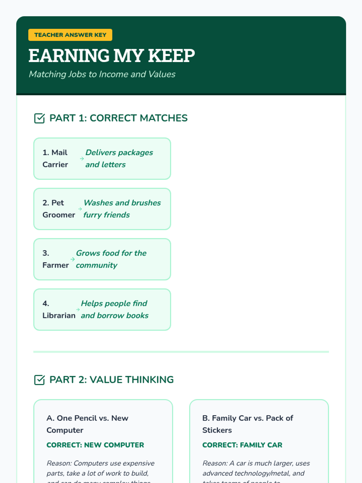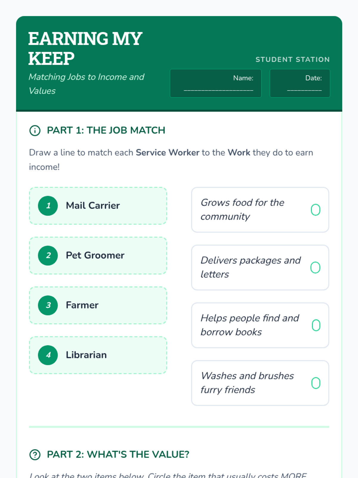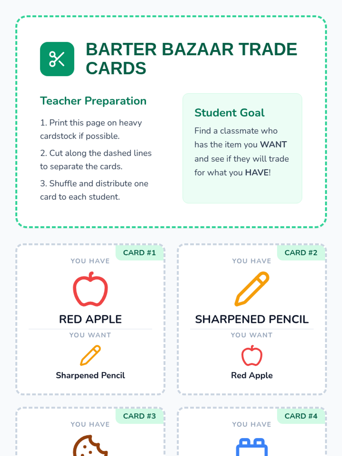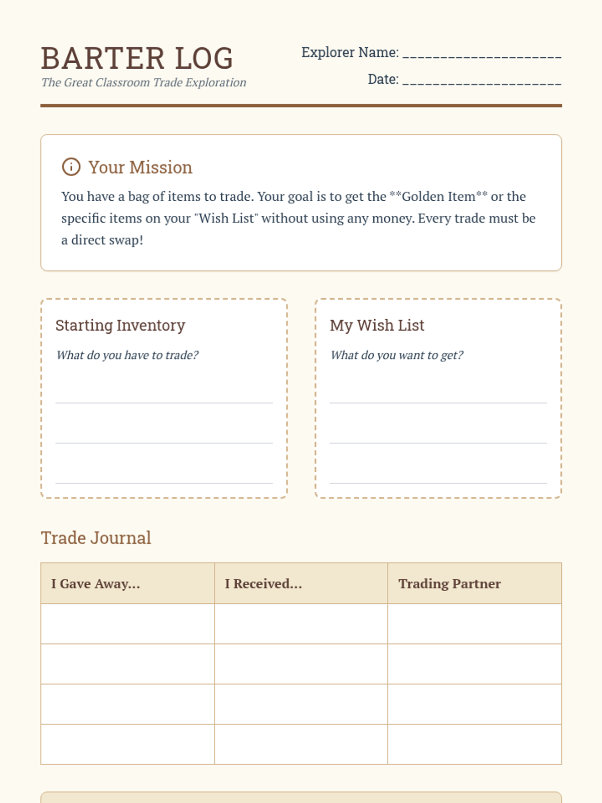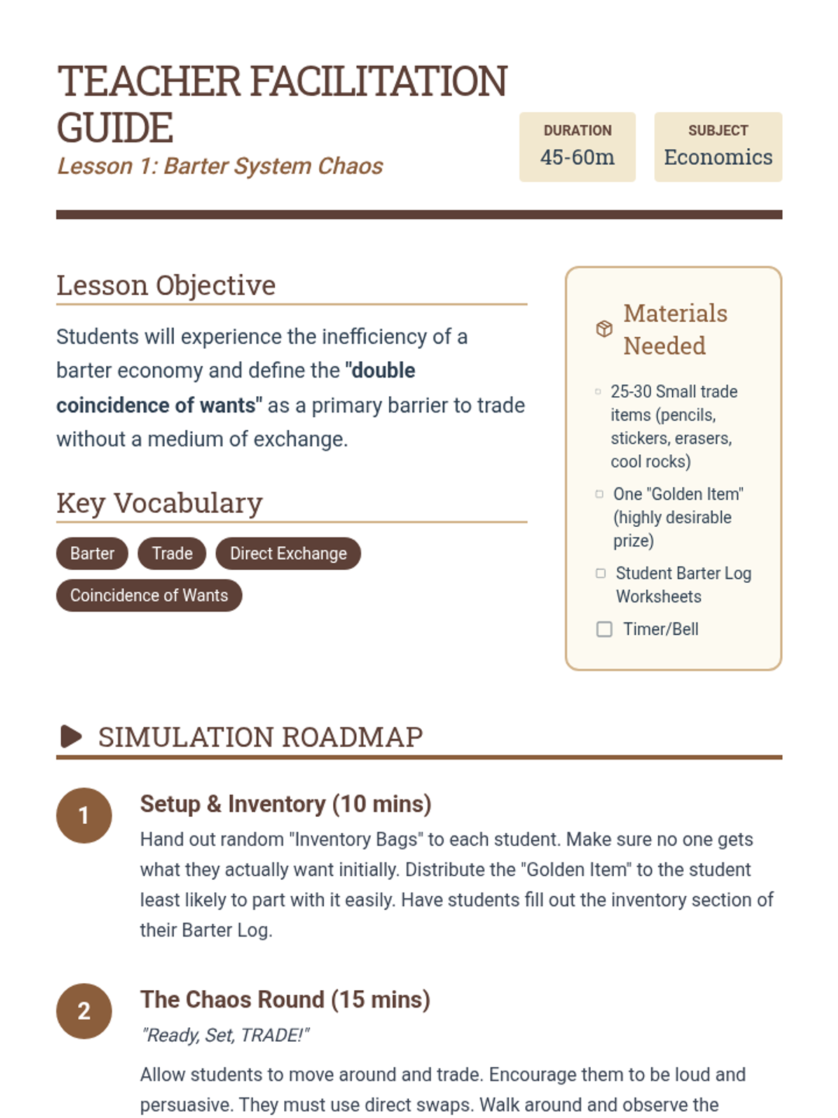 This immersive sequence guides second-grade students through the evolution of trade, from bartering to modern currency. Students participate in simulations to discover the inefficiencies of direct trade and the necessity of money as a medium of exchange, unit of account, and store of value.