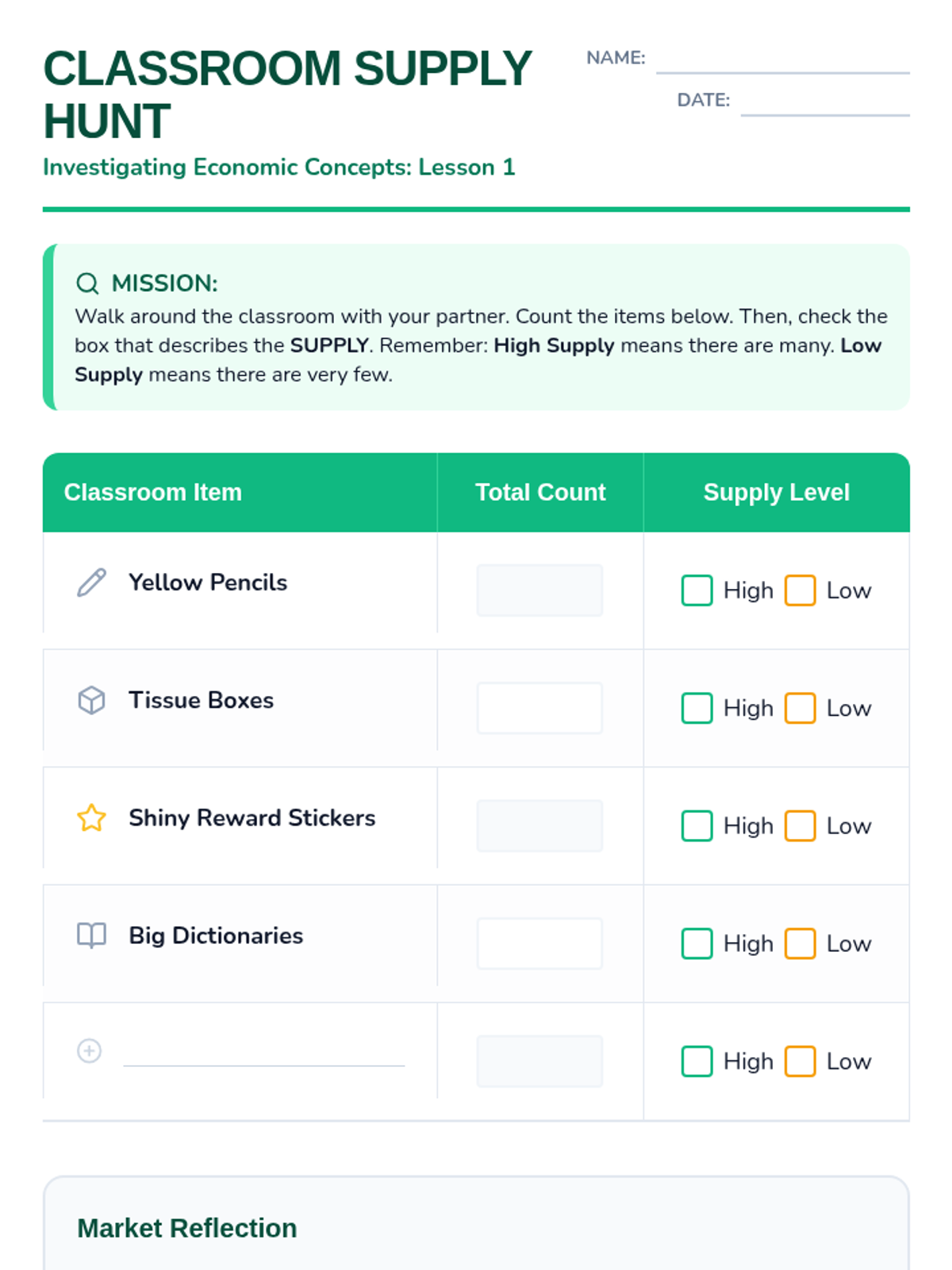 This sequence introduces 2nd-grade students to basic economic principles like supply, demand, and value. Through classroom inventories, auctions, and a marketplace simulation, students explore how the availability of items and people's desire for them influence price and trade.
