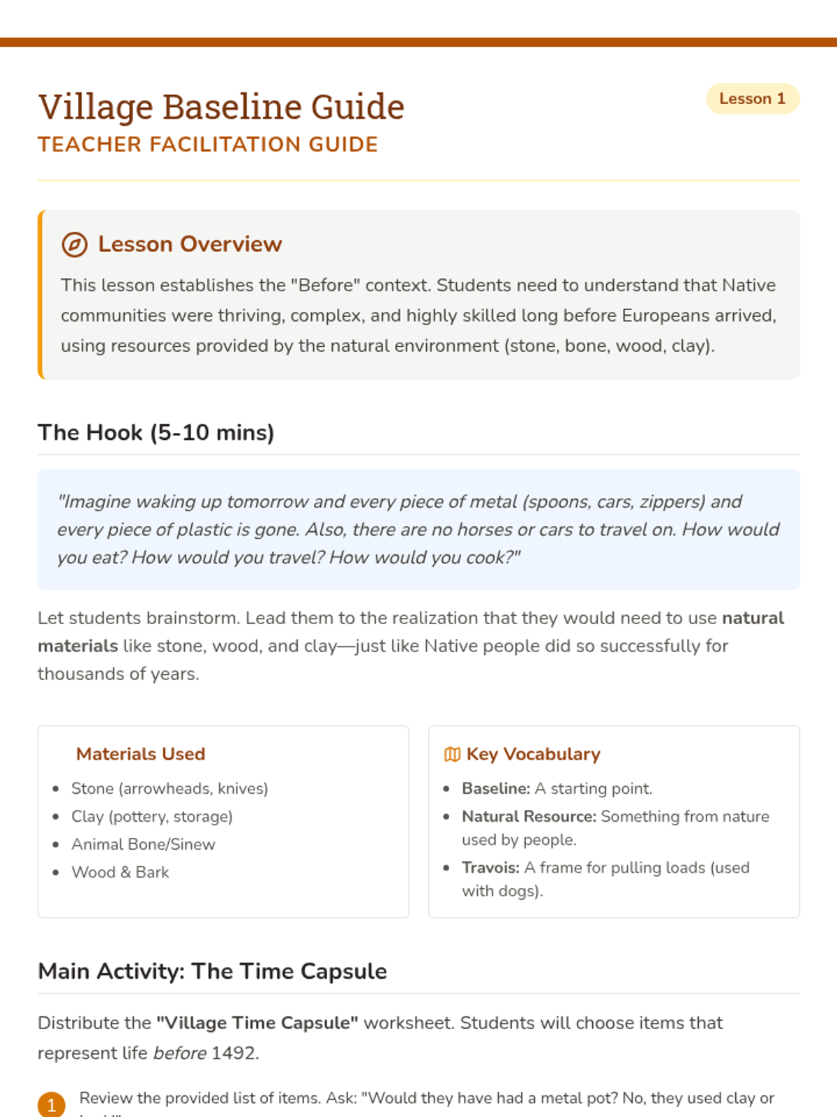 This sequence introduces 2nd-grade students to historical change and cultural exchange through the meeting of Native Peoples and Europeans. It focuses on how new animals, materials, and foods transformed daily life and the landscape, using a 'Before and After' comparative approach.