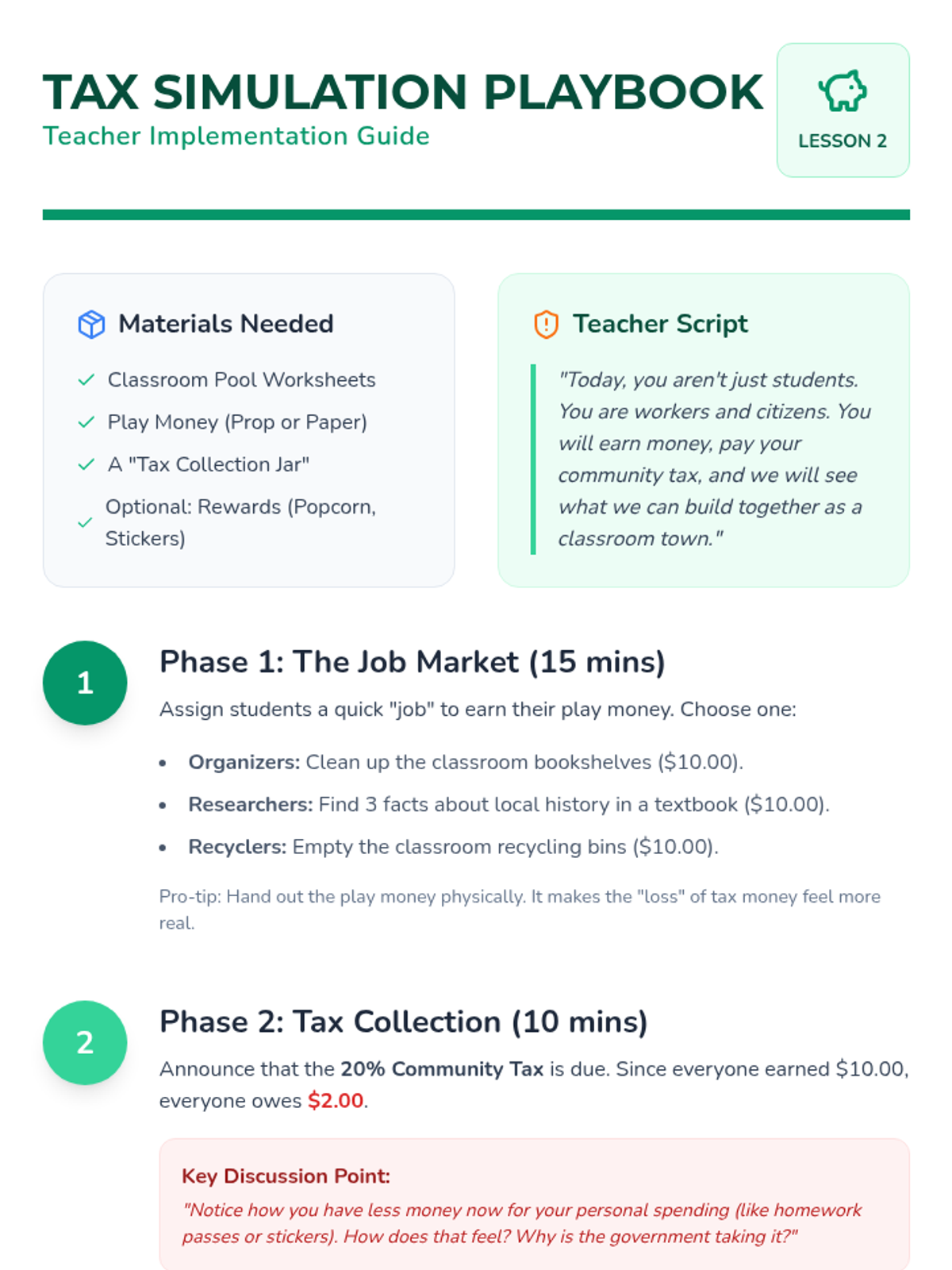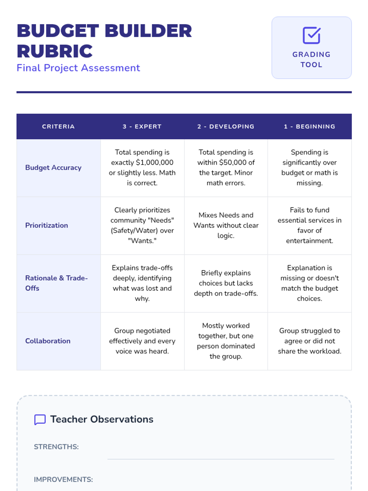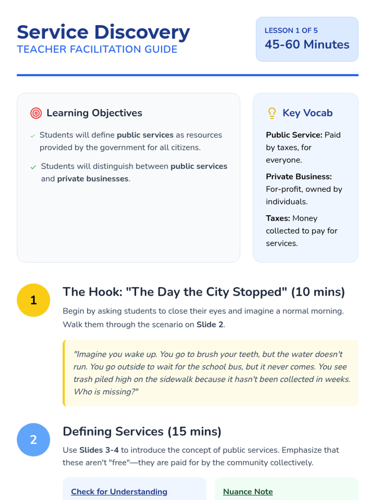 A project-based exploration of local government services, funding, and community planning. Students learn how taxes fund public works, safety, and infrastructure, culminating in a town budgeting simulation.