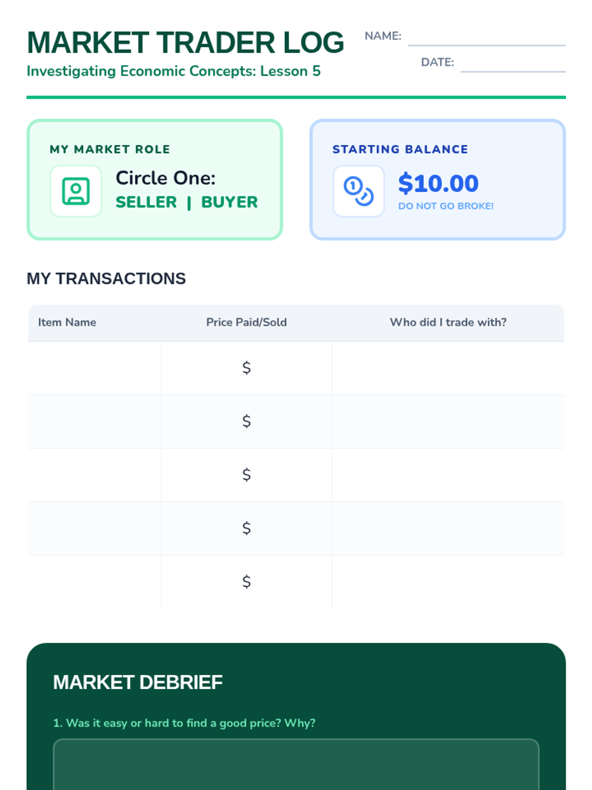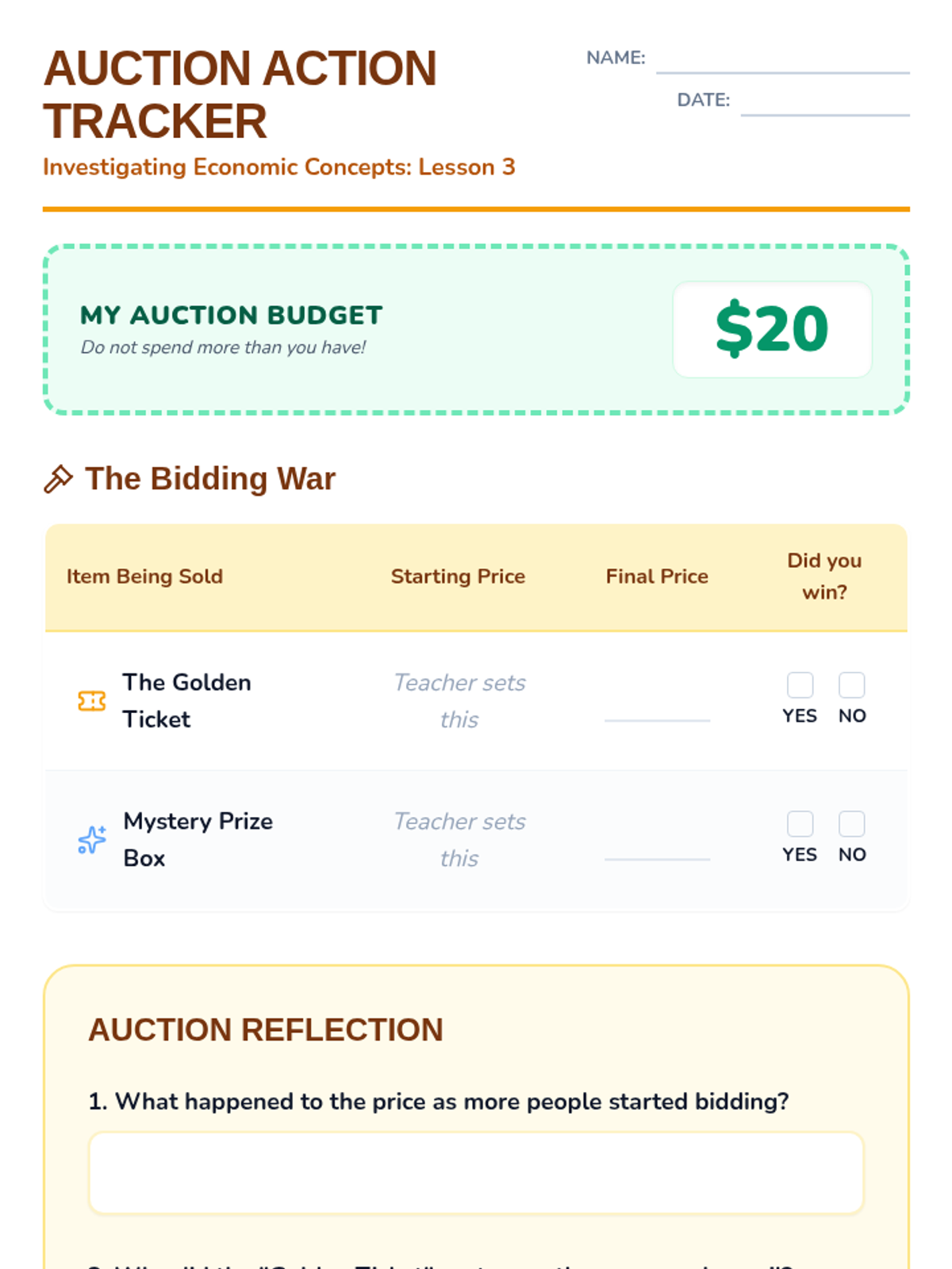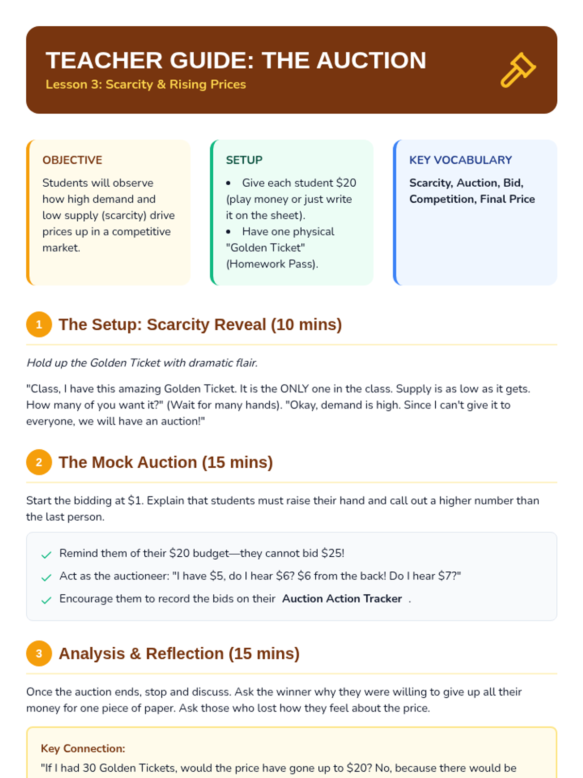 This sequence introduces 2nd-grade students to basic economic principles like supply, demand, and value. Through classroom inventories, auctions, and a marketplace simulation, students explore how the availability of items and people's desire for them influence price and trade.