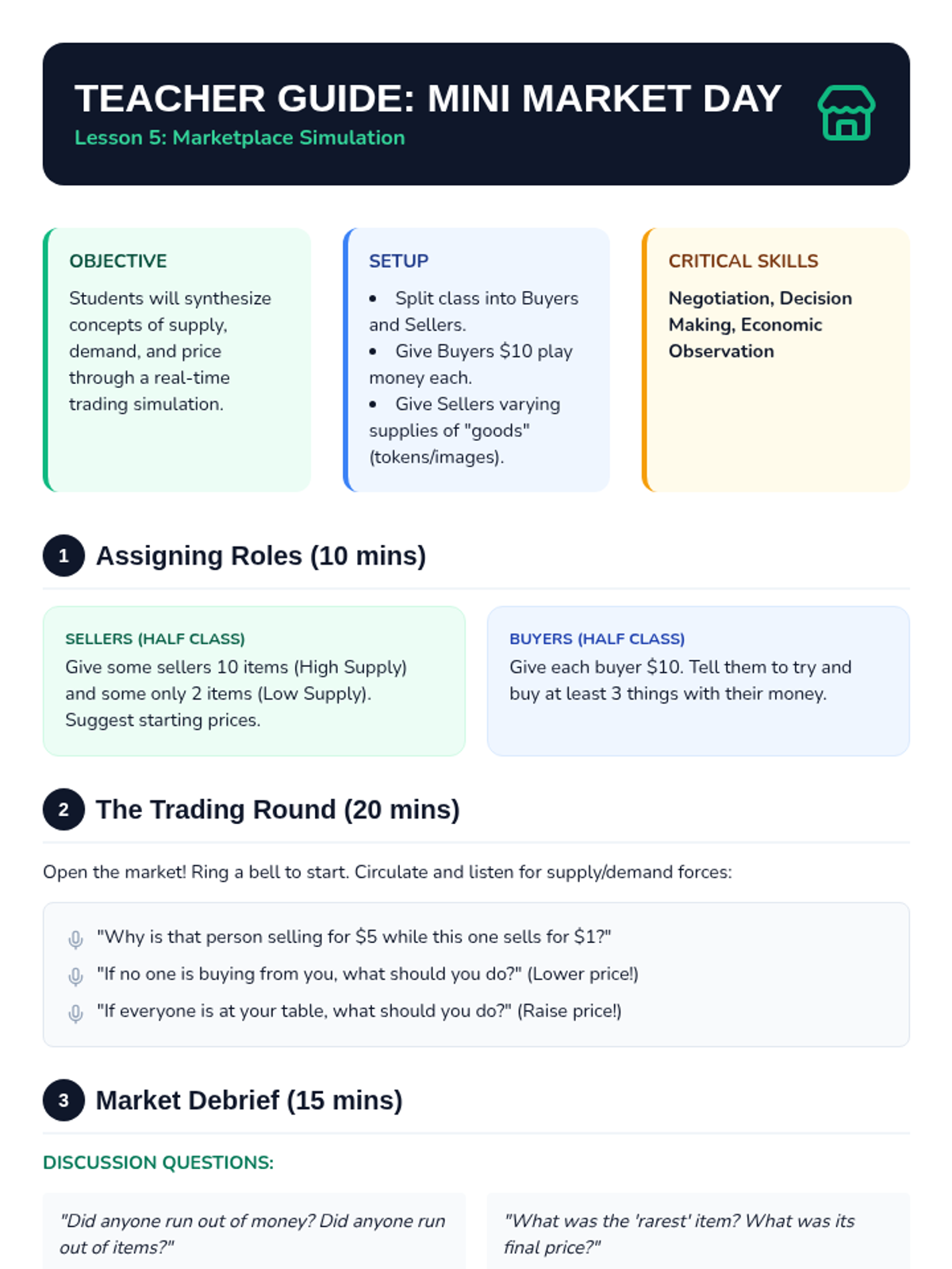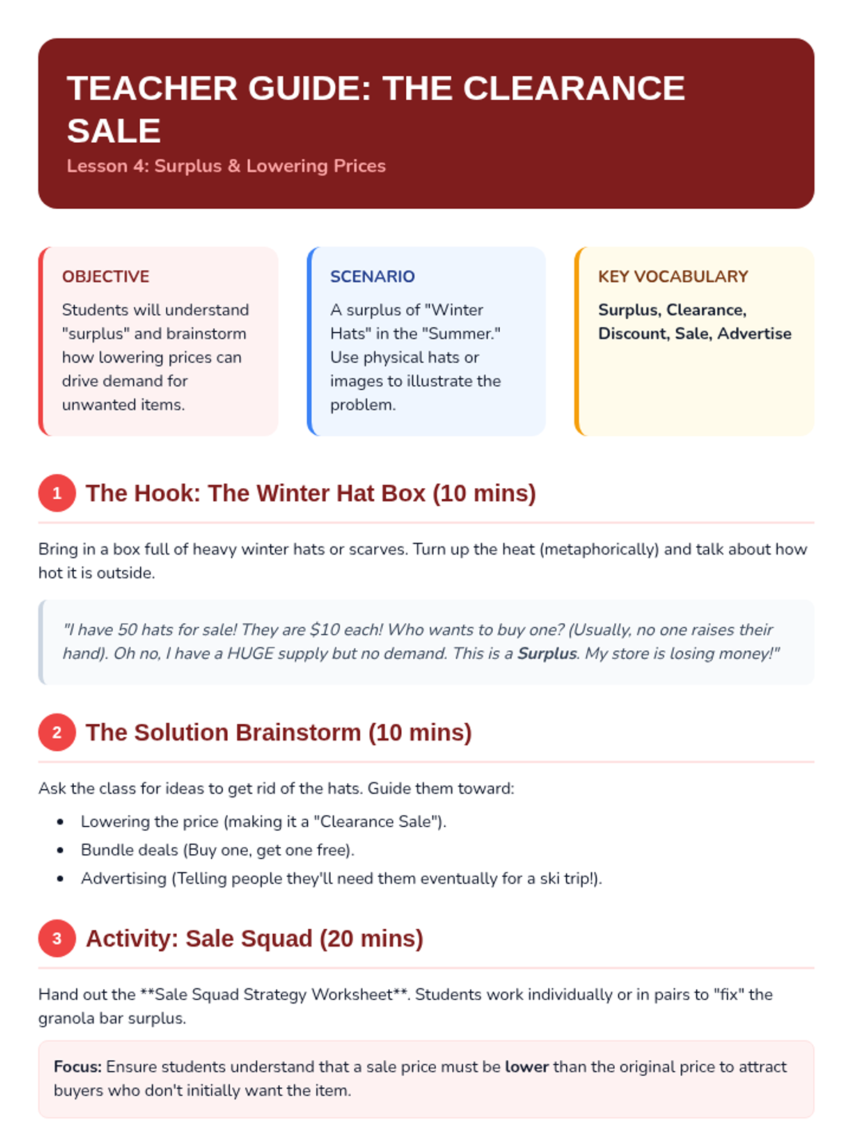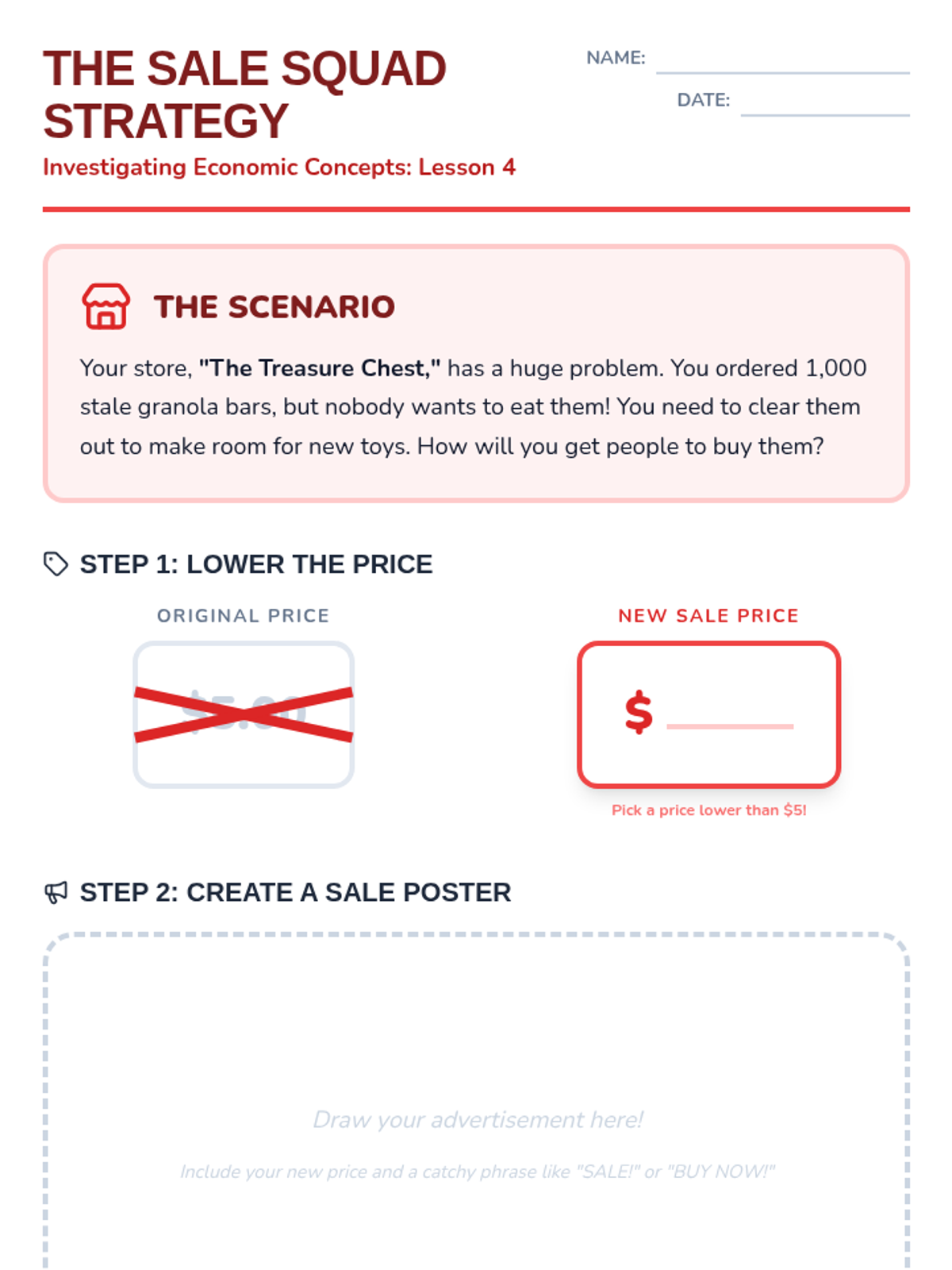 This sequence introduces 2nd-grade students to basic economic principles like supply, demand, and value. Through classroom inventories, auctions, and a marketplace simulation, students explore how the availability of items and people's desire for them influence price and trade.