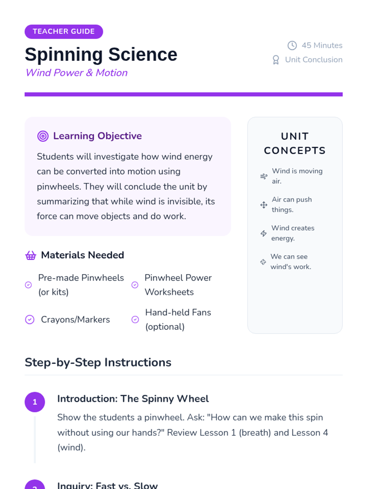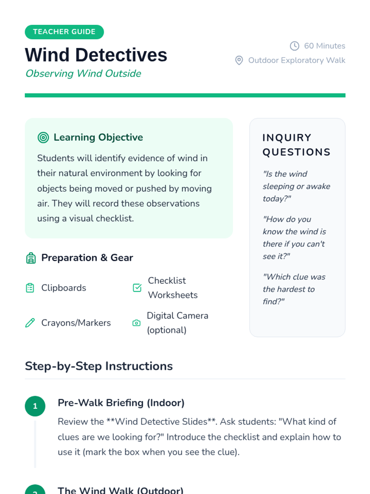 A project-based exploration of wind for Pre-K students, focusing on making the invisible force of air visible through hands-on play, outdoor observation, and the creation of simple scientific tools like windsocks and pinwheels.