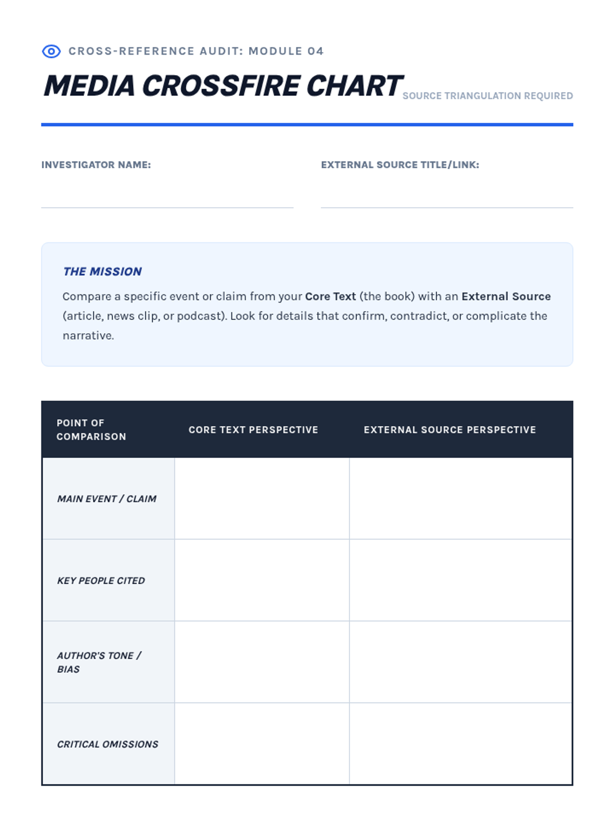 A 10th-grade ELA sequence focused on critical reading and source evaluation in investigative nonfiction. Students learn to separate fact from interpretation, verify citations, and conduct comprehensive validity audits.