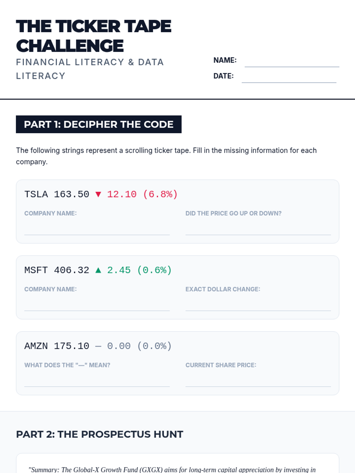 A hands-on introduction to financial markets and investment strategies through a four-week simulated portfolio management project.