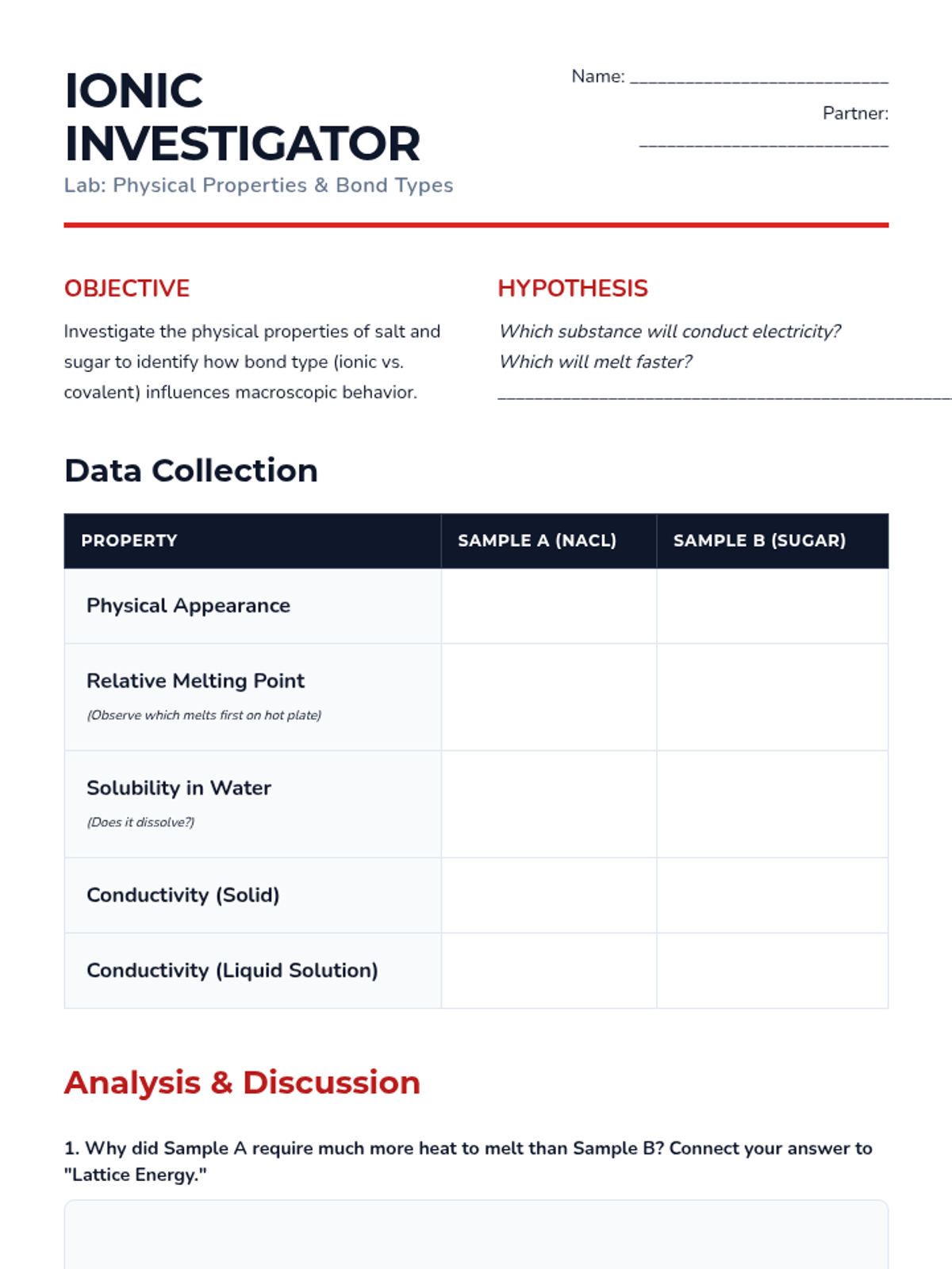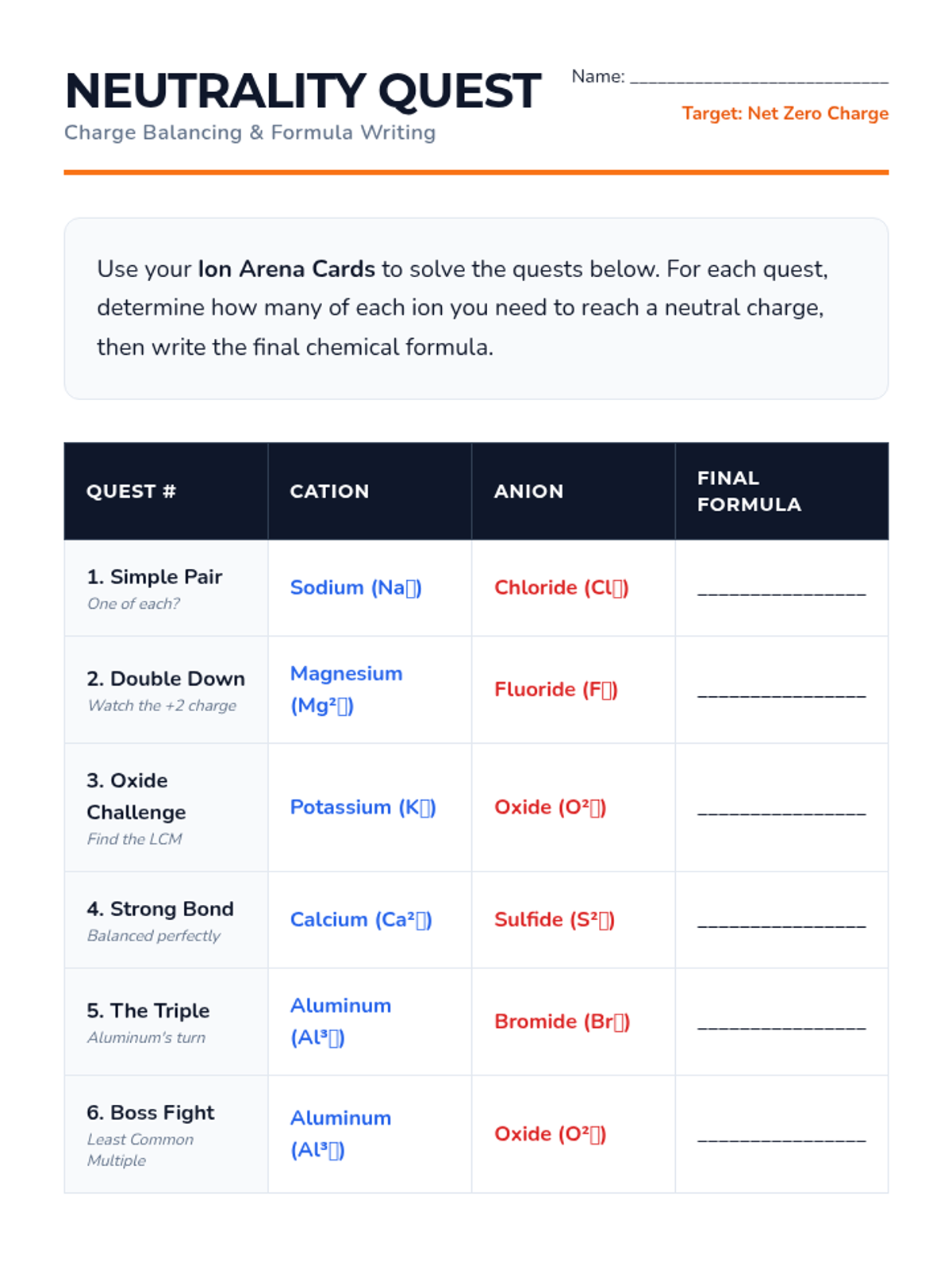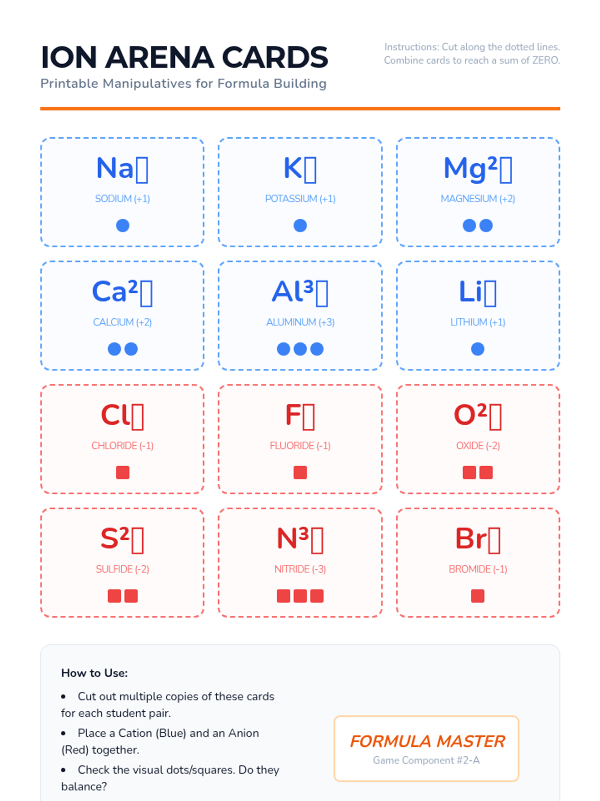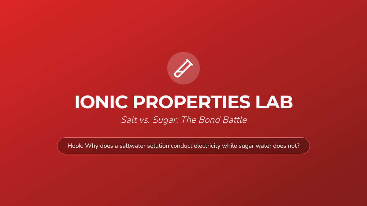 A comprehensive 9th-grade chemistry unit on ionic bonding, covering electrostatic attraction, formula writing, polyatomic ions, nomenclature, and macroscopic properties through simulations, games, and labs.