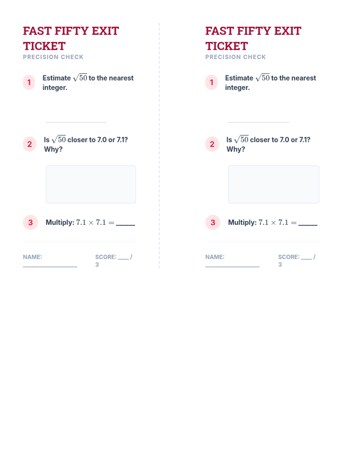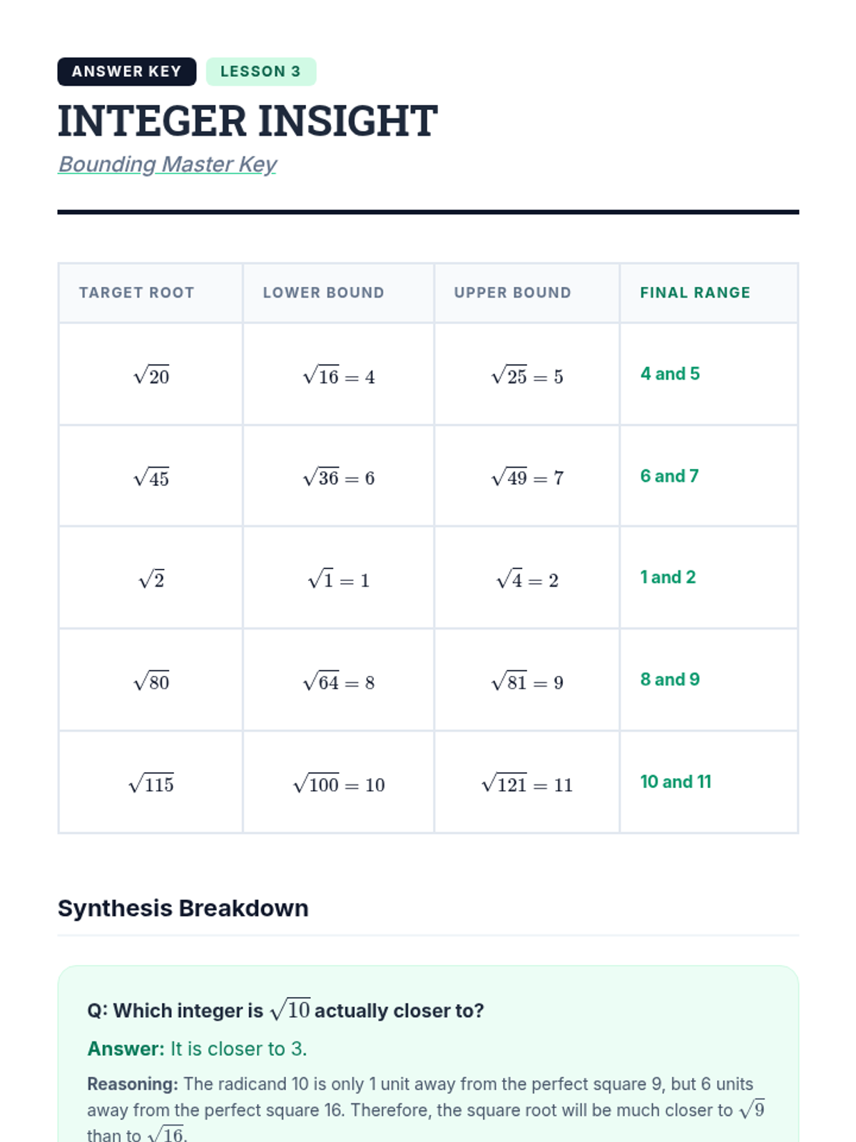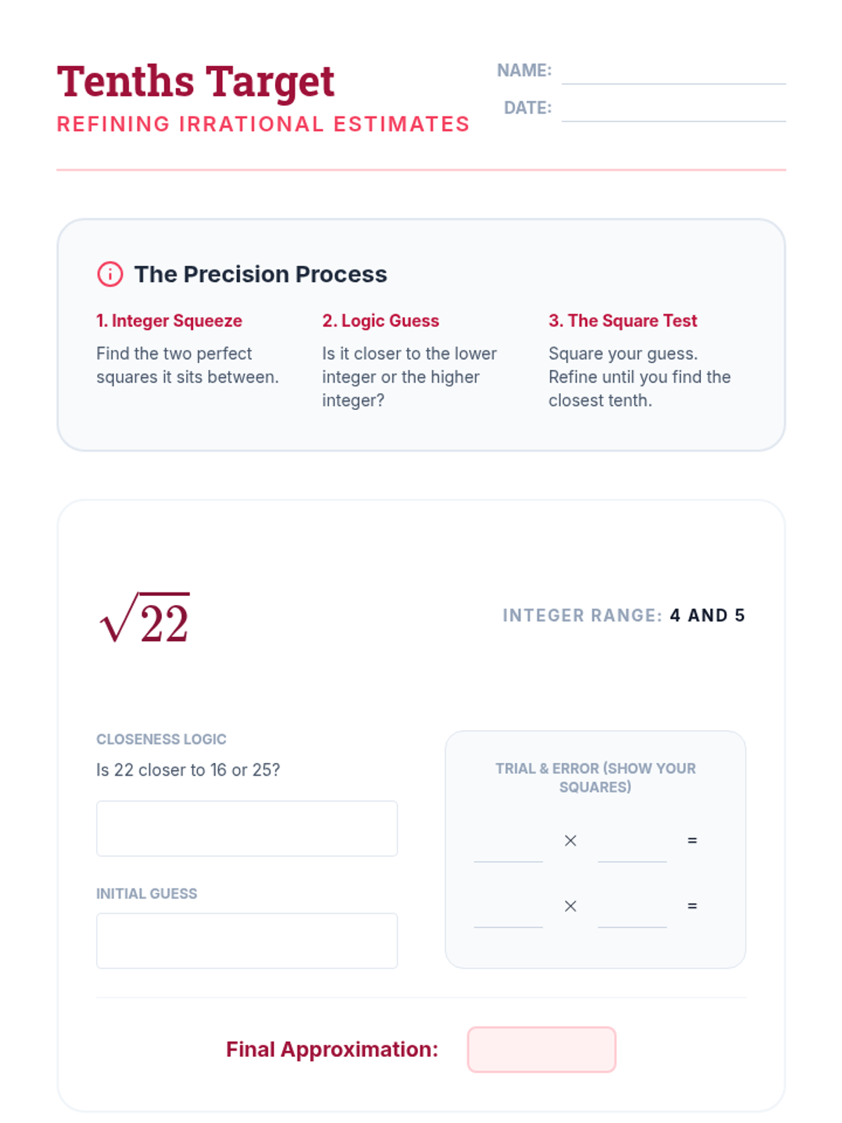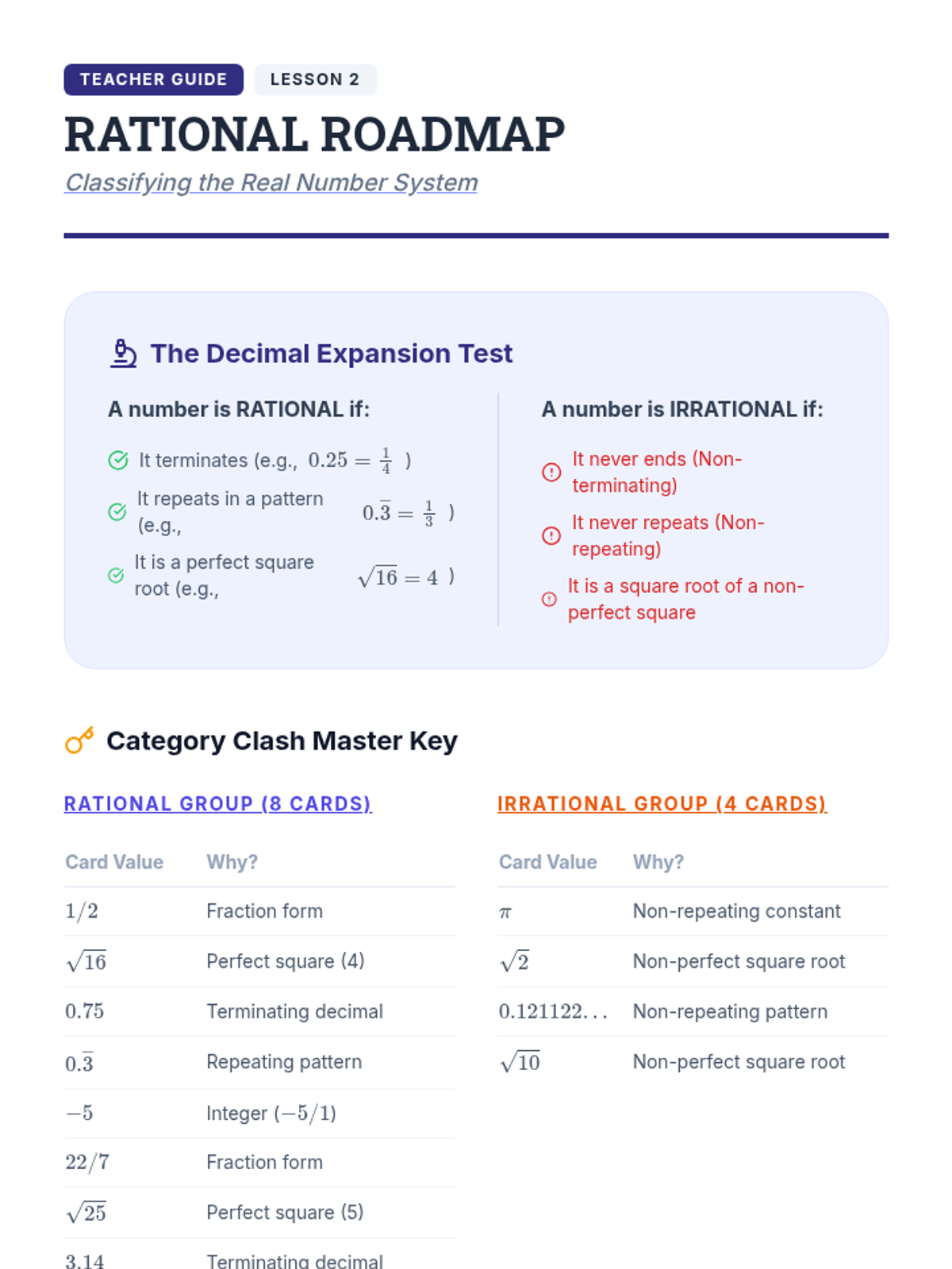 This sequence guides 8th-grade students from the basics of perfect squares to the complex task of approximating and ordering irrational numbers on the real number line. Students will use geometric models, decimal expansion analysis, and systematic bounding techniques to master the real number system.