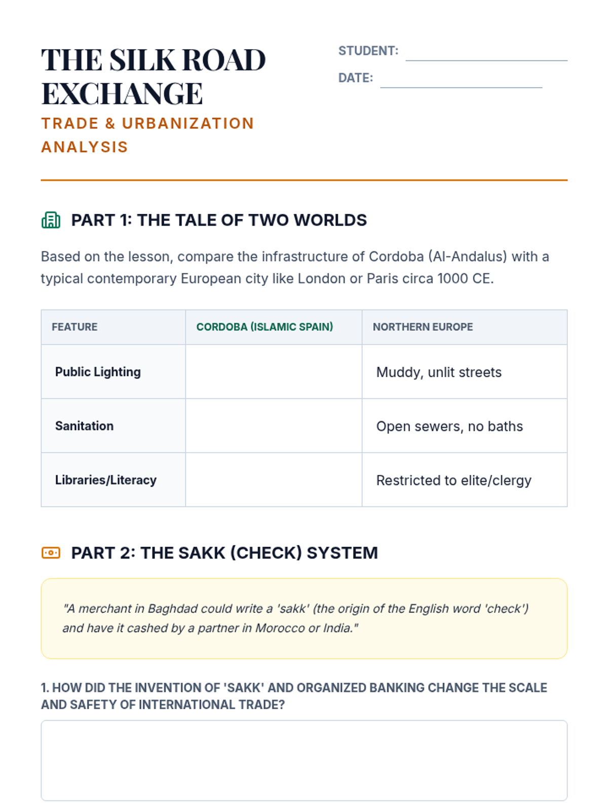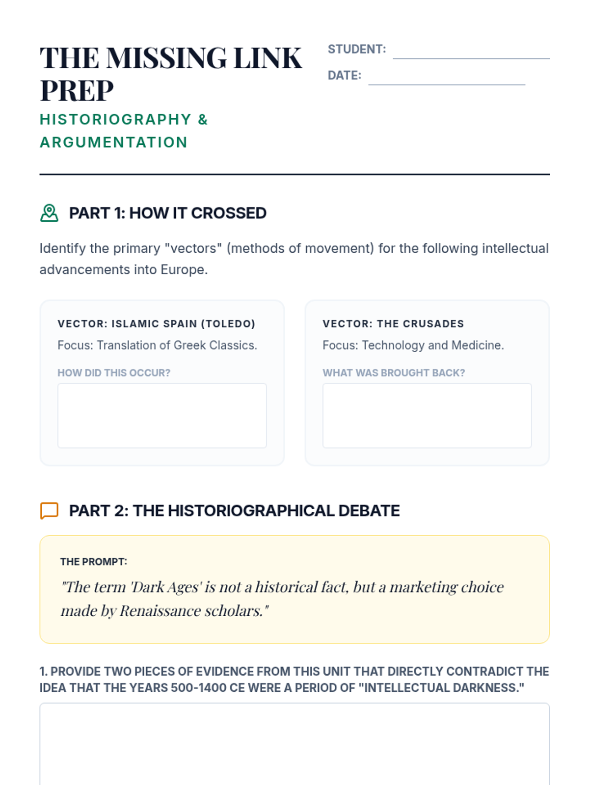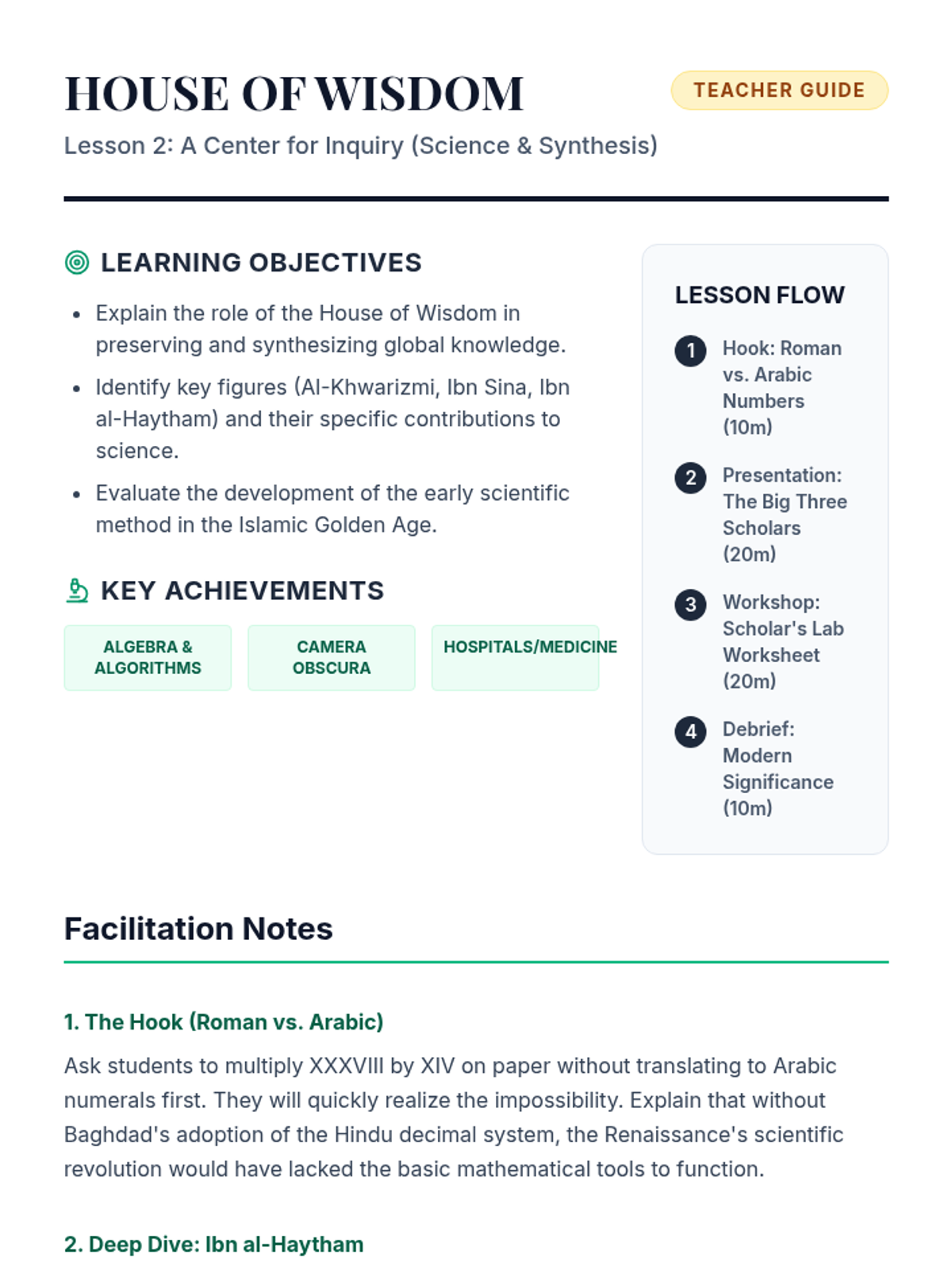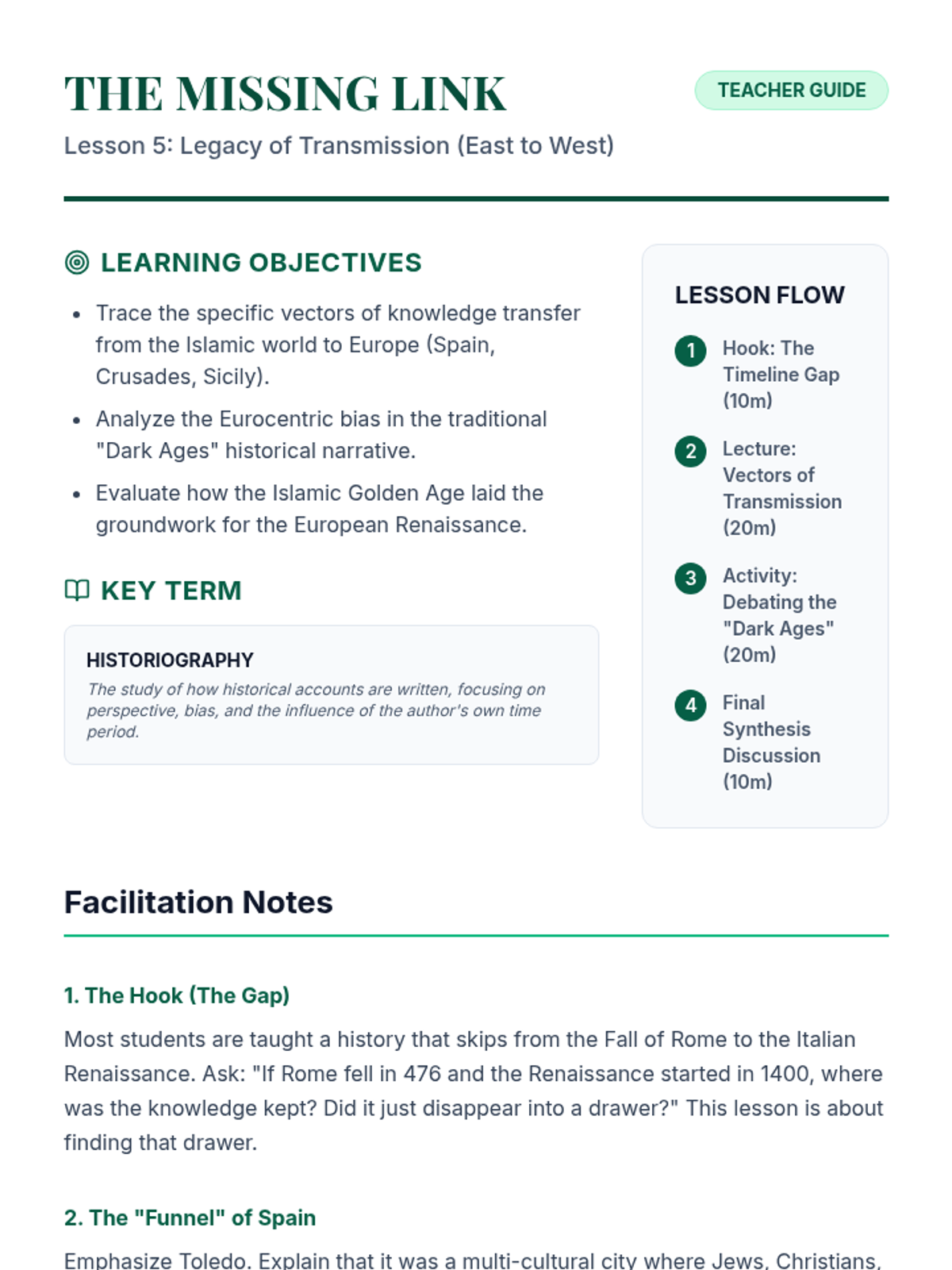 An inquiry-based exploration of the Islamic Golden Age, challenging the 'Dark Ages' narrative by examining the scientific, cultural, and economic advancements of the Caliphates and their role in preserving global knowledge.
