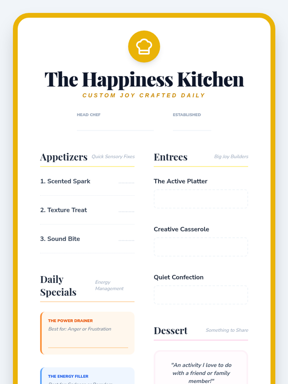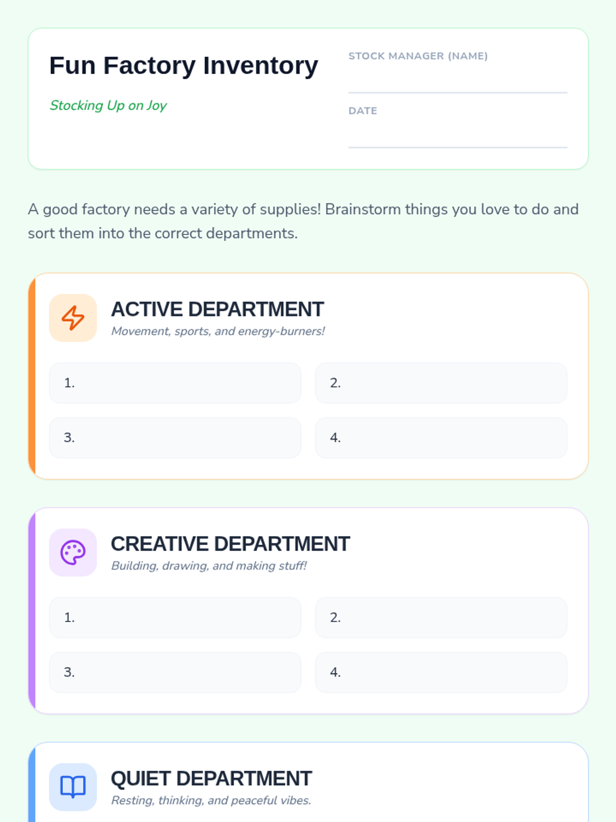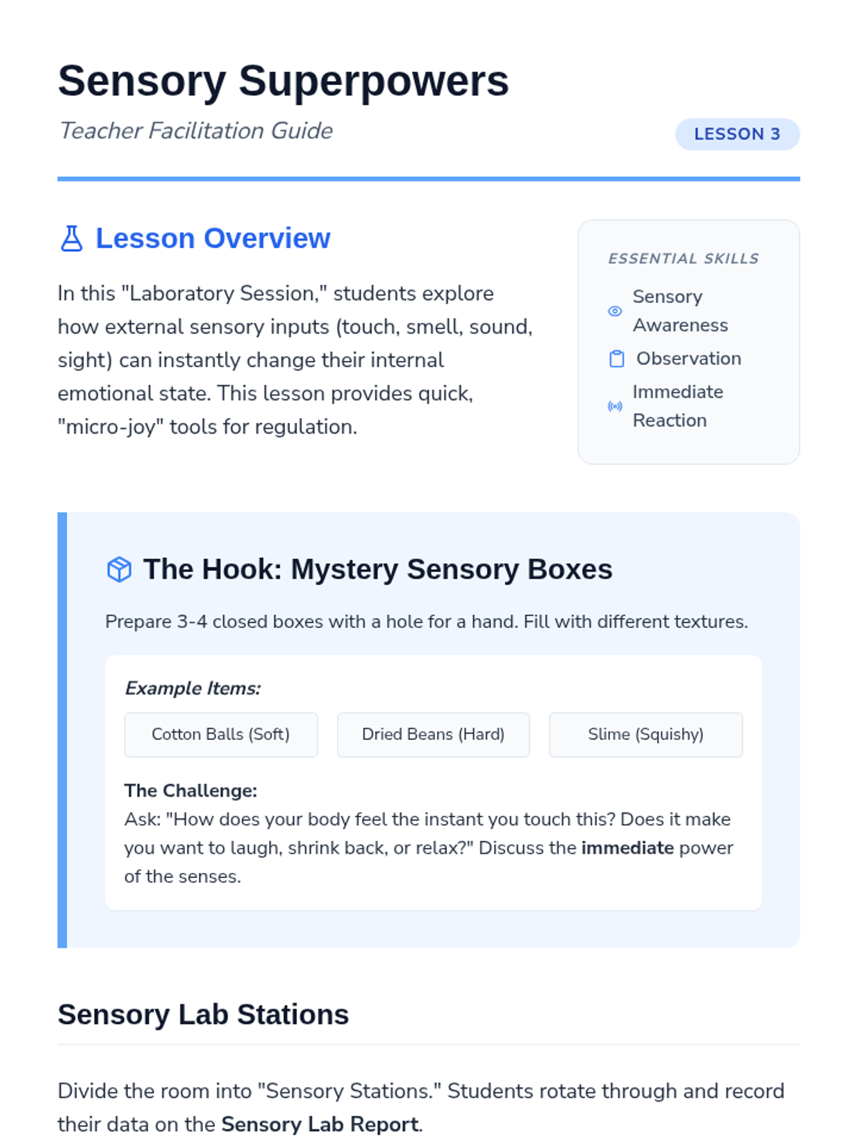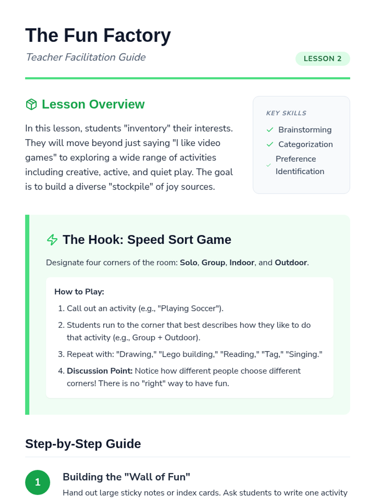 This sequence introduces 3rd-grade students to identifying personal sources of joy and satisfaction. It guides them through recognizing physical emotional shifts, inventorying interests, exploring sensory joy, categorizing activities by energy levels, and creating a personalized 'menu' of coping strategies for emotional regulation.