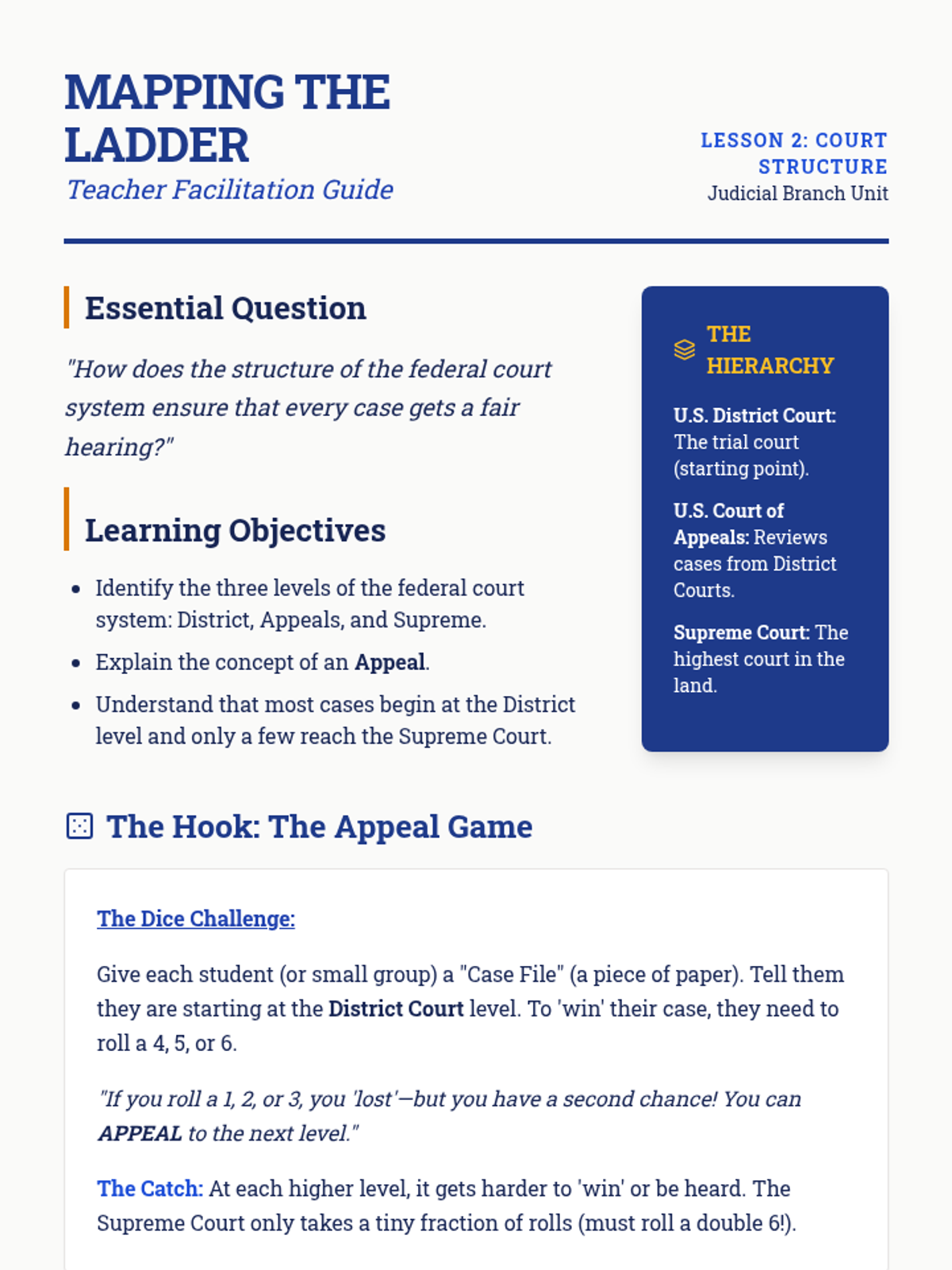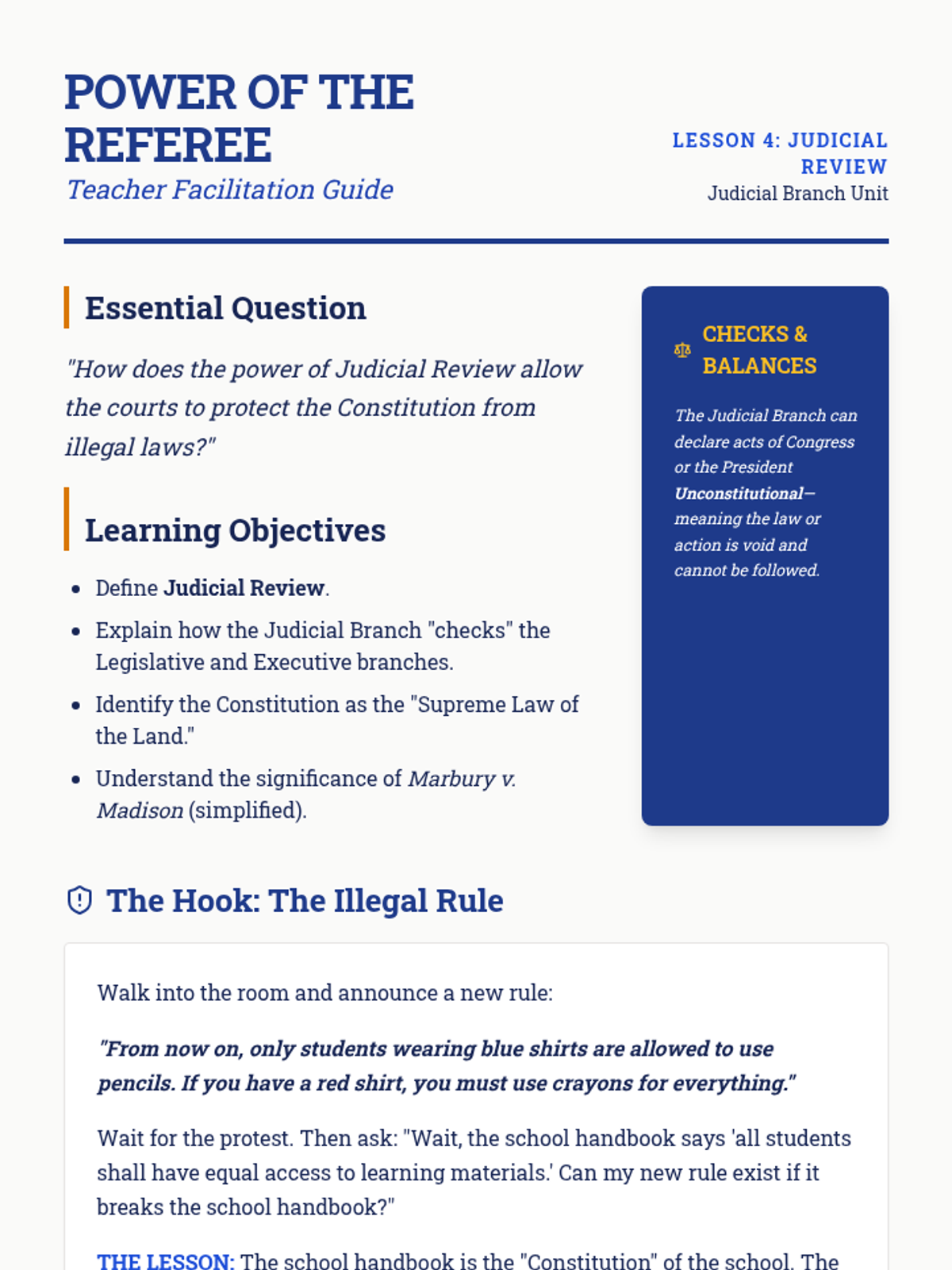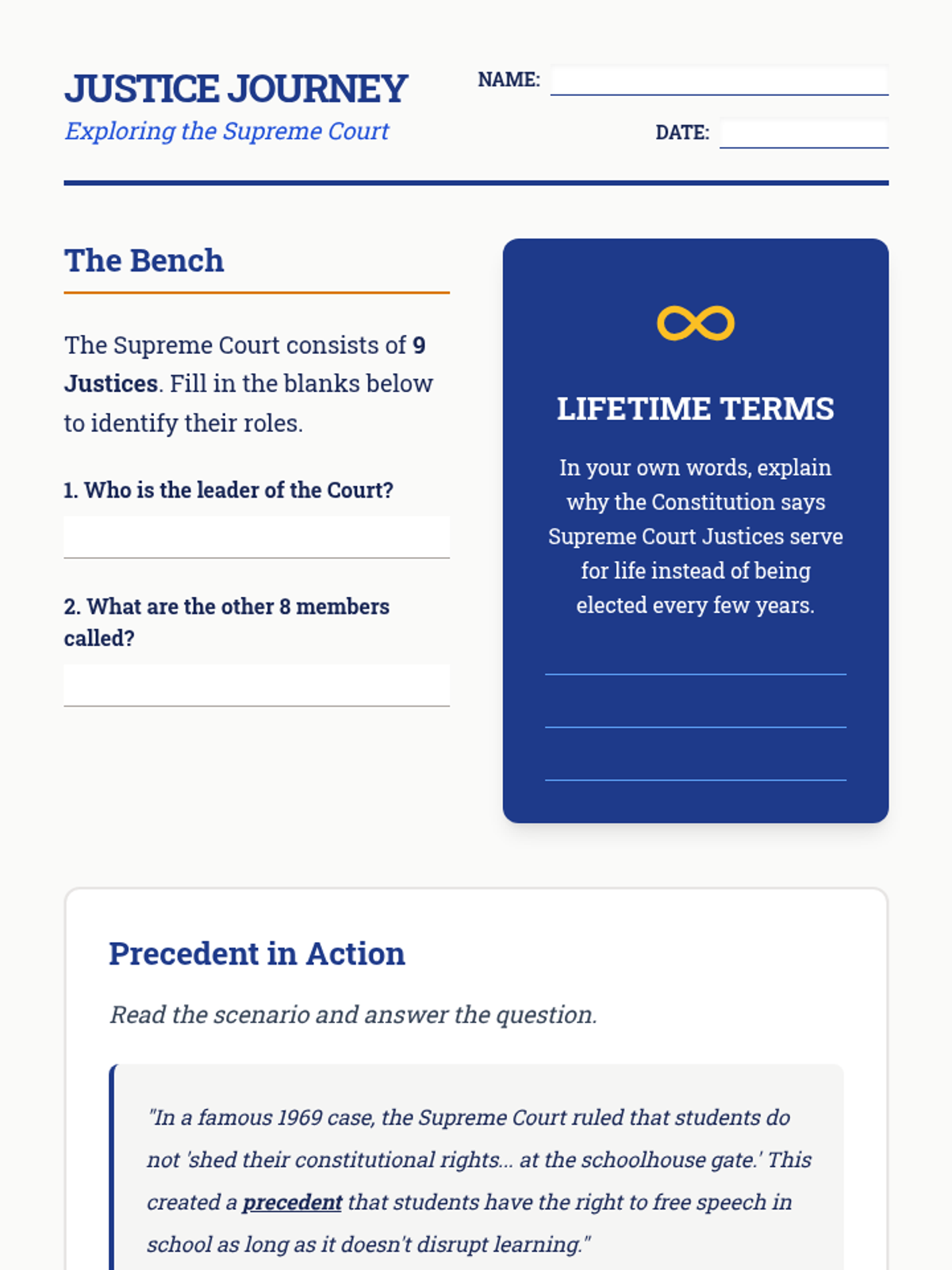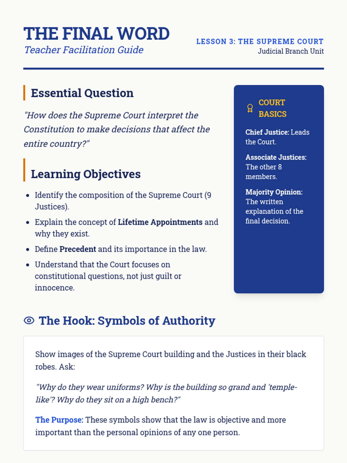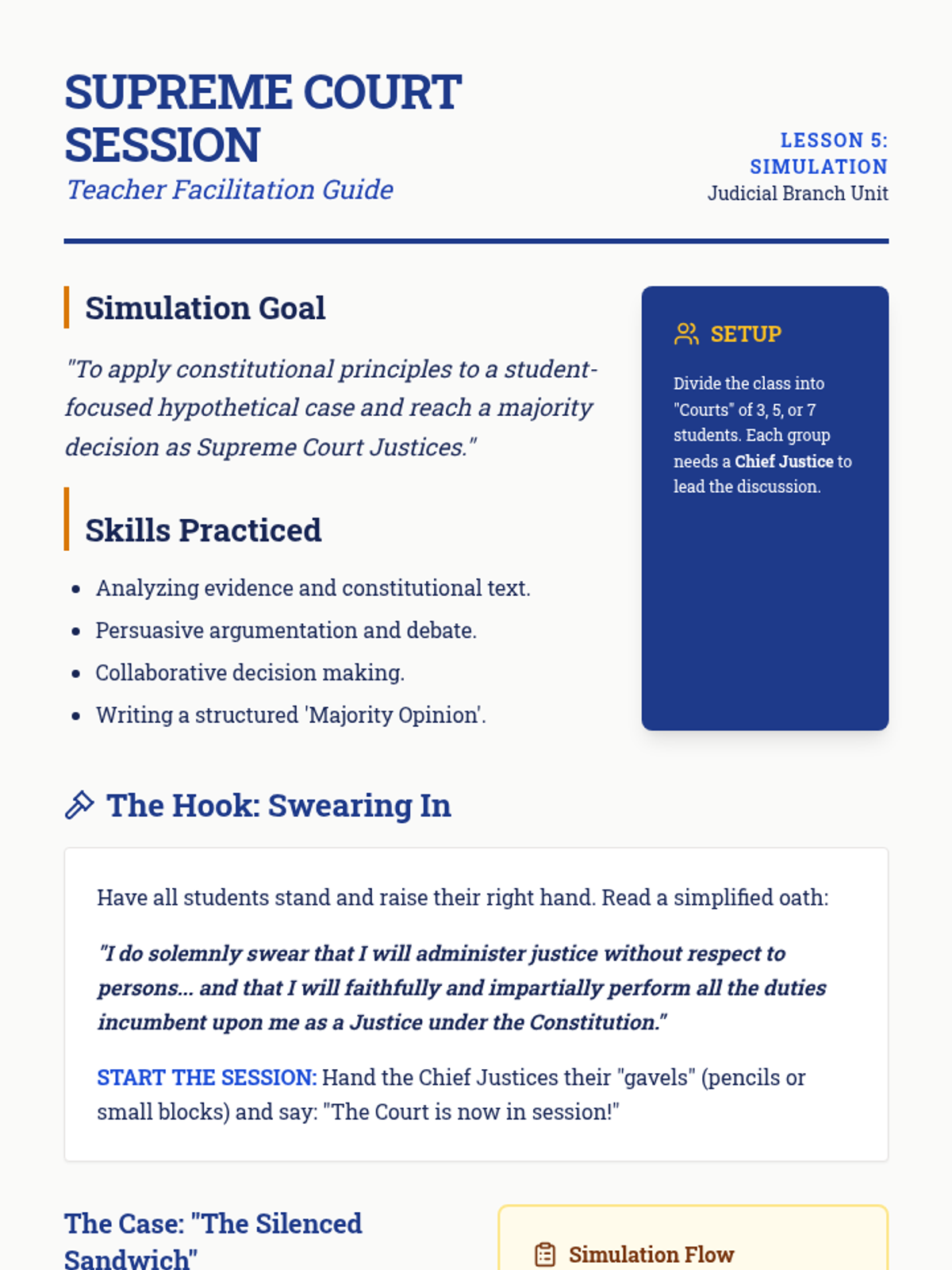 A 5th-grade civics unit exploring the structure, purpose, and power of the U.S. Judicial Branch, culminating in a mock Supreme Court conference.