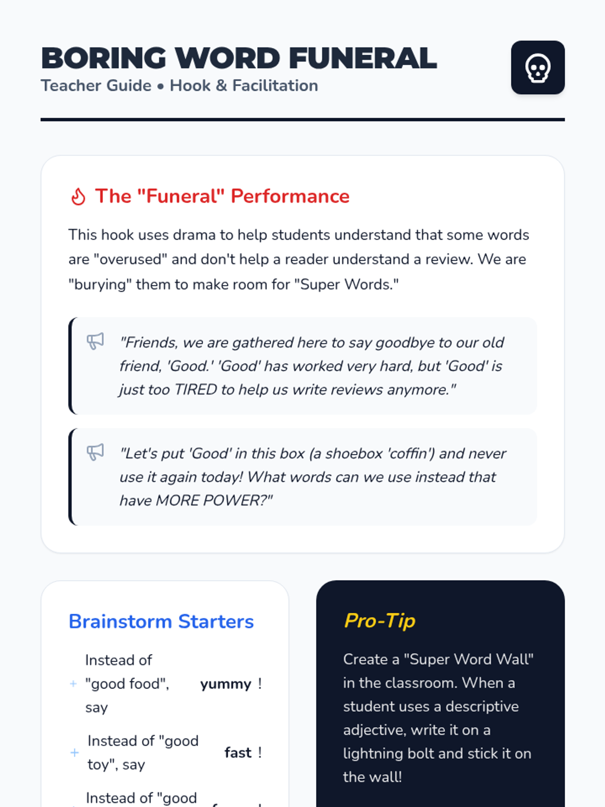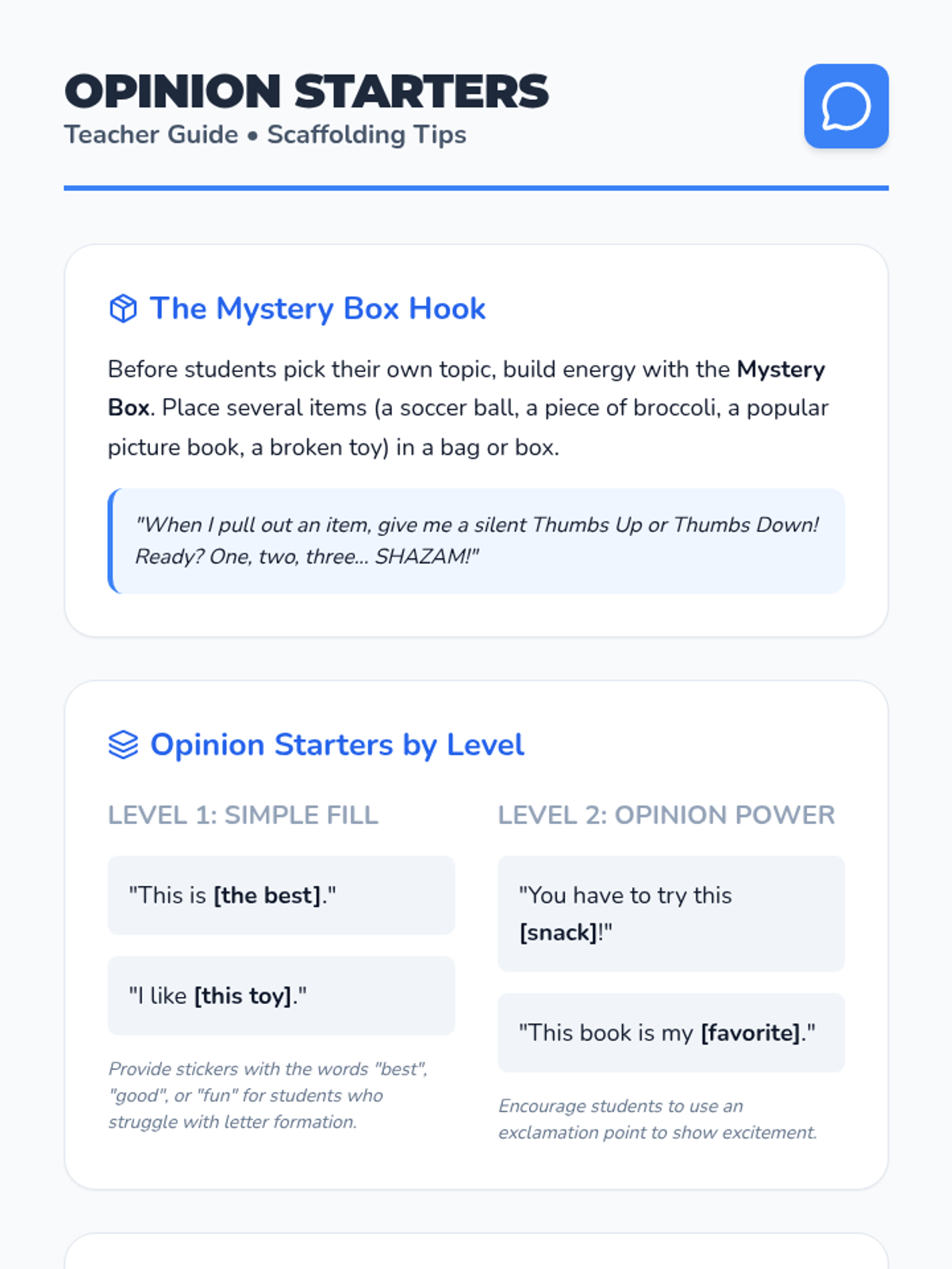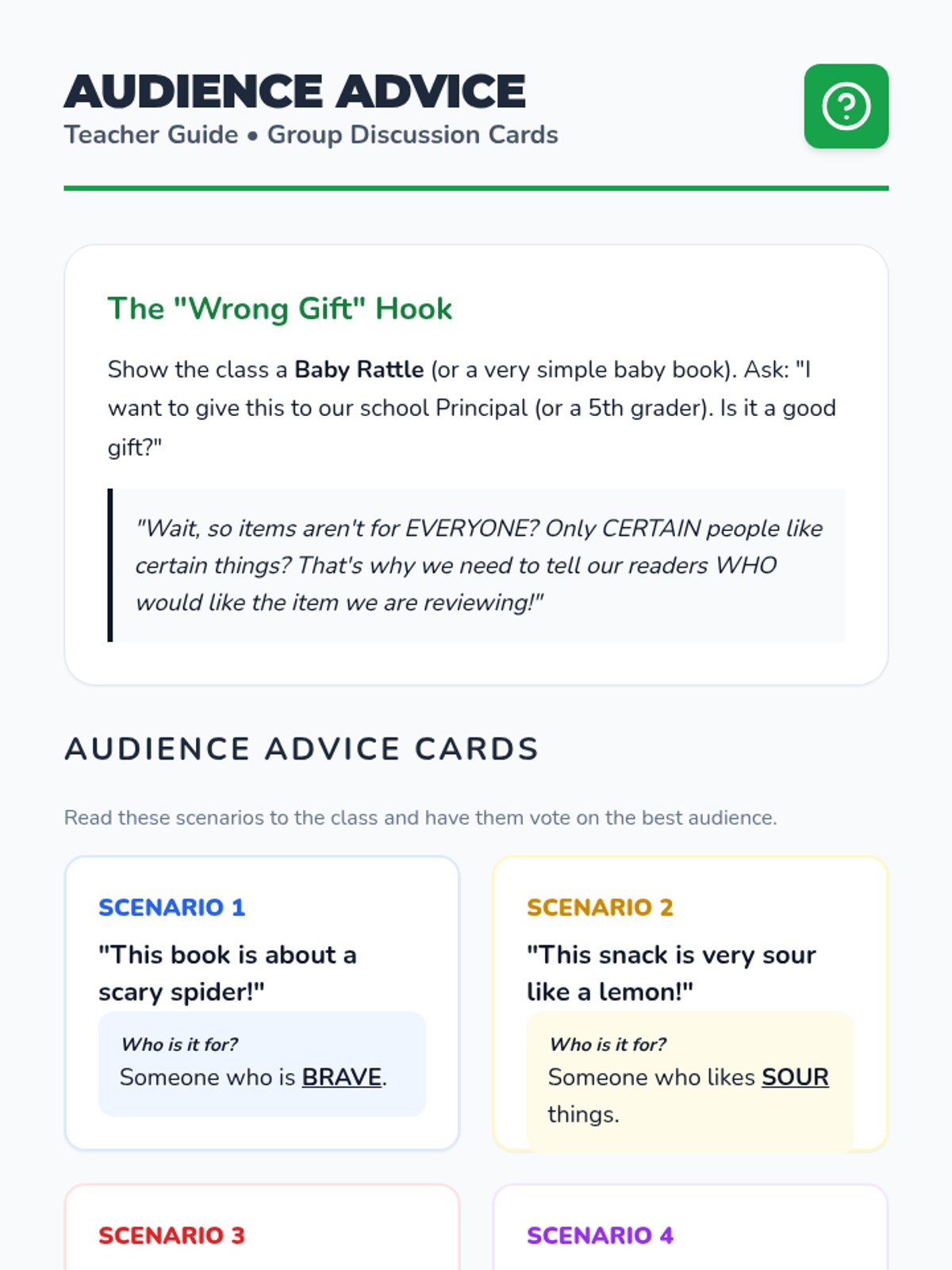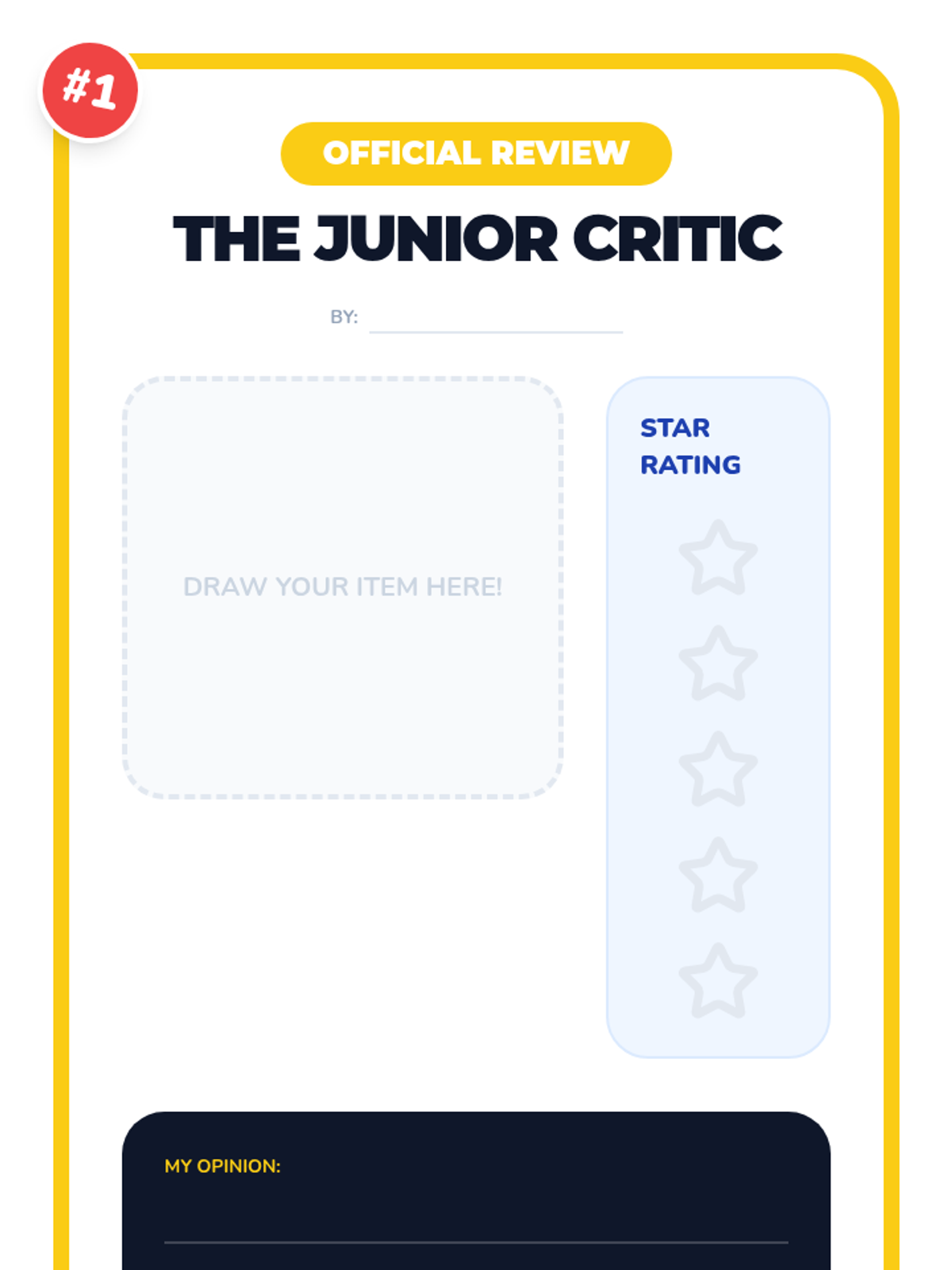 Students learn the art of persuasion by becoming 'Junior Critics.' This sequence guides Kindergarteners through the process of writing reviews for books, toys, and foods, using star ratings, descriptive adjectives, and target audience recommendations to influence their peers.