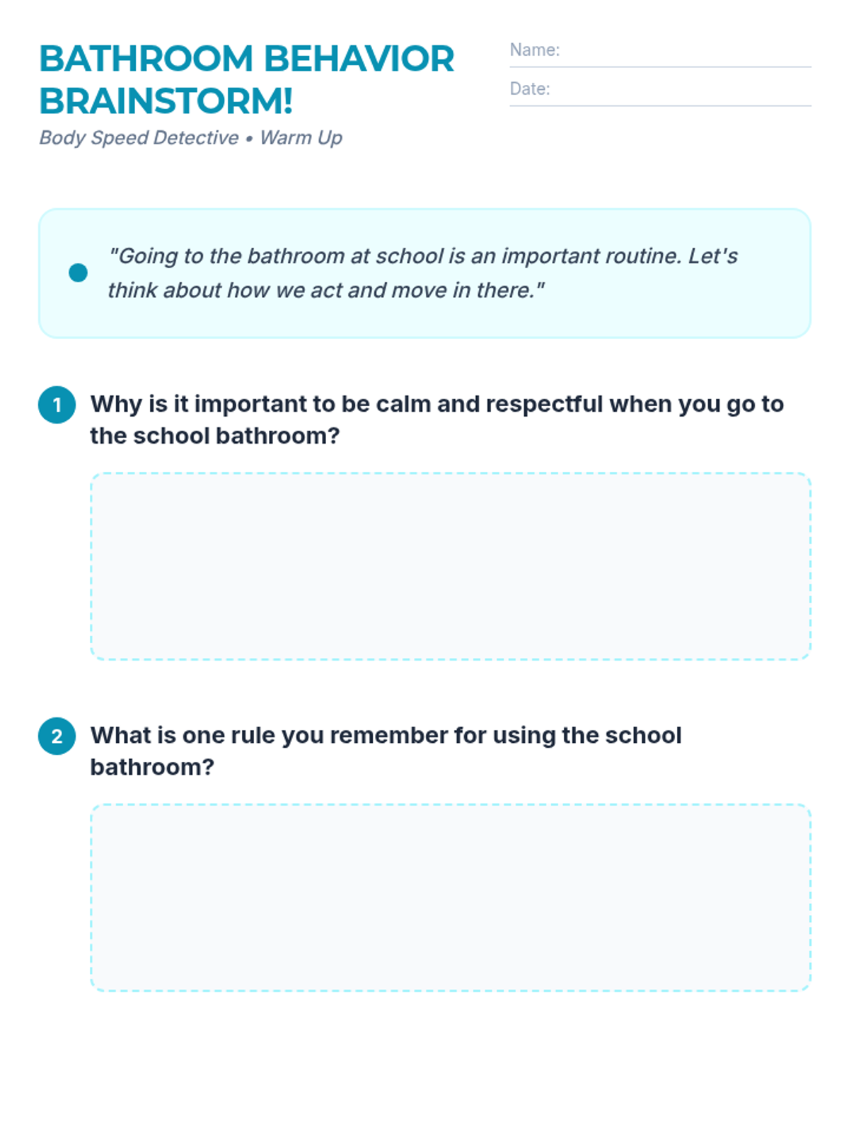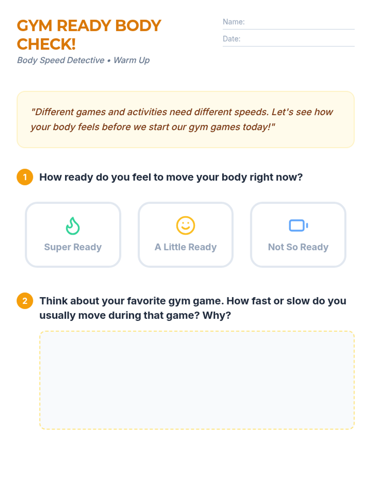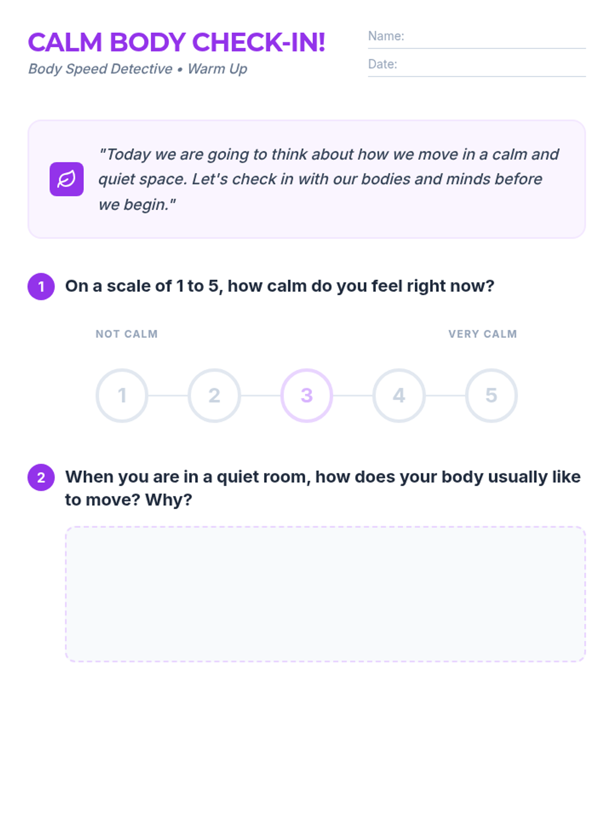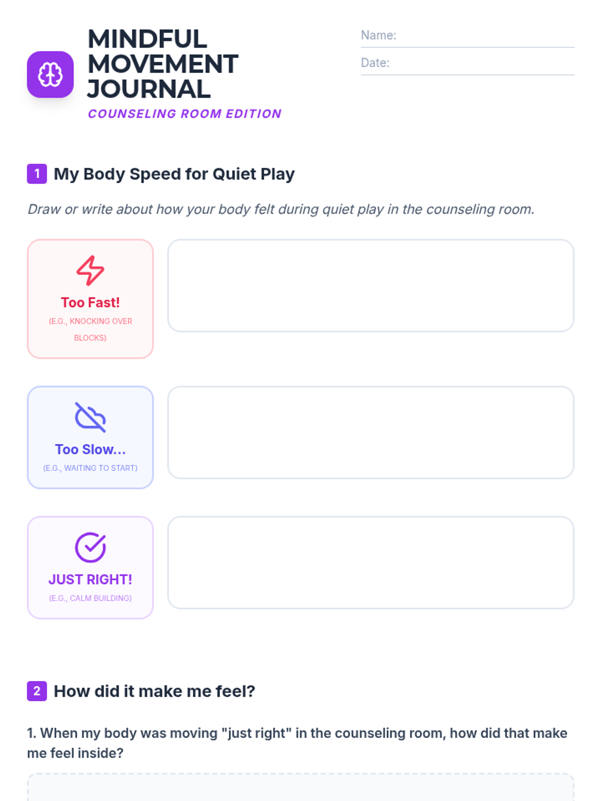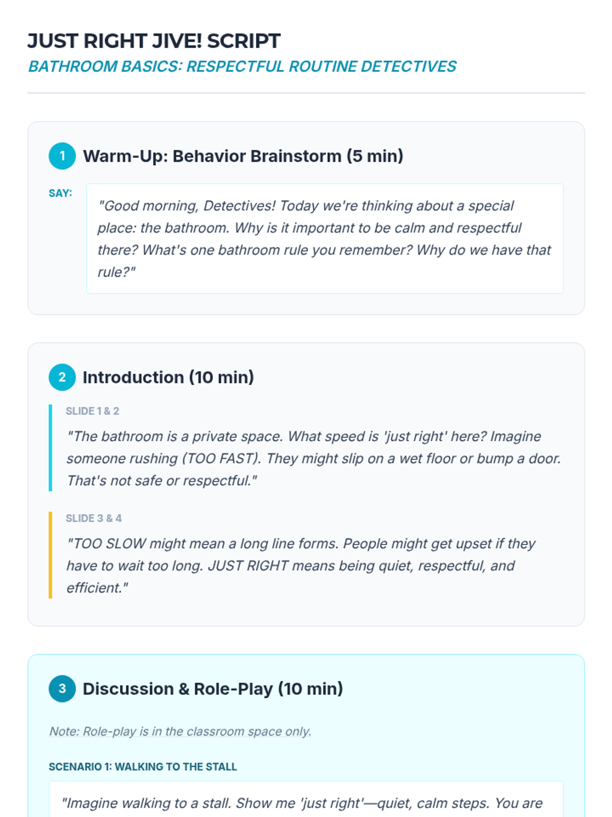 A comprehensive movement awareness sequence for 2nd-grade students, focusing on identifying and practicing appropriate speeds (too fast, too slow, and just right) across various school environments including hallways, classrooms, gyms, bathrooms, and counseling rooms.