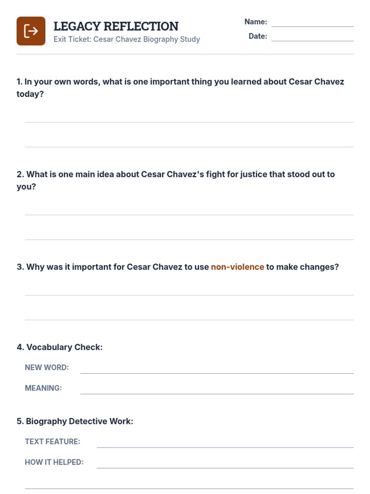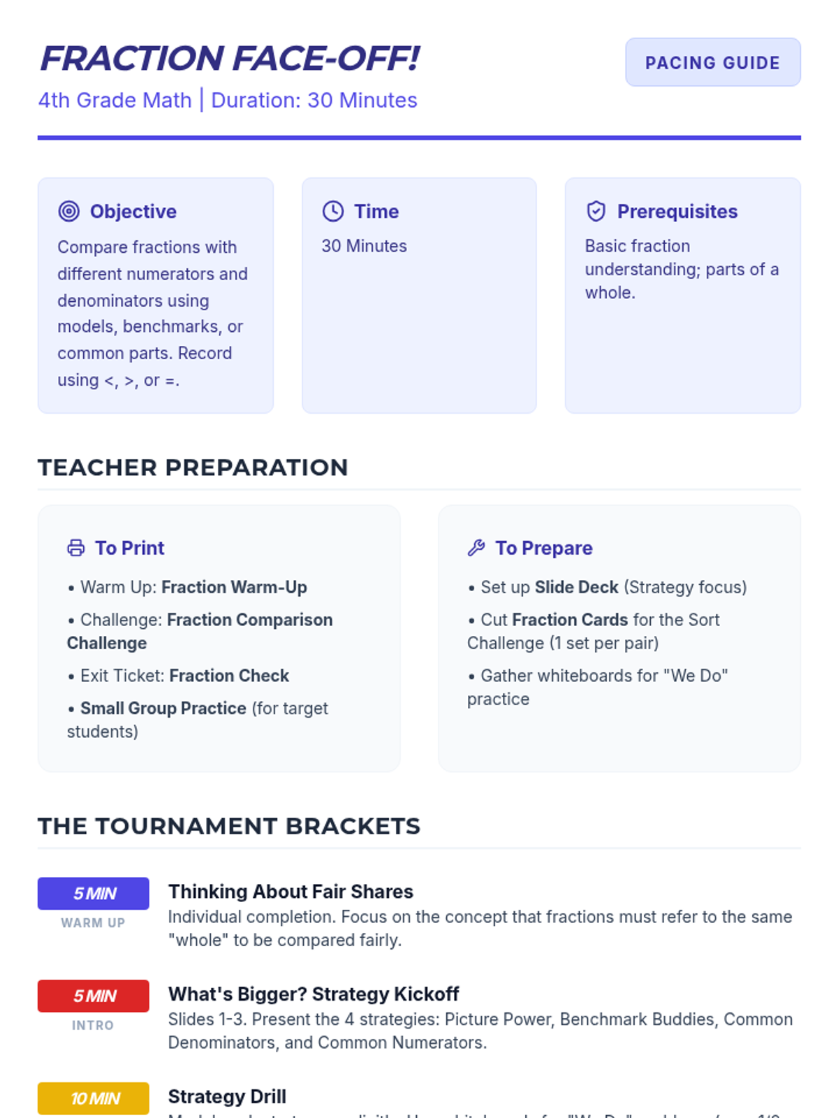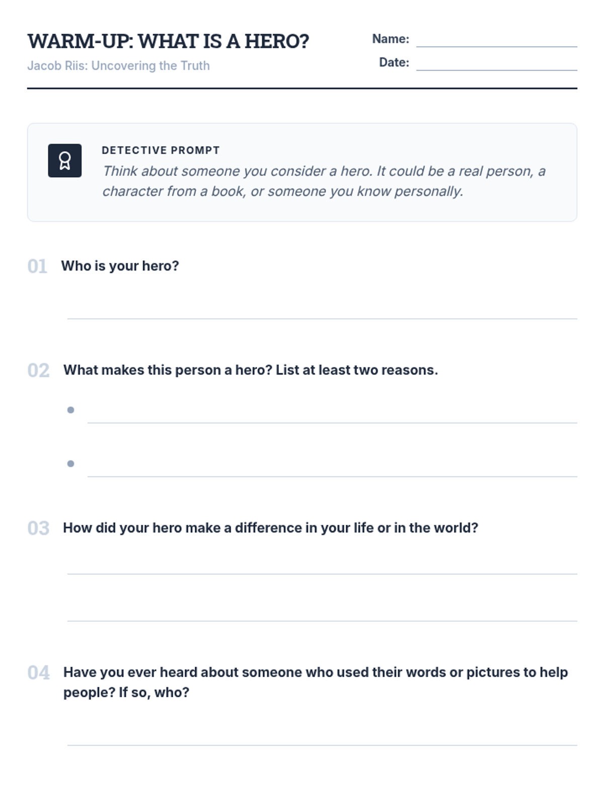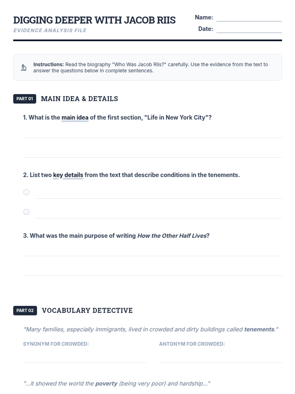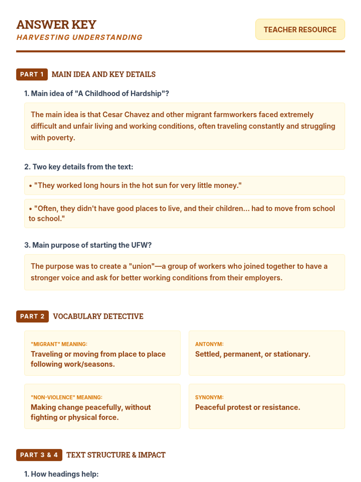 A comprehensive 4th-grade unit combining ELA biography studies on Cesar Chavez and Jacob Riis with a foundational math lesson on comparing fractions. Students explore social justice and investigative journalism while mastering main ideas, text structures, and fraction comparison strategies.