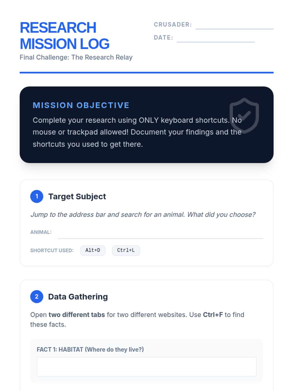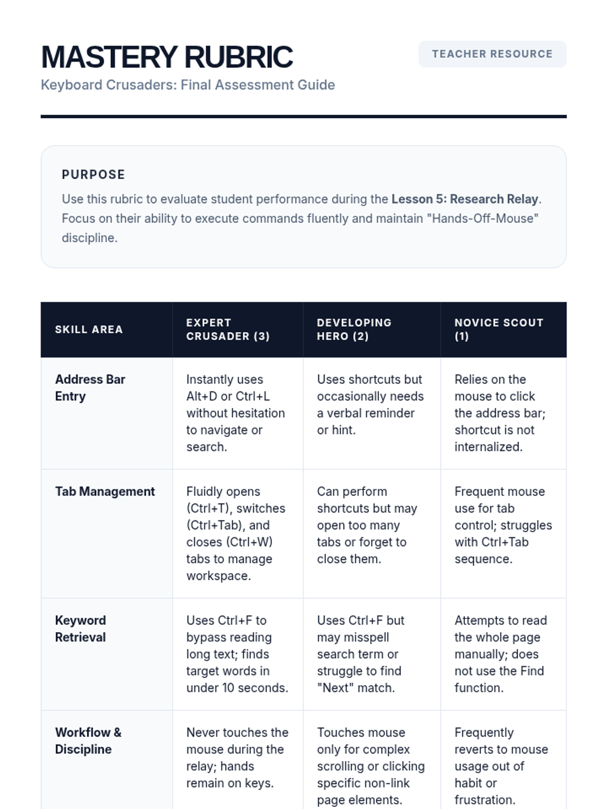 A comprehensive sequence for 4th-grade students to master web browser navigation using keyboard shortcuts, fostering digital independence and efficiency.