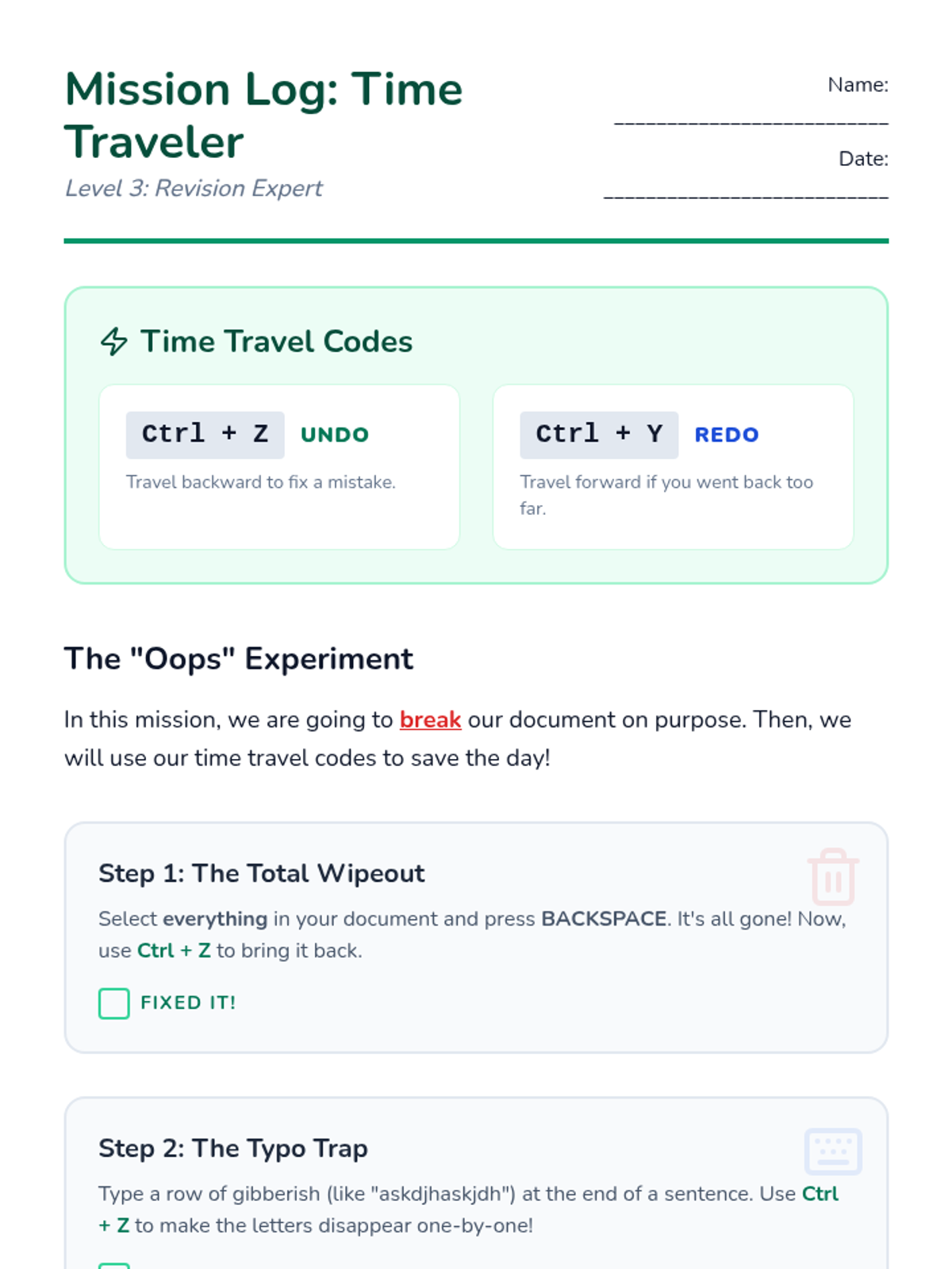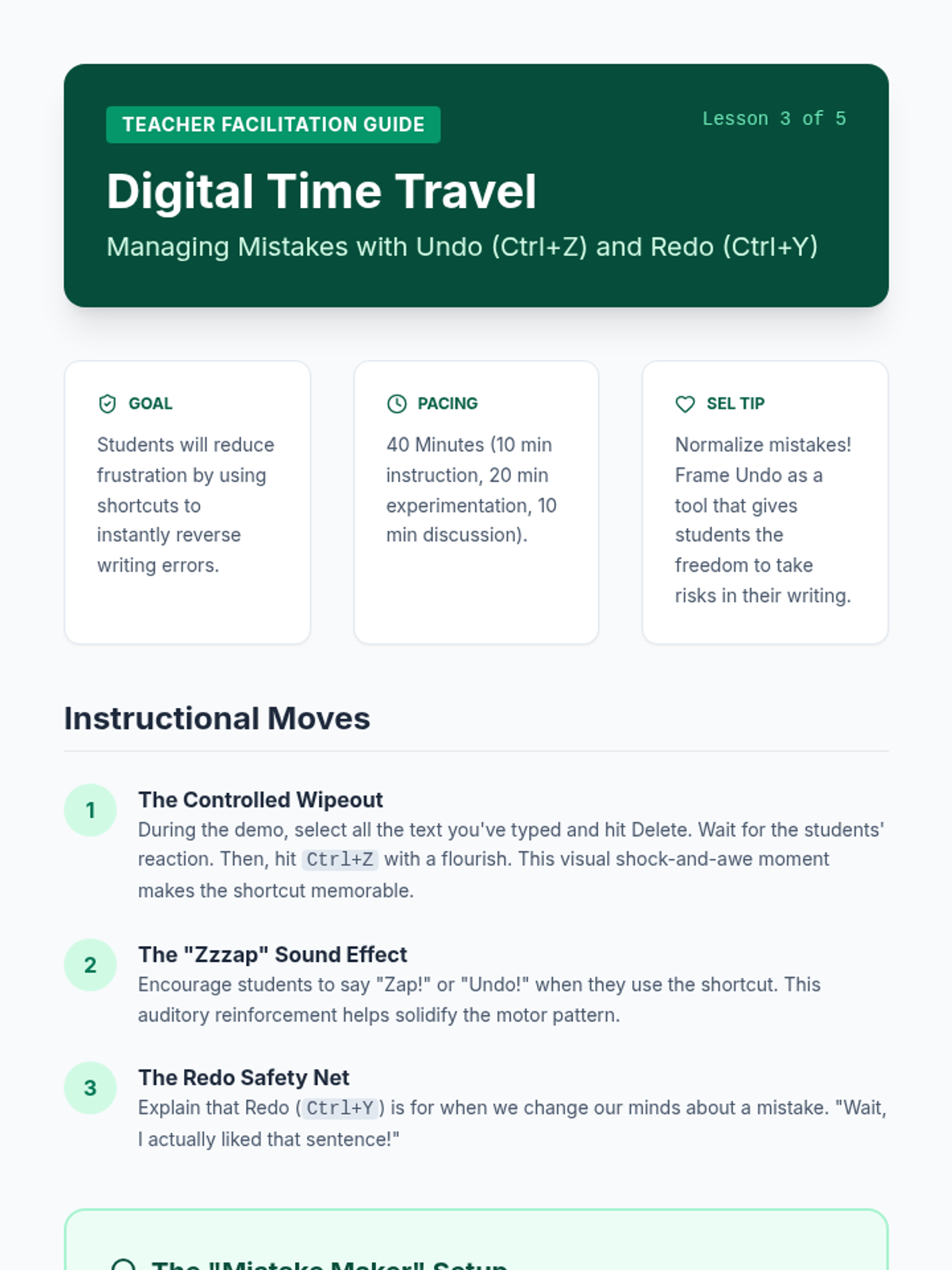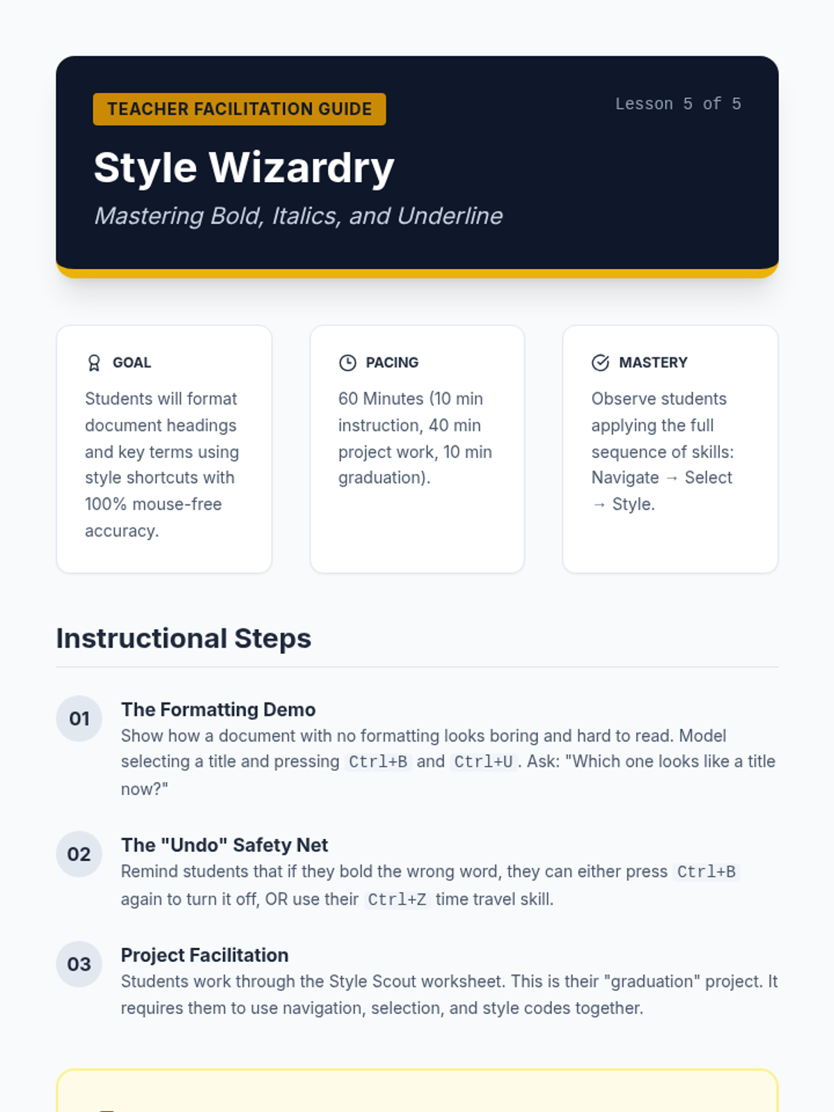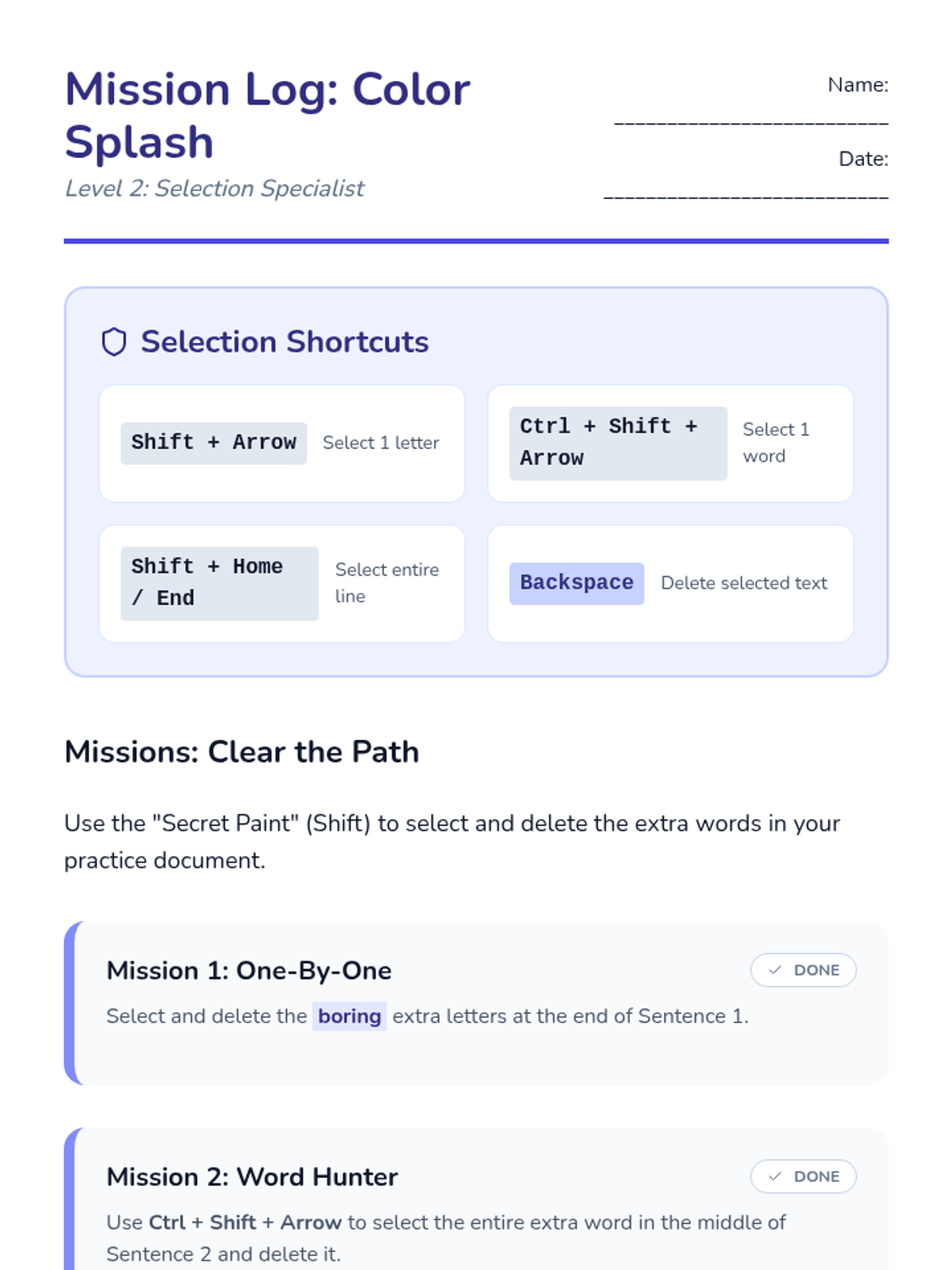 A comprehensive sequence for 4th-grade students to master keyboard shortcuts for text editing and navigation, particularly beneficial for students using assistive technology. Students learn to navigate, select, undo, organize, and format text efficiently.