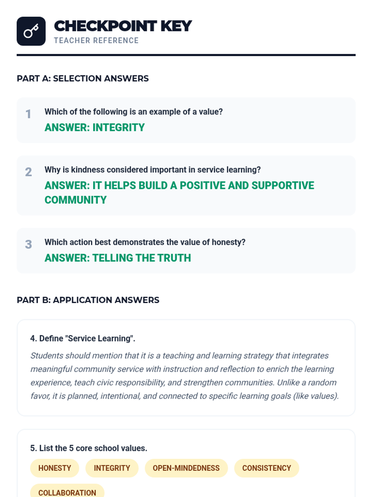 A 5-part lesson series focused on helping students identify personal and school values while developing service learning projects rooted in kindness. Students use active learning and collaboration to transform abstract values into concrete community actions.