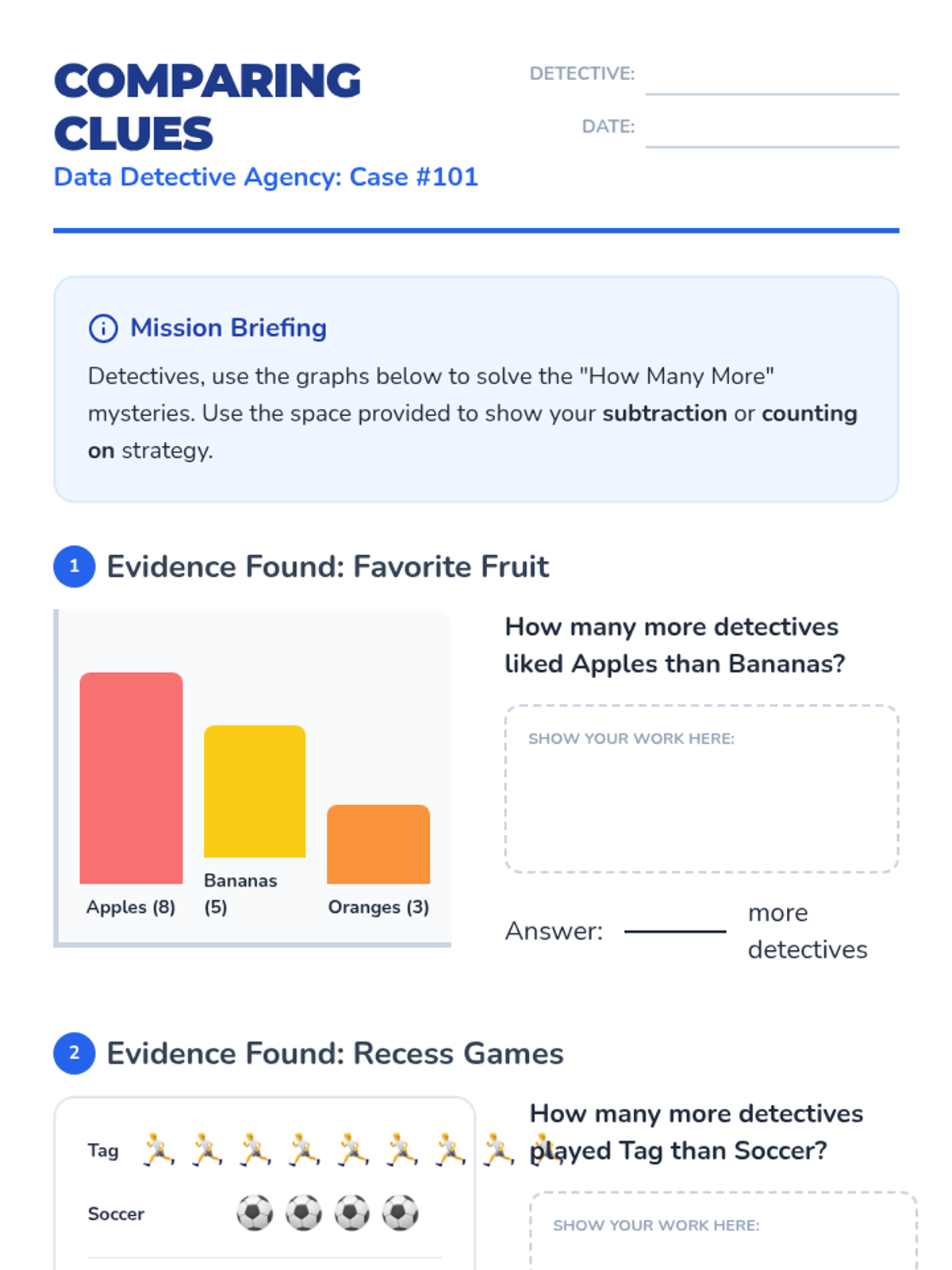 This 2nd Grade math sequence transforms students into Data Detectives who use graphs to solve addition, subtraction, and comparison problems. Students progress from simple 'how many more' comparisons to multi-step reasoning and creating their own data-based inquiries.