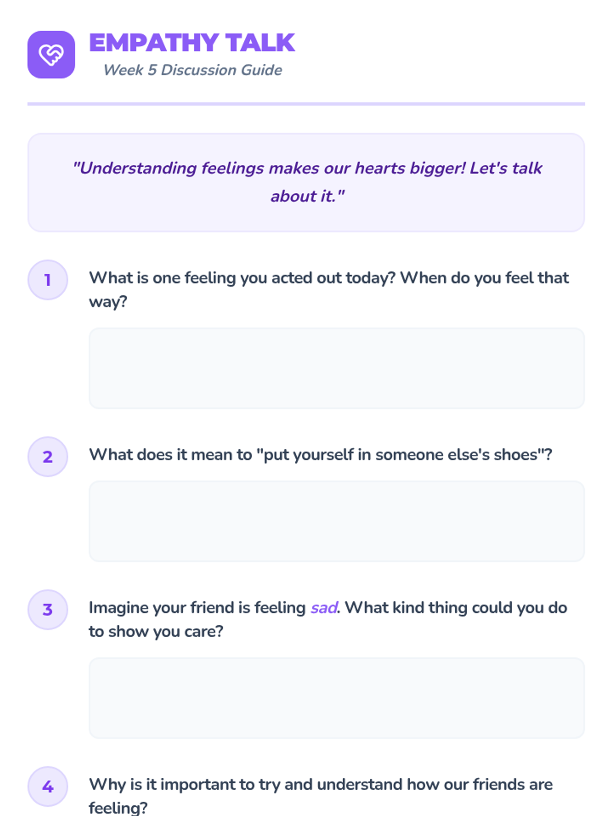 A comprehensive 4-day small group program focusing on essential social-emotional skills including emotional regulation, active listening, friendship building, and conflict resolution.