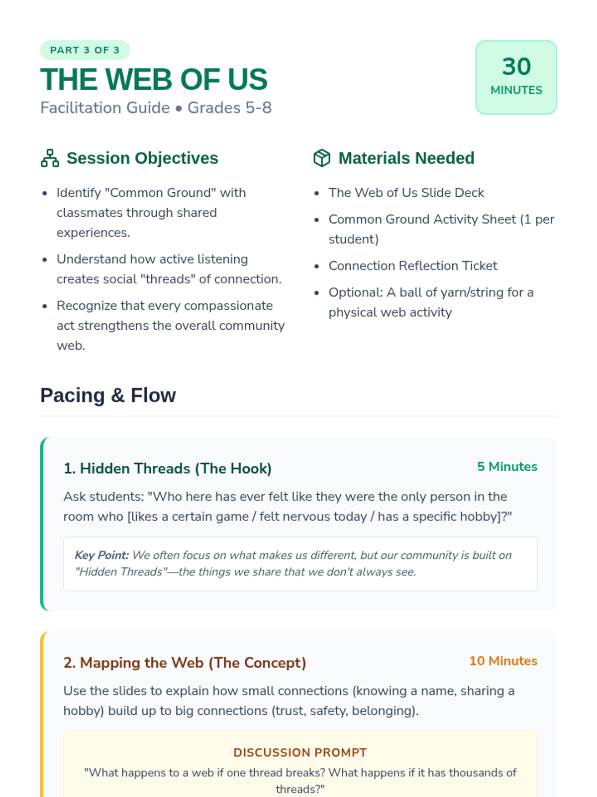 A social-emotional learning sequence designed for middle schoolers to navigate complex social interactions, focusing on empathy, communication filters, and the ripple effect of their words.