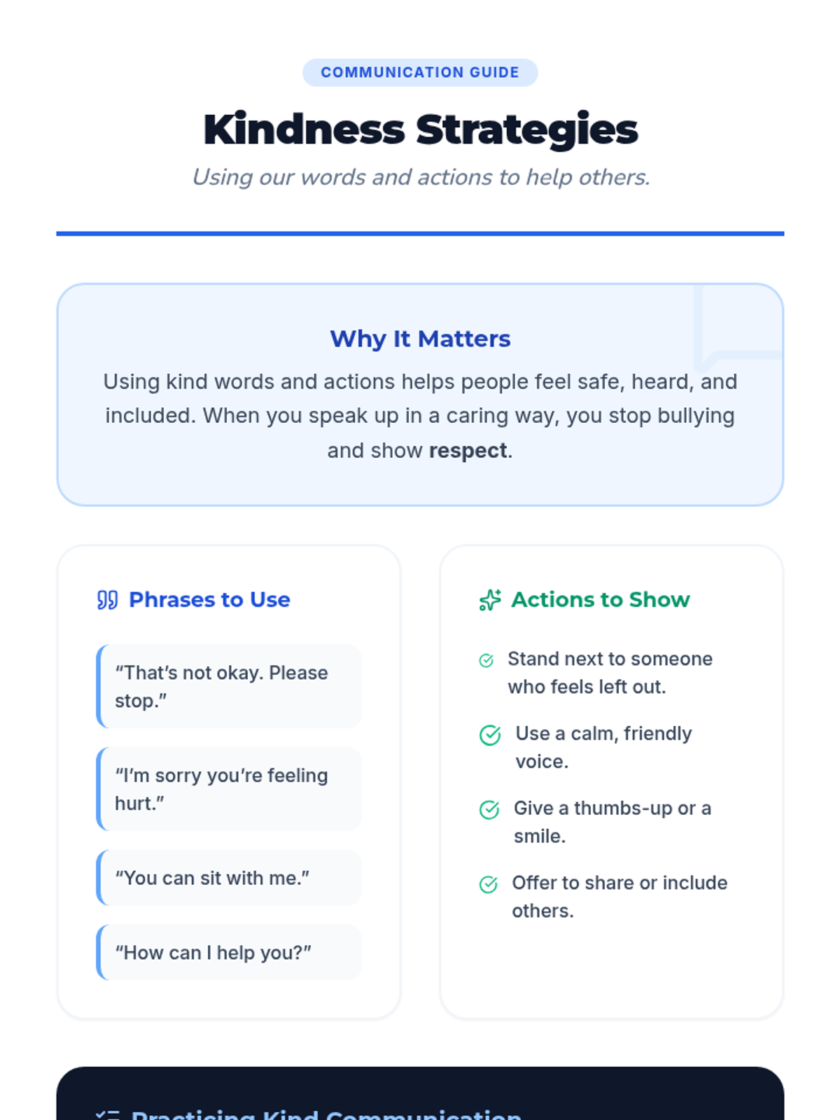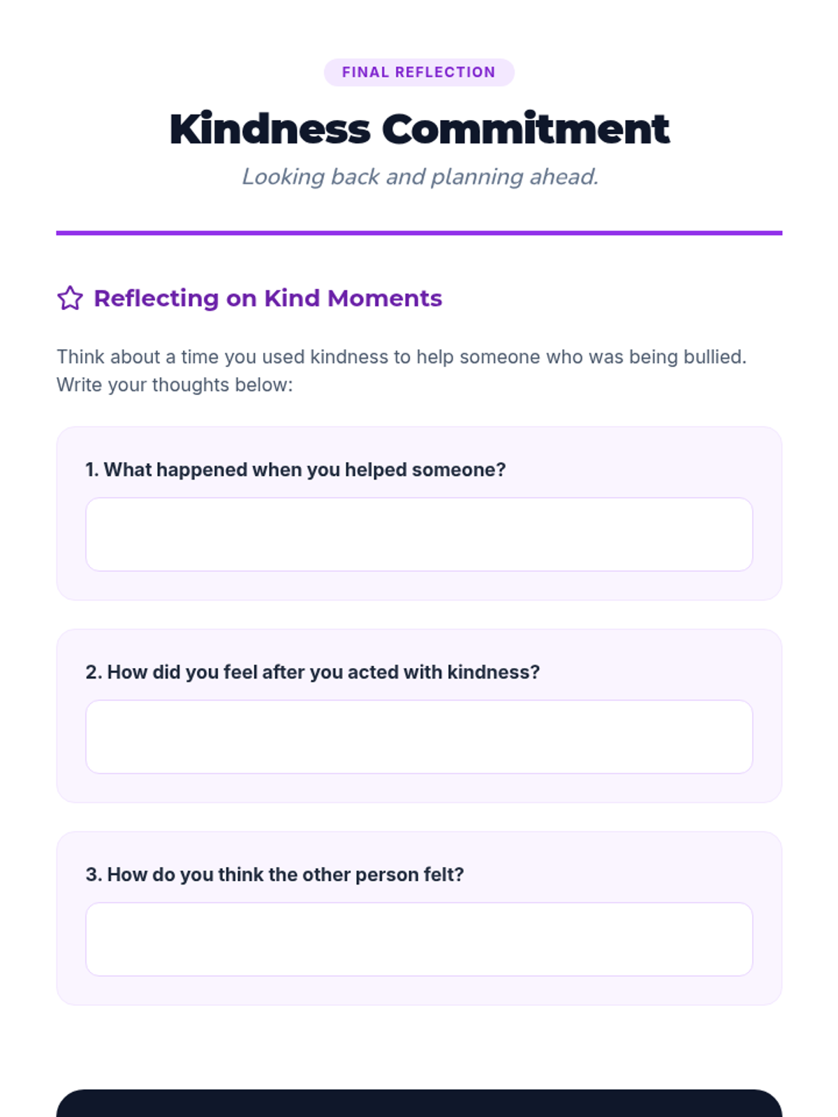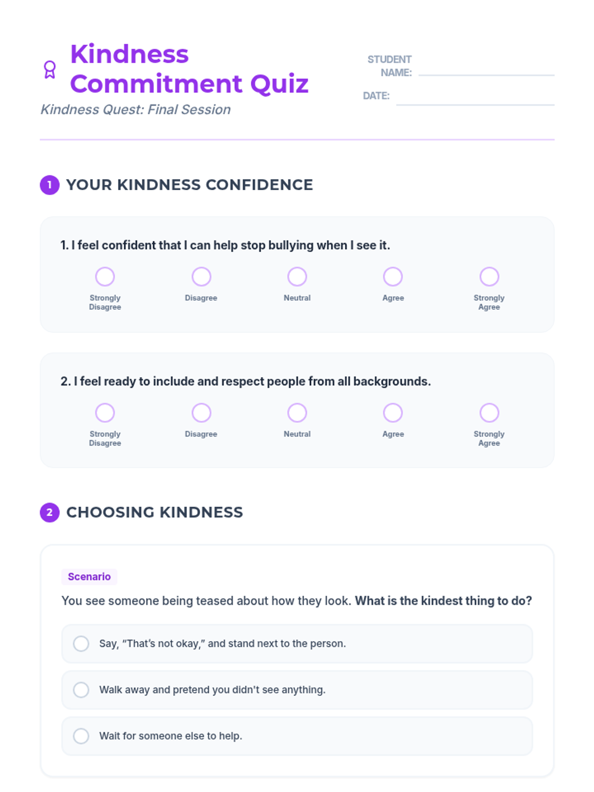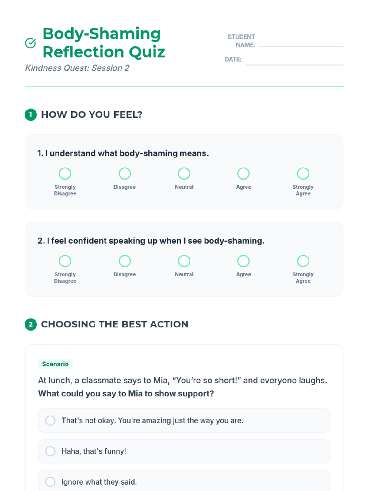 A 5-session individual program for 3rd graders focusing on empathy, respect, and preventing bullying related to race and body-shaming. This series uses interactive readings and reflection to build positive communication skills.