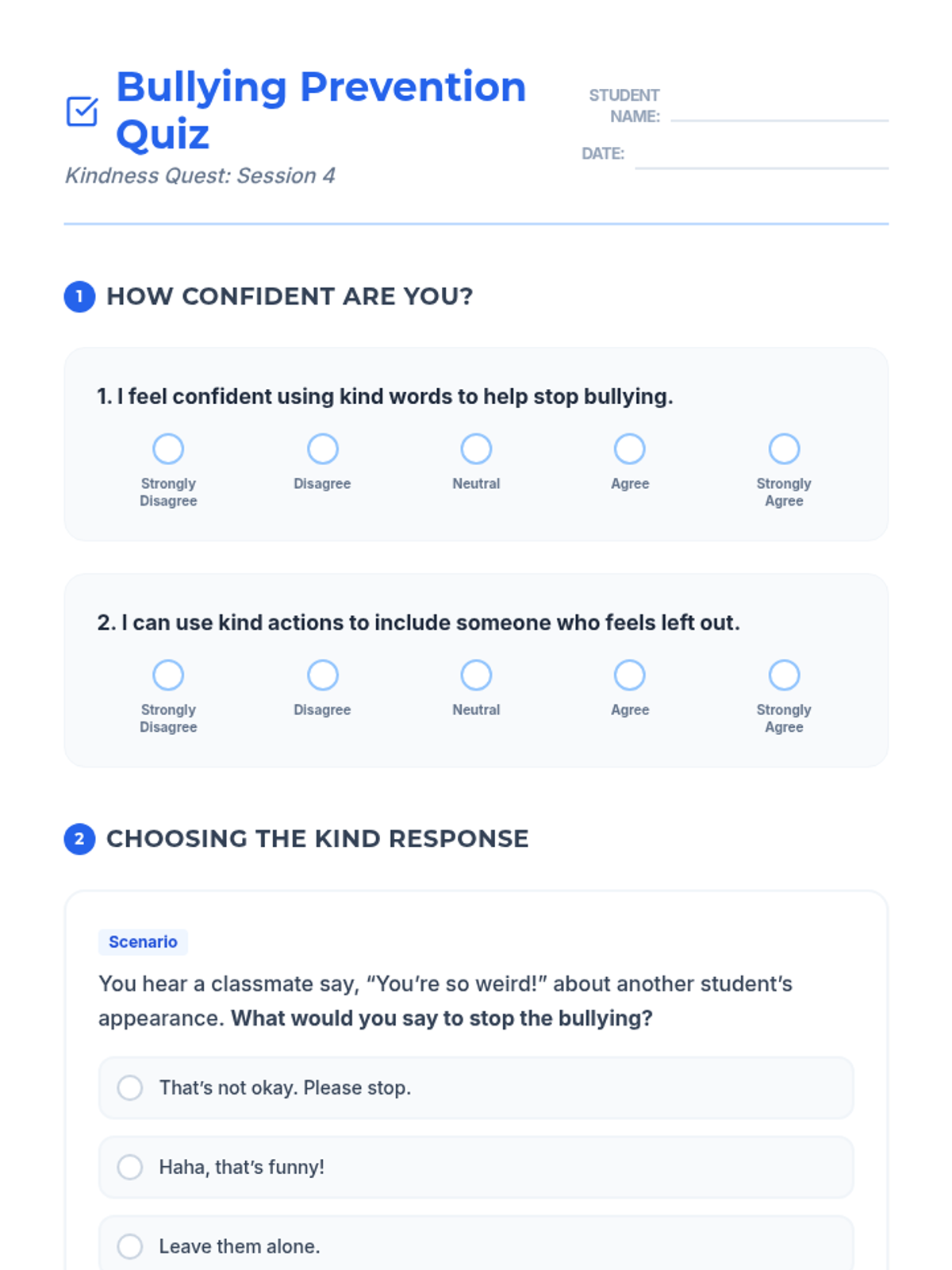 A comprehensive four-lesson series designed to help students identify their emotions, recognize physical triggers, build a coping toolbox, and align their reactions with the size of their problems.