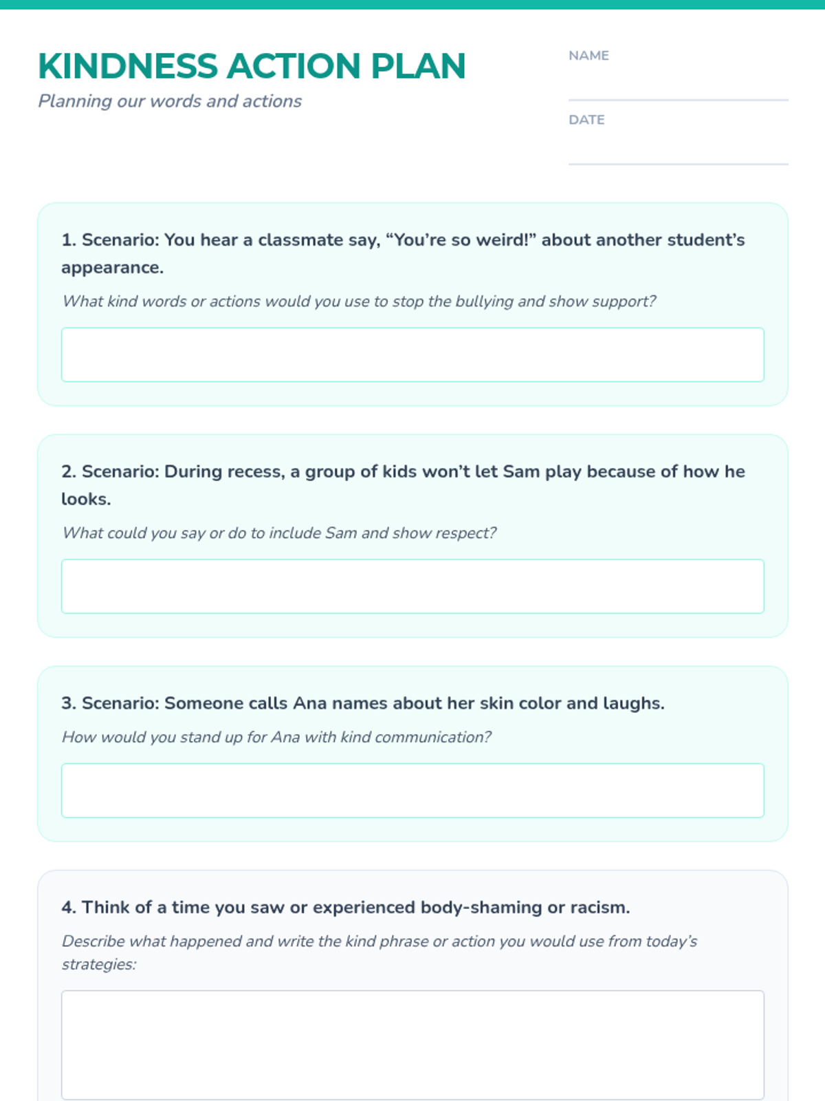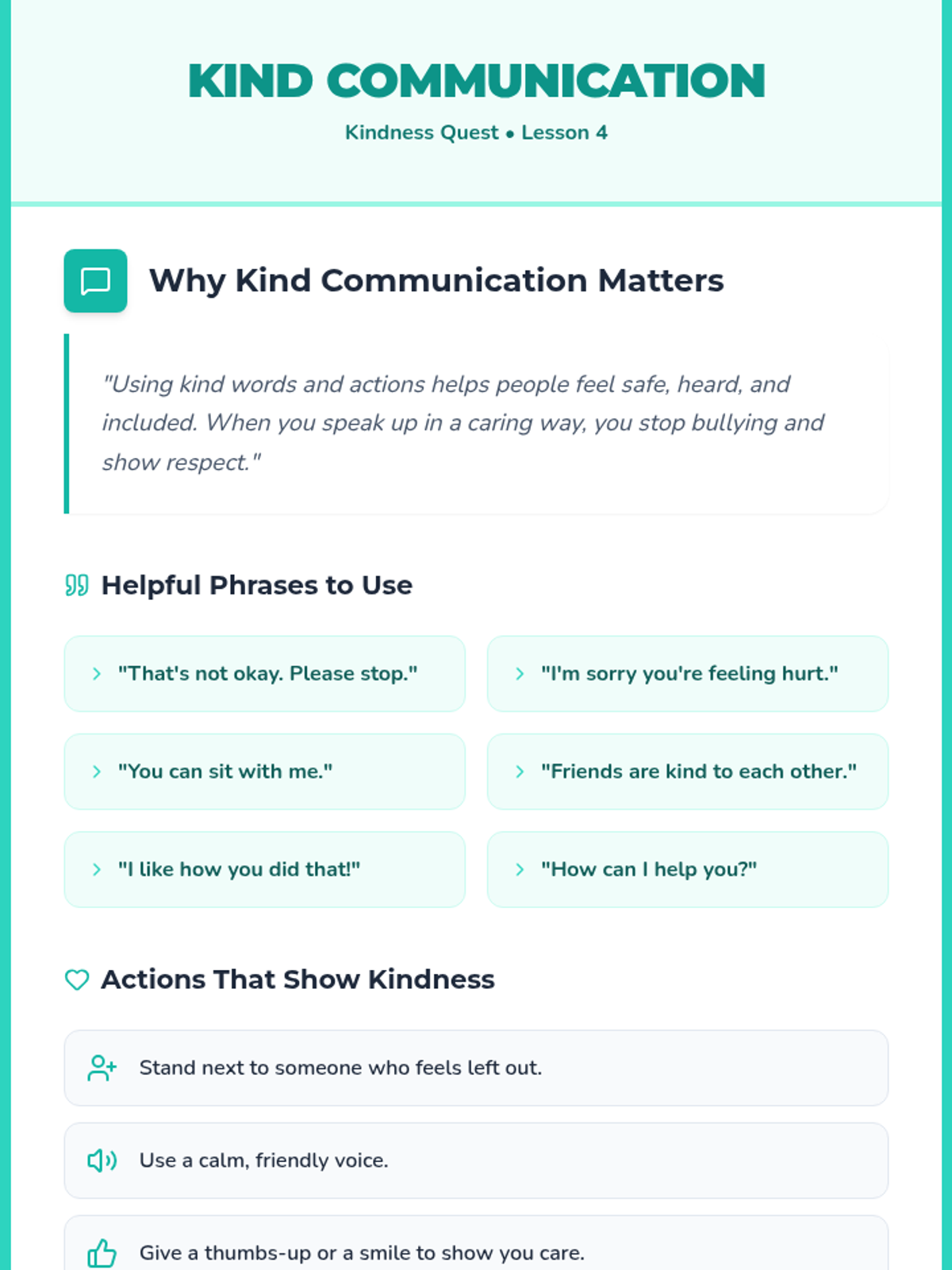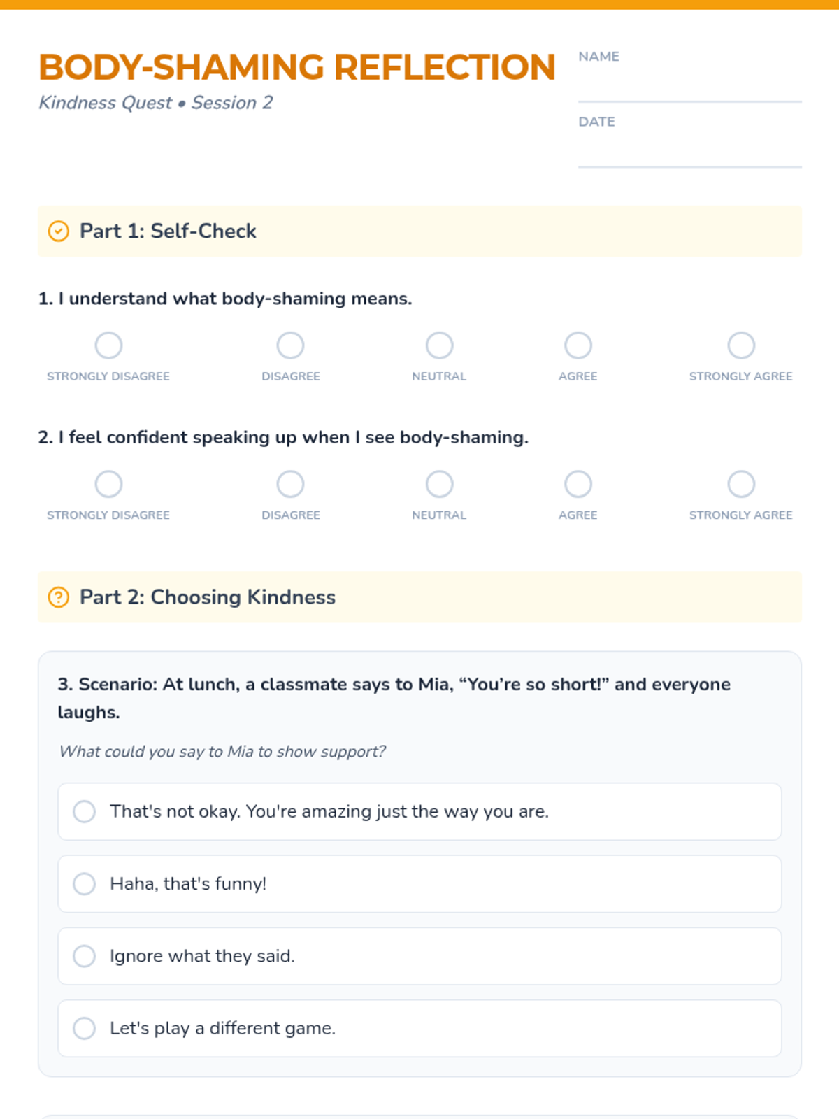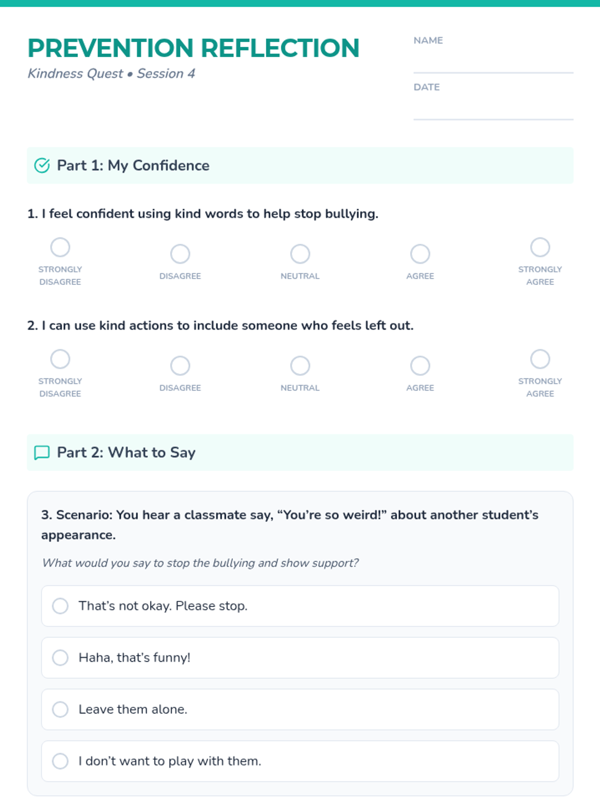 A 5-session individual program for a 3rd grader to understand and prevent bullying, focusing on race and body-shaming. Through readings, activities, and reflections, this series builds empathy, respect, and positive communication skills.