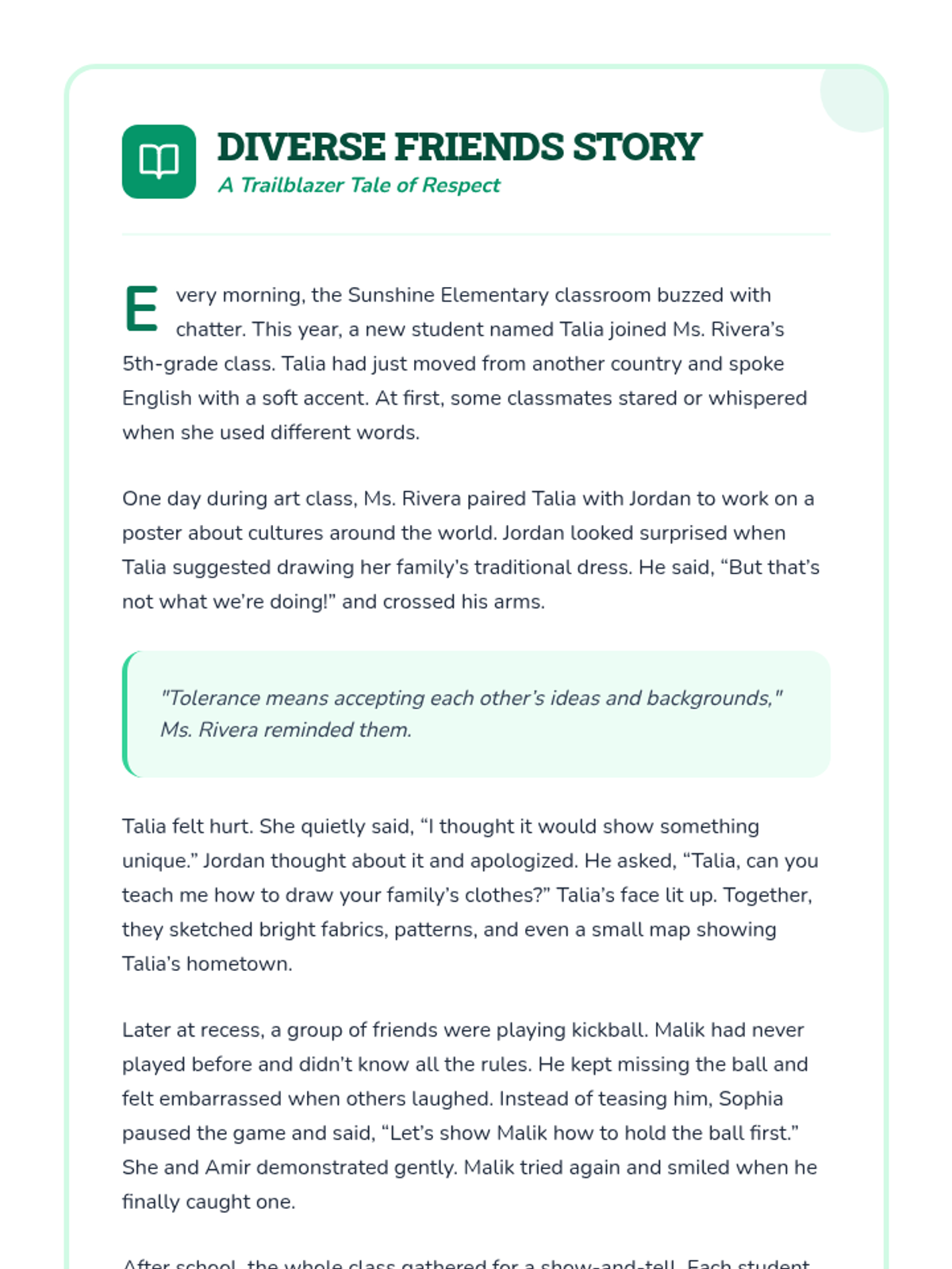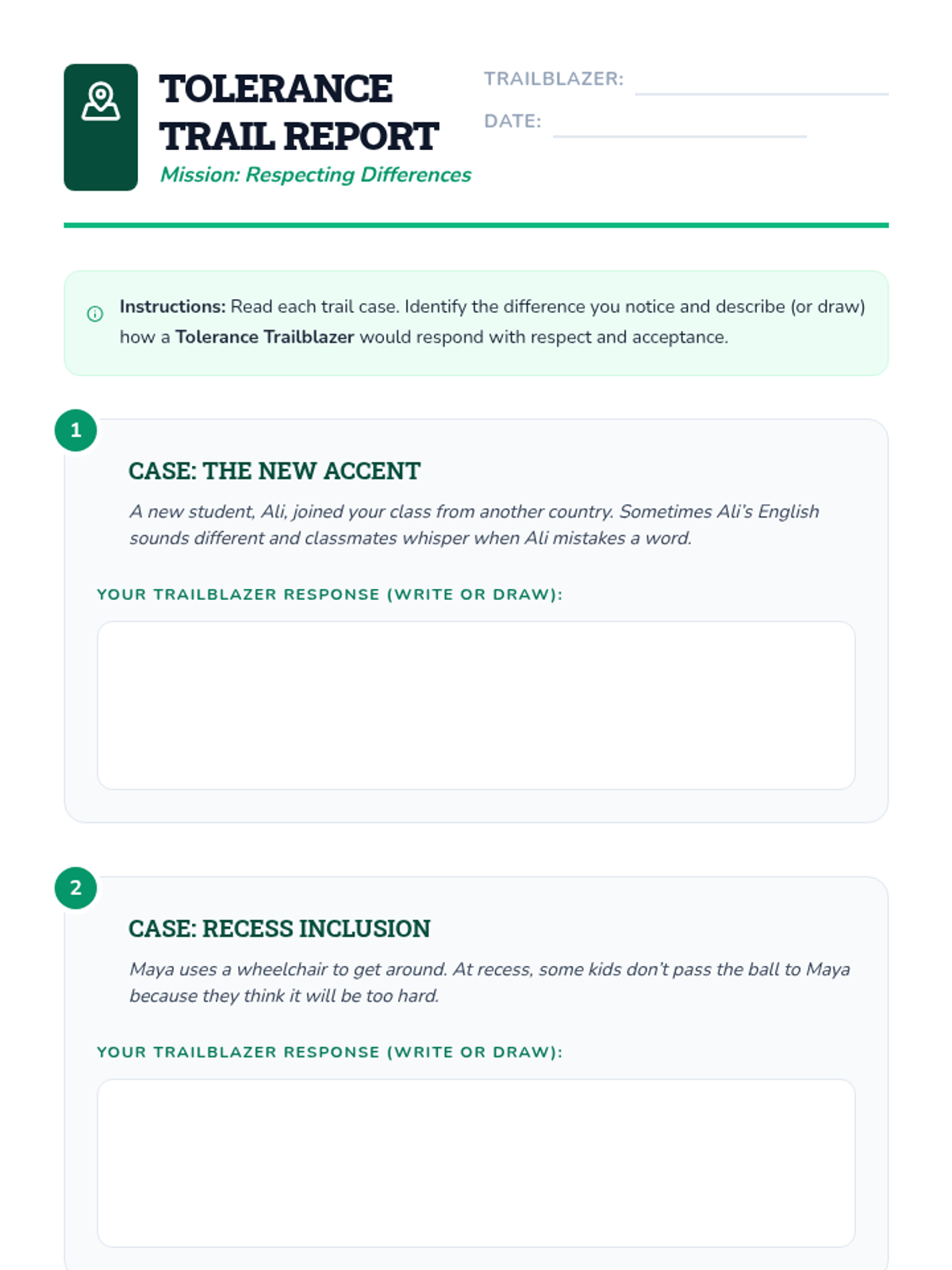 A 2-part Social-Emotional Learning sequence for 4th and 5th graders focused on building empathy and respect. Students learn to 'crack the code' of social awareness and become 'trailblazers' of tolerance in their classroom community.