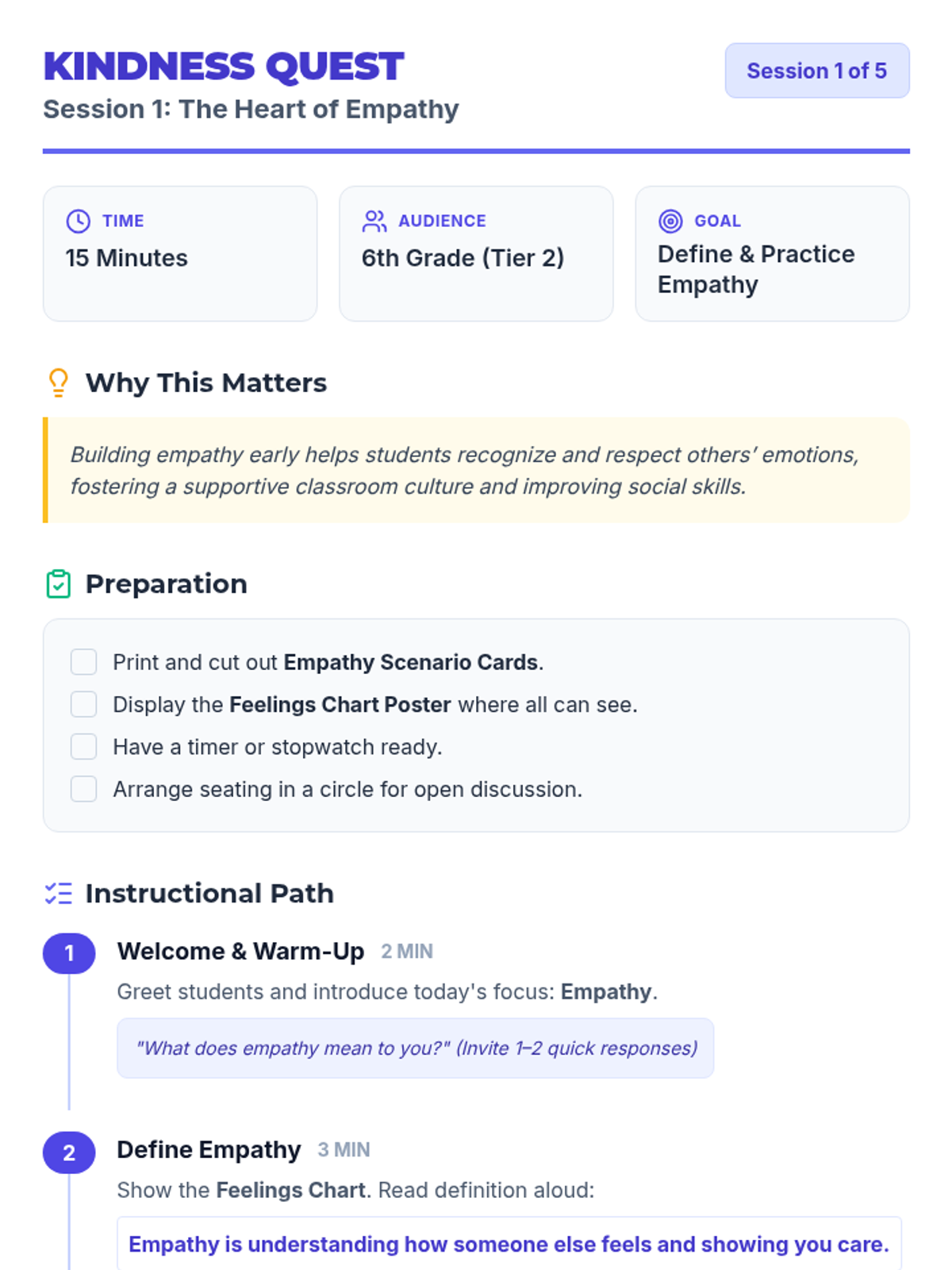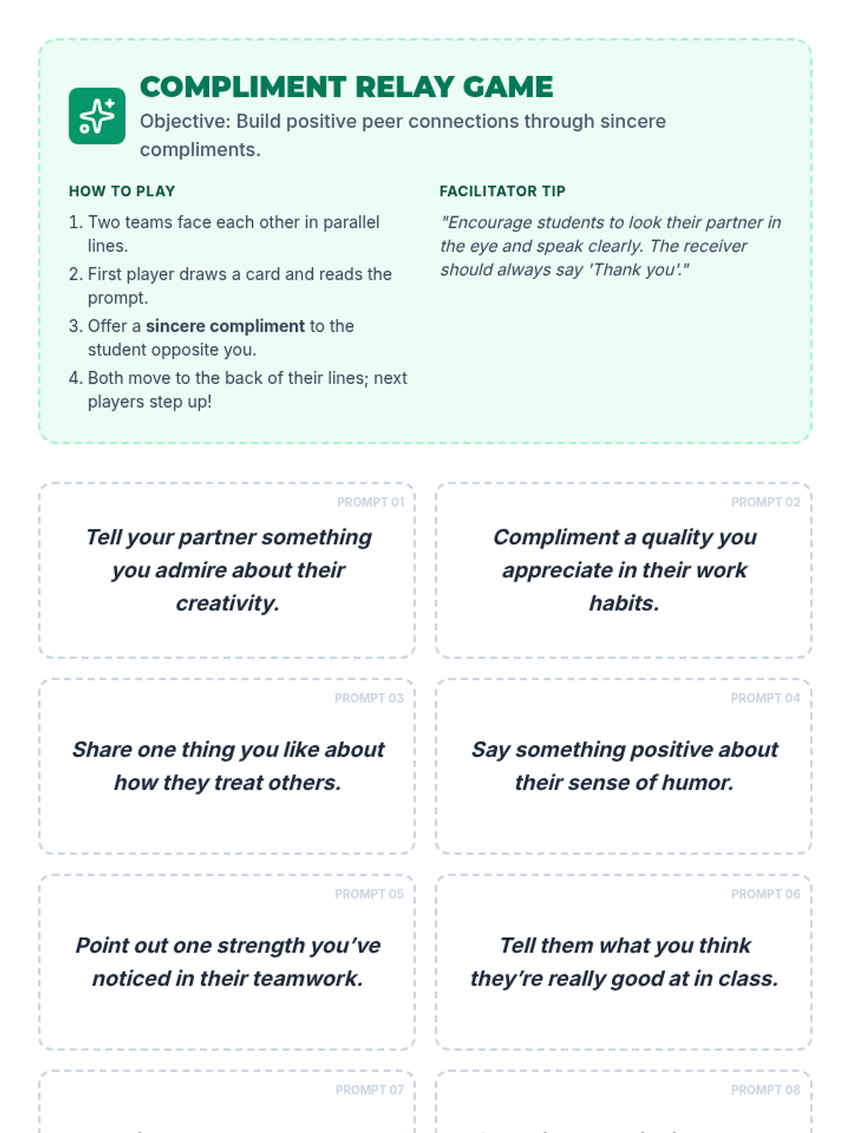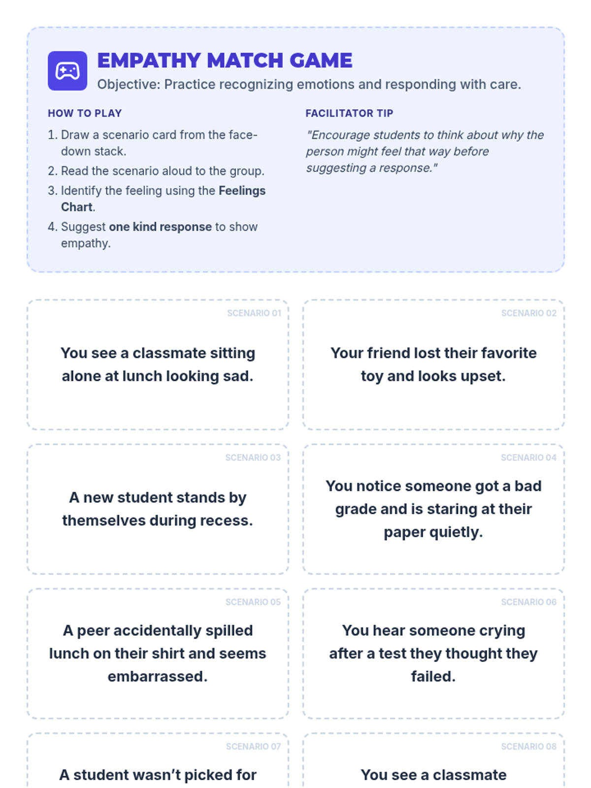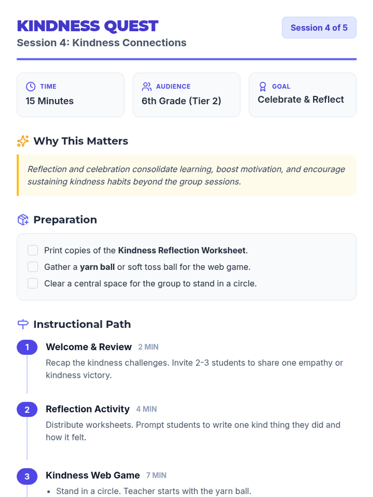 A 5-session mini-course for 6th graders to develop empathy, practice positive communication, and understand the impact of their words through games and guided reflection.