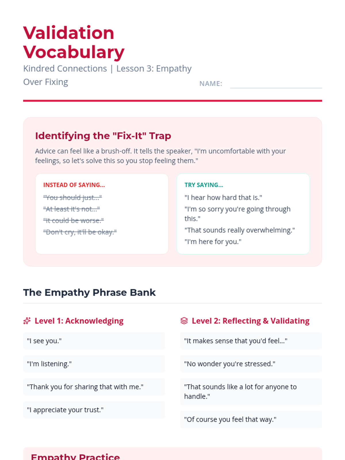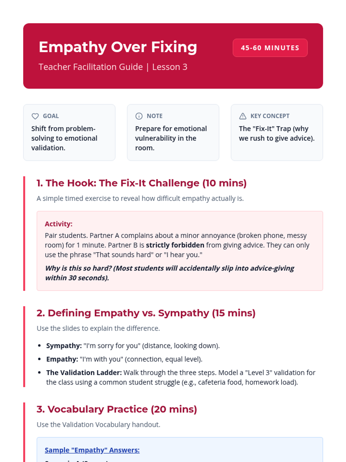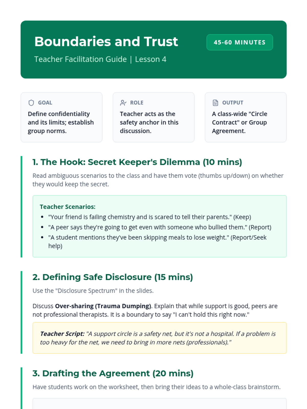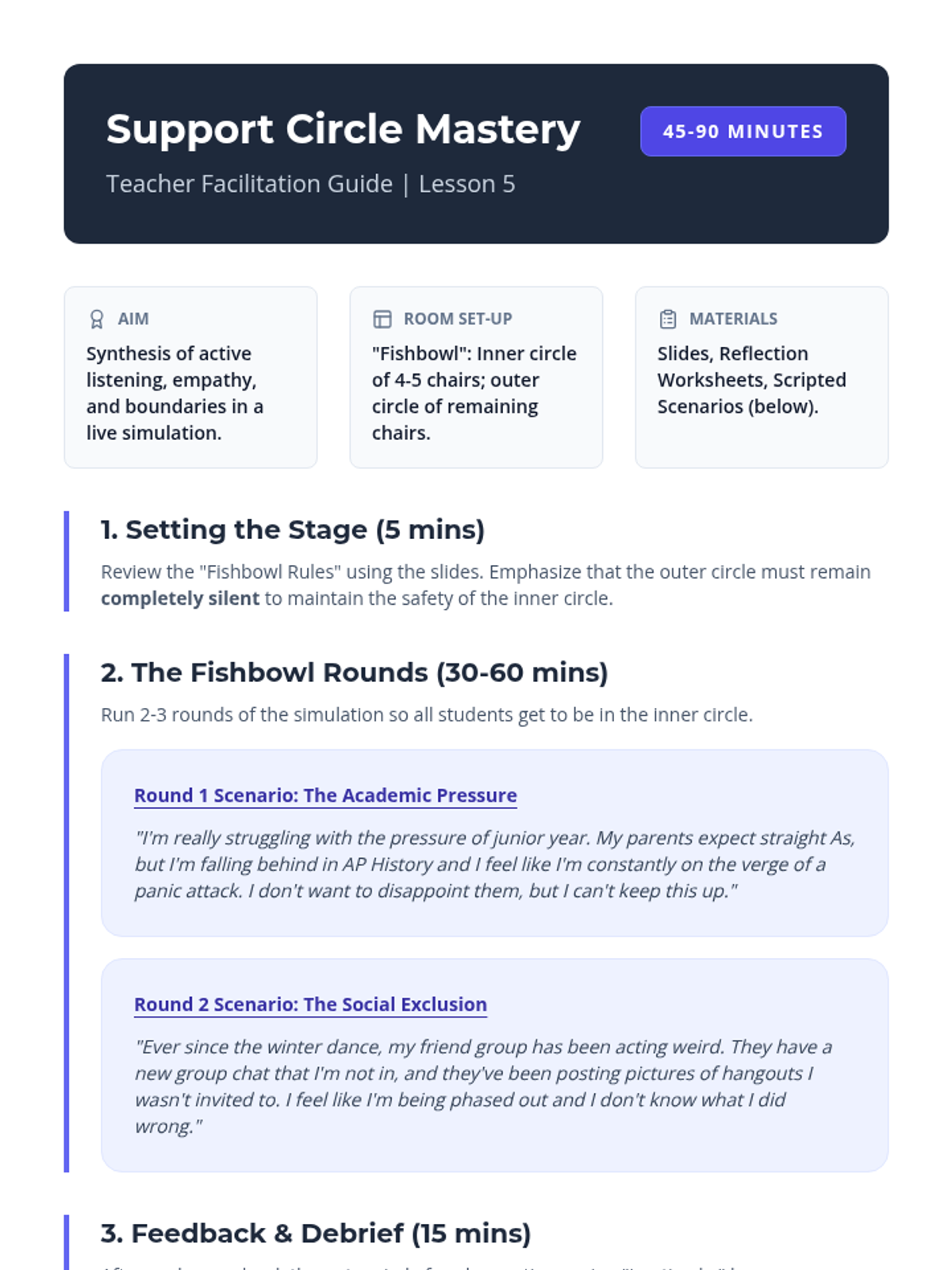 This sequence equips 10th-grade students with the interpersonal tools necessary to participate in and facilitate supportive peer groups, focusing on active listening, empathy, boundaries, and group dynamics.