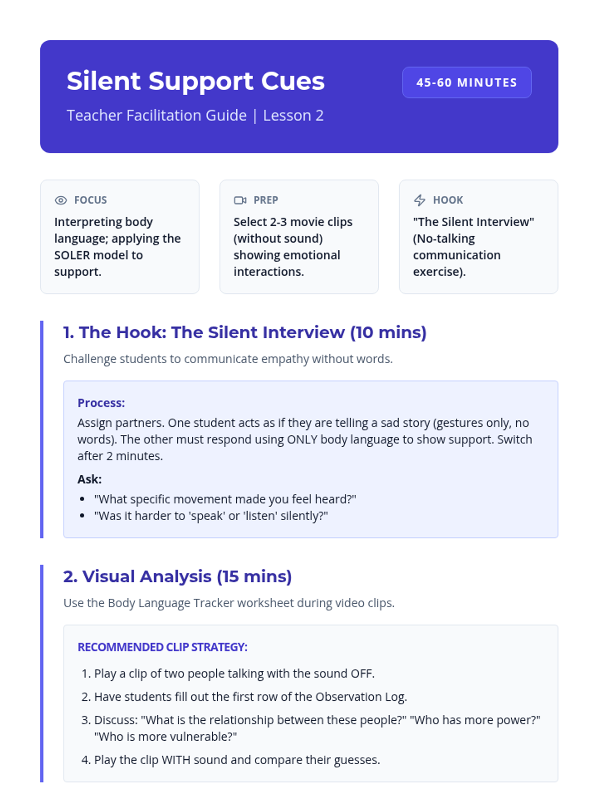 A high-engagement therapeutic sequence for grades 9-12 focusing on the pillars of leadership through role modeling and emotional self-regulation. Designed for students with short attention spans using interactive, low-pressure activities.