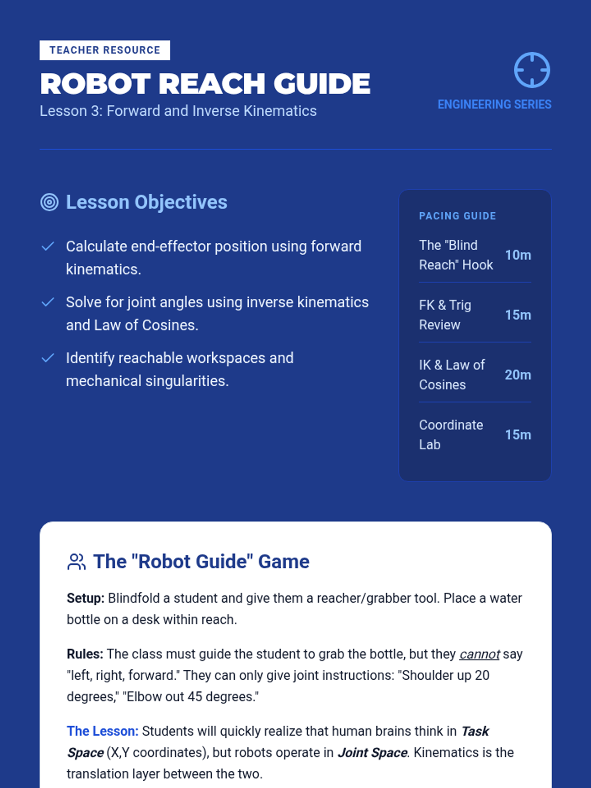 A comprehensive high school engineering sequence exploring the motion of machines, actuator selection, robotic kinematics, and sensor integration to create intelligent automated systems.