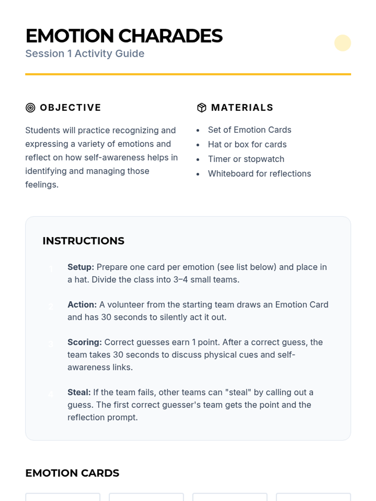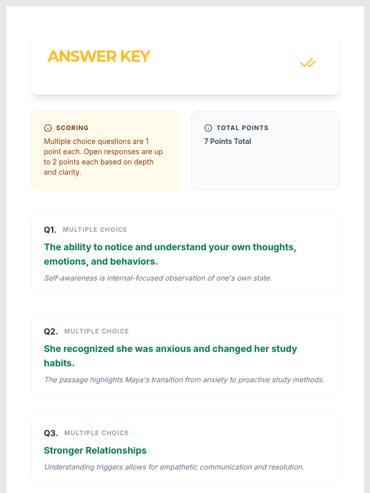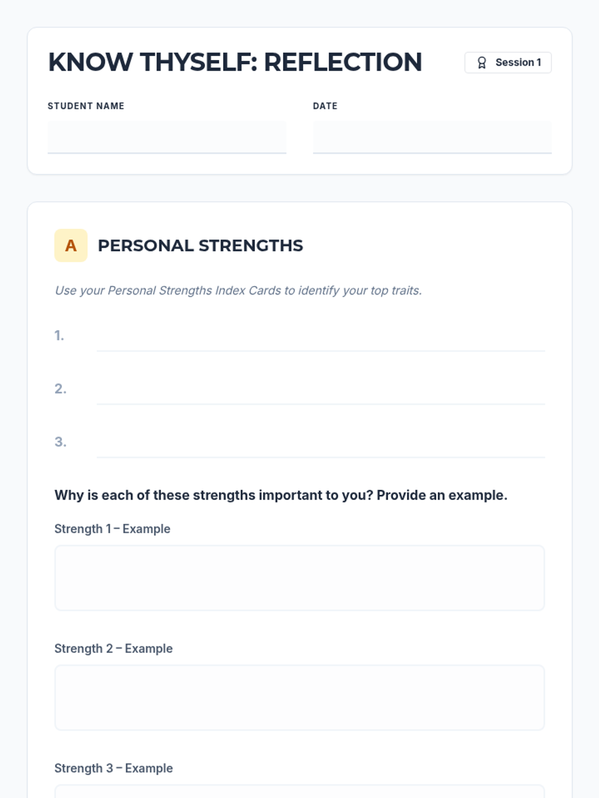 A 10-session self-awareness unit for Grade 10 students to explore personal strengths, values, and emotions through readings, discussions, activities, and reflections. This classroom-wide Tier 1 series builds essential life skills, culminating in a project and comprehensive assessment.