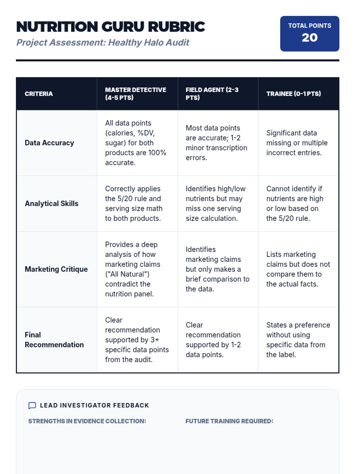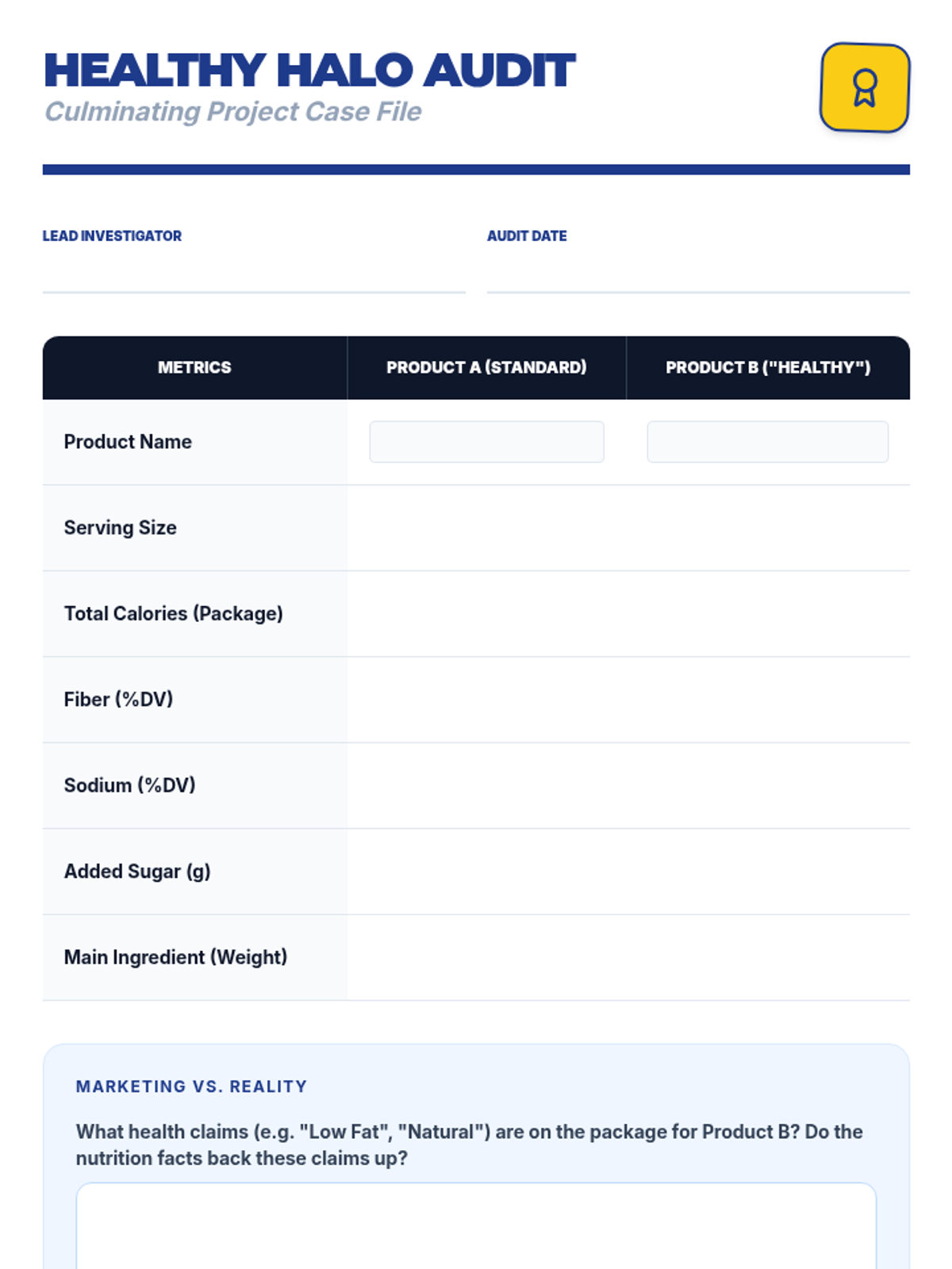 A 5-lesson inquiry-based sequence for 7th graders to master the art of reading and interpreting Nutrition Facts panels. Students progress from basic serving size math to analyzing complex ingredient lists and conducting comparative nutritional audits.