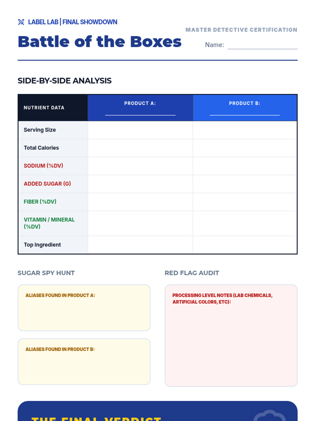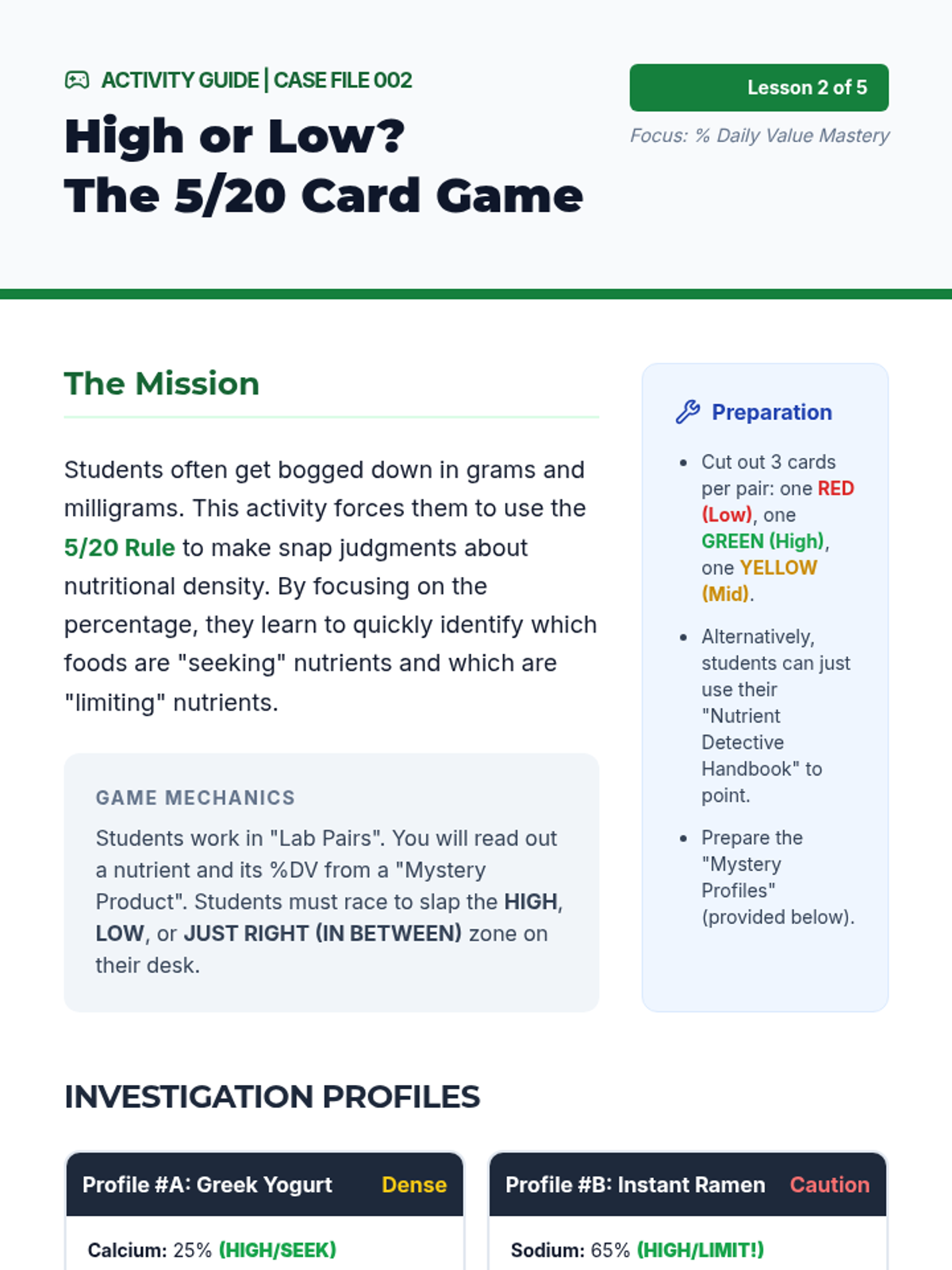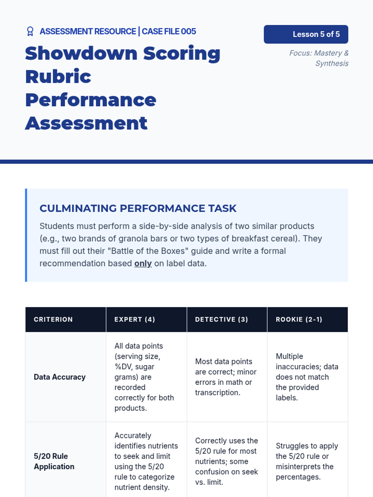 A 2-day condensed unit for 10th-grade sports nutrition focused on identifying industry "Red Flags" and expert consensus for supplement safety. Students complete a digital Label Hunt and a final synthesis assessment to demonstrate mastery.