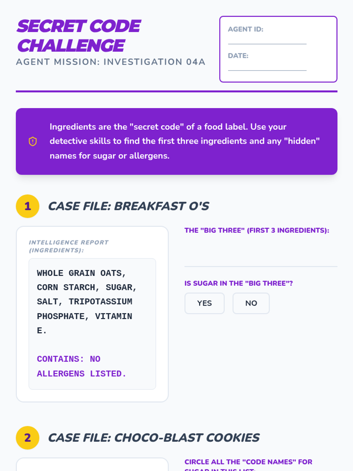 Students become 'Label Legends' as they master the art of reading nutrition facts and ingredient lists. They learn to identify key nutrients, calculate serving sizes, visualize sugar content, and decode ingredient lists to make informed, healthy food choices.