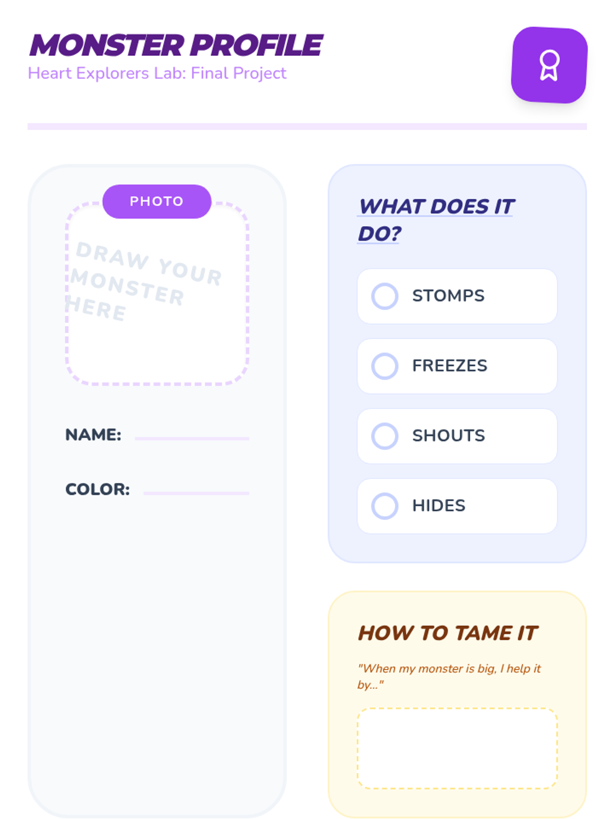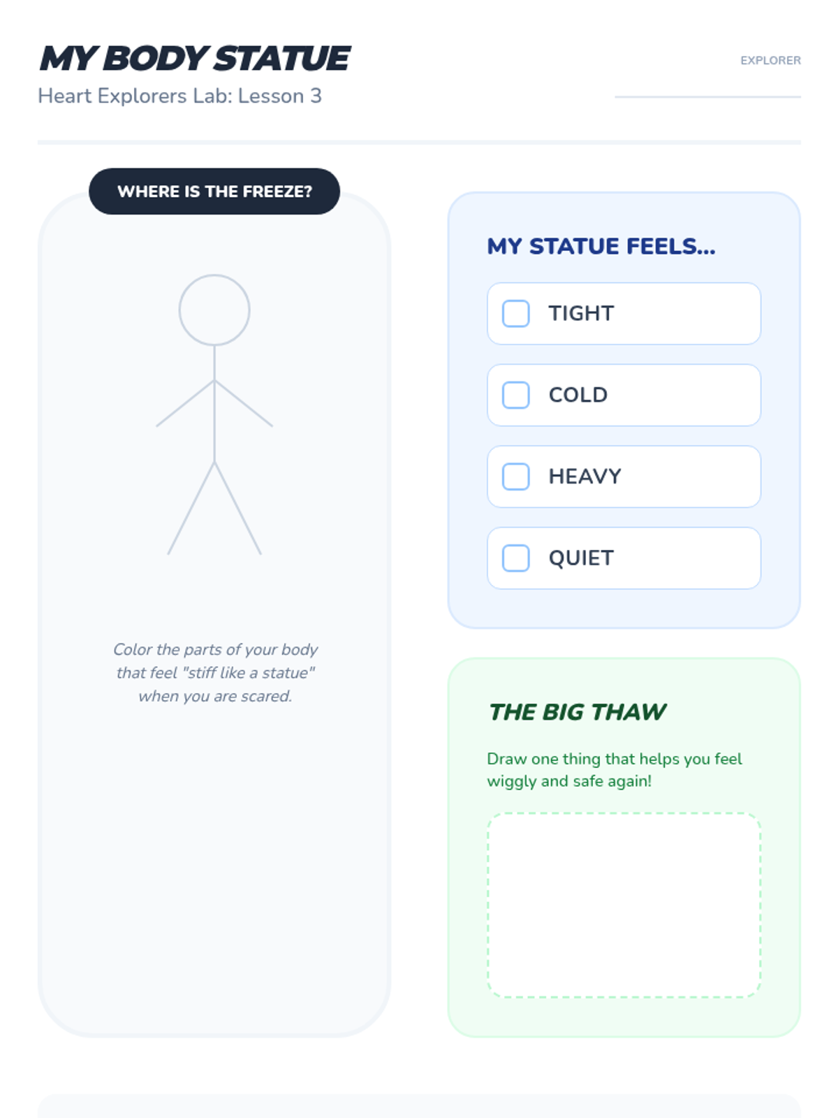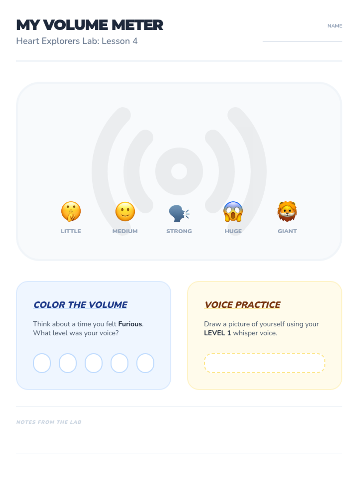 A sequence for Pre-K students to build emotional literacy regarding intense feelings, trauma responses, and distinguishing between 'little' and 'big' emotions through art, story, and play.