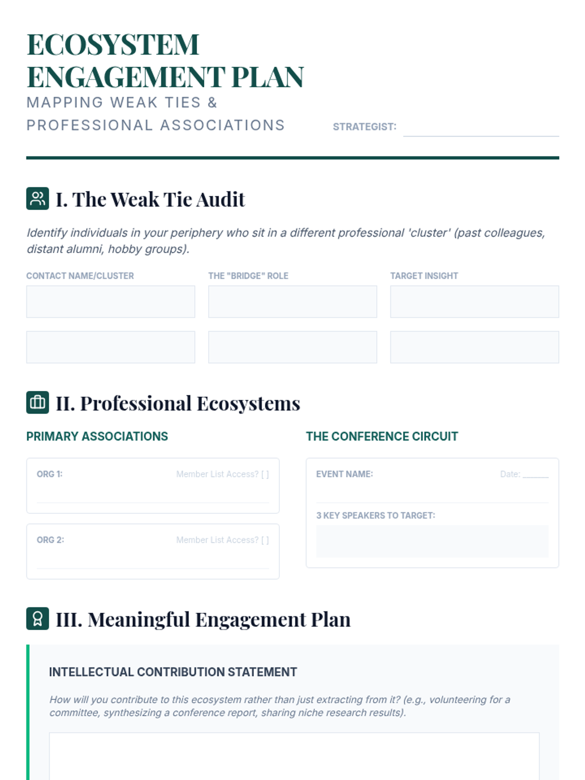 A high-level research-driven approach to career exploration for graduate students, focusing on macro-level market analysis, mapping the hidden job market, and strategic professional relationship engineering. Students move beyond job boards to understand the 'hidden job market' through strategic networking and ecosystem analysis.