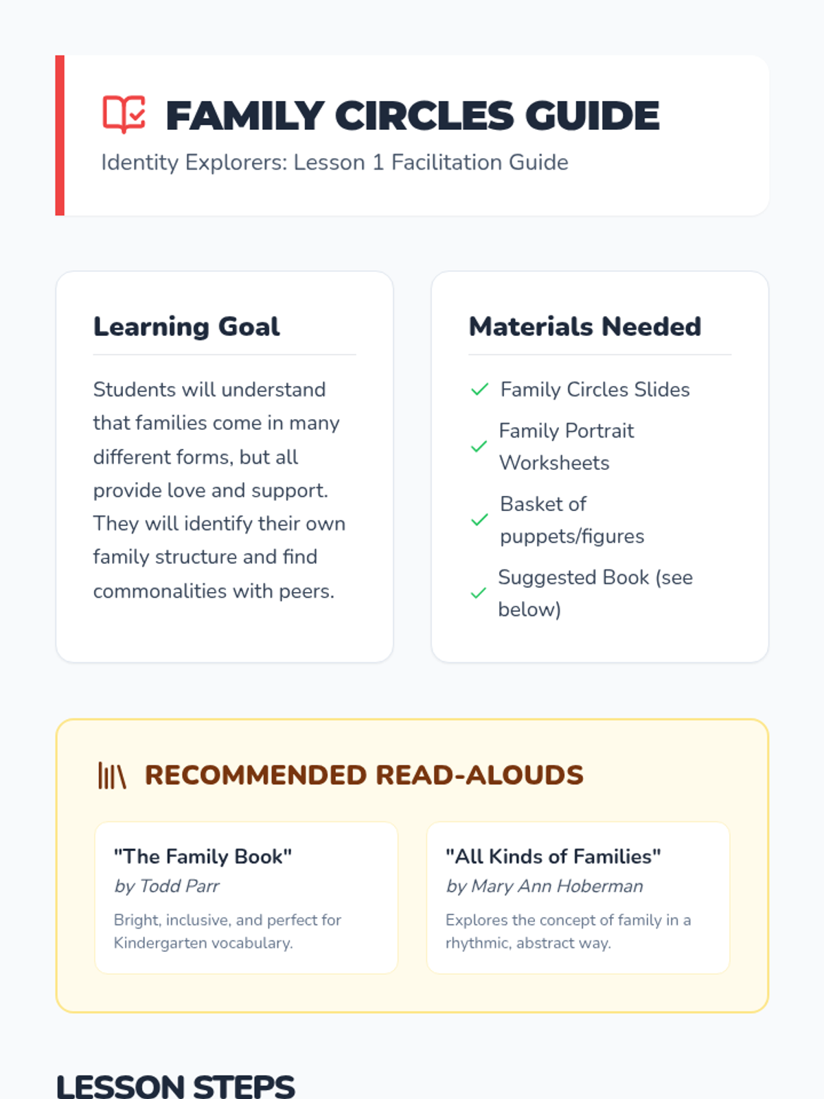This Kindergarten Social Studies sequence explores social identity by examining how students fit into families, the classroom, and the wider community. Students learn that their personal identity is shaped by the groups they belong to through literature, discussion, and hands-on activities.