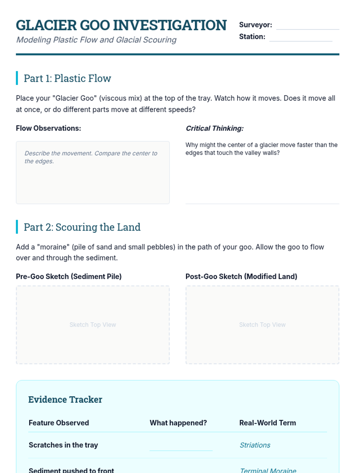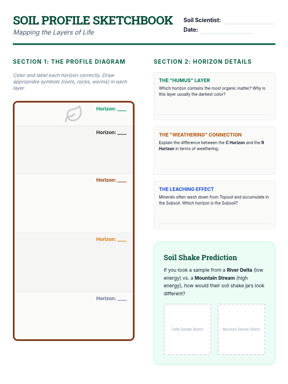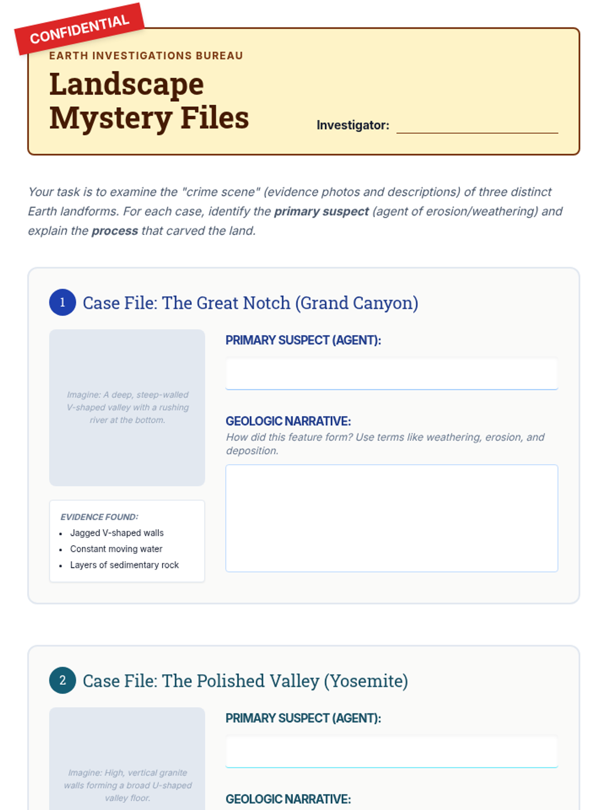 This unit explores the slow but relentless forces that wear down Earth's surface: weathering, erosion, and deposition. Students will investigate chemical and mechanical weathering, model river dynamics with stream tables, explore glacial impacts, analyze soil profiles, and synthesize their learning by interpreting real-world landforms.