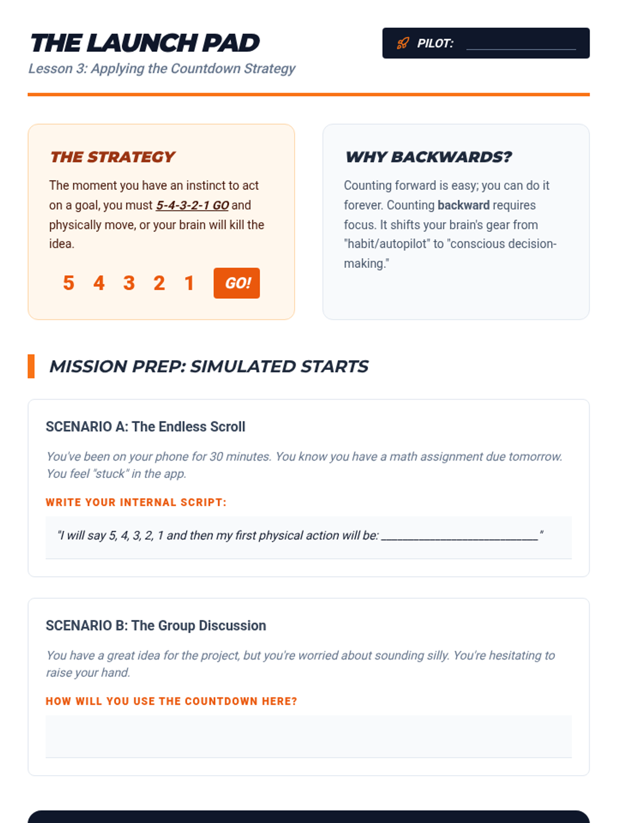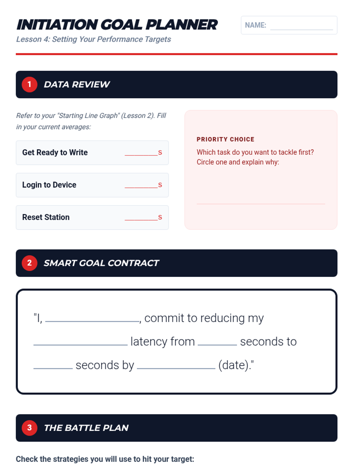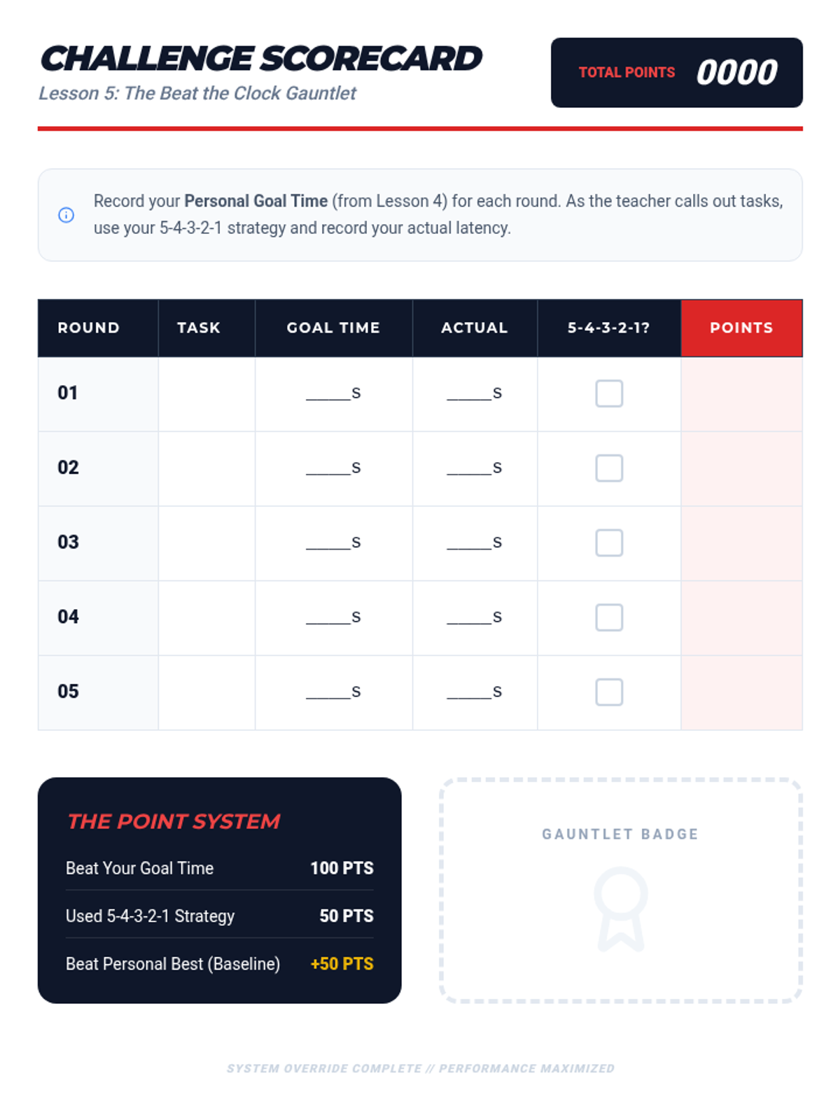 A data-driven executive function sequence where students learn to measure, monitor, and reduce 'latency' (the time between a request and action) using timers and cognitive strategies. Students move from passive resistance to active self-regulation by turning task initiation into a personal performance challenge.
