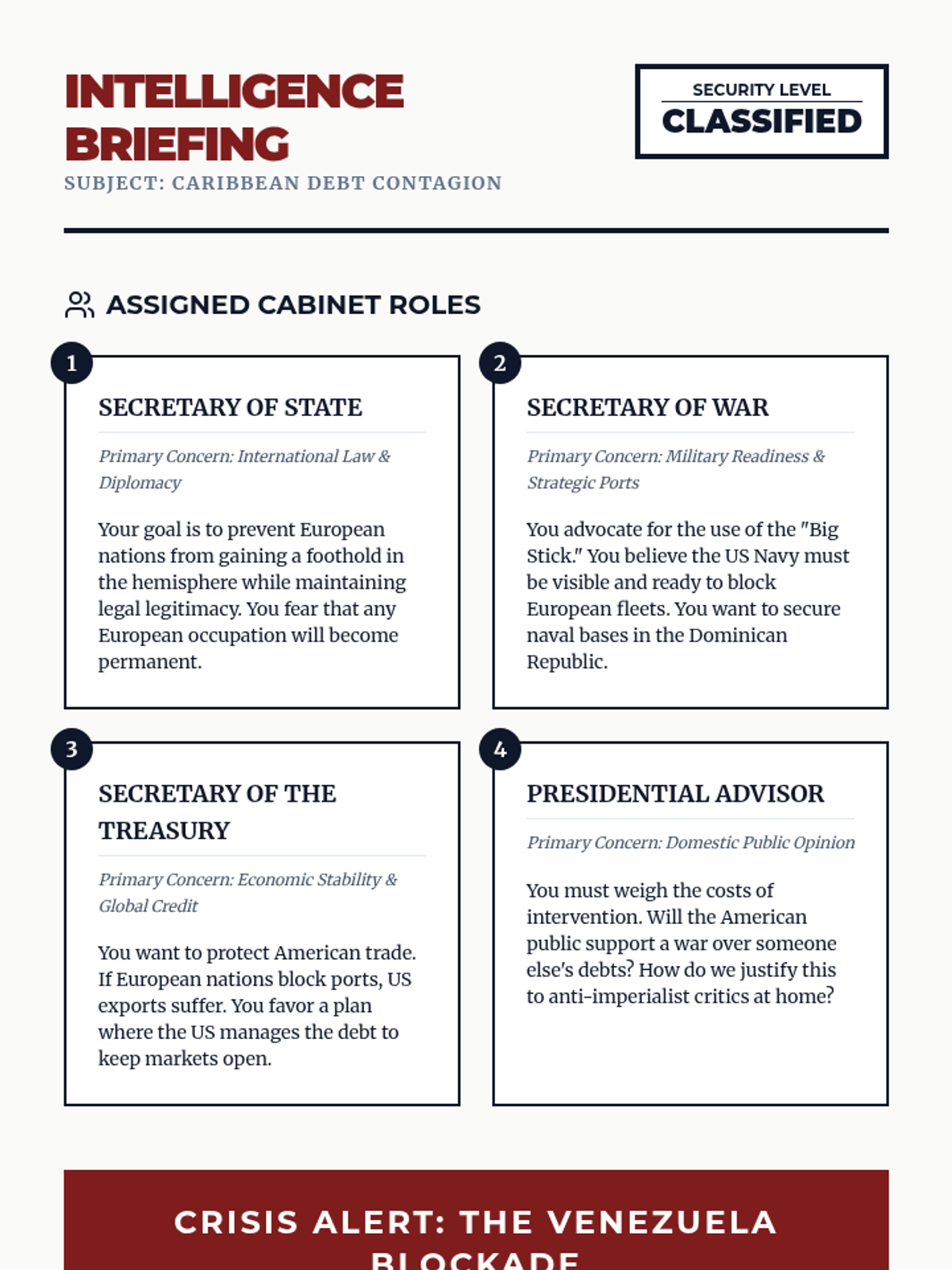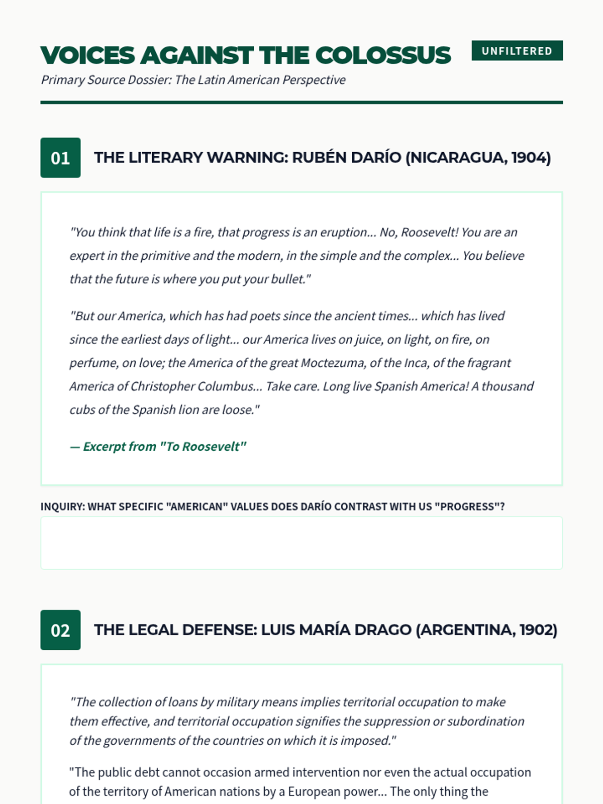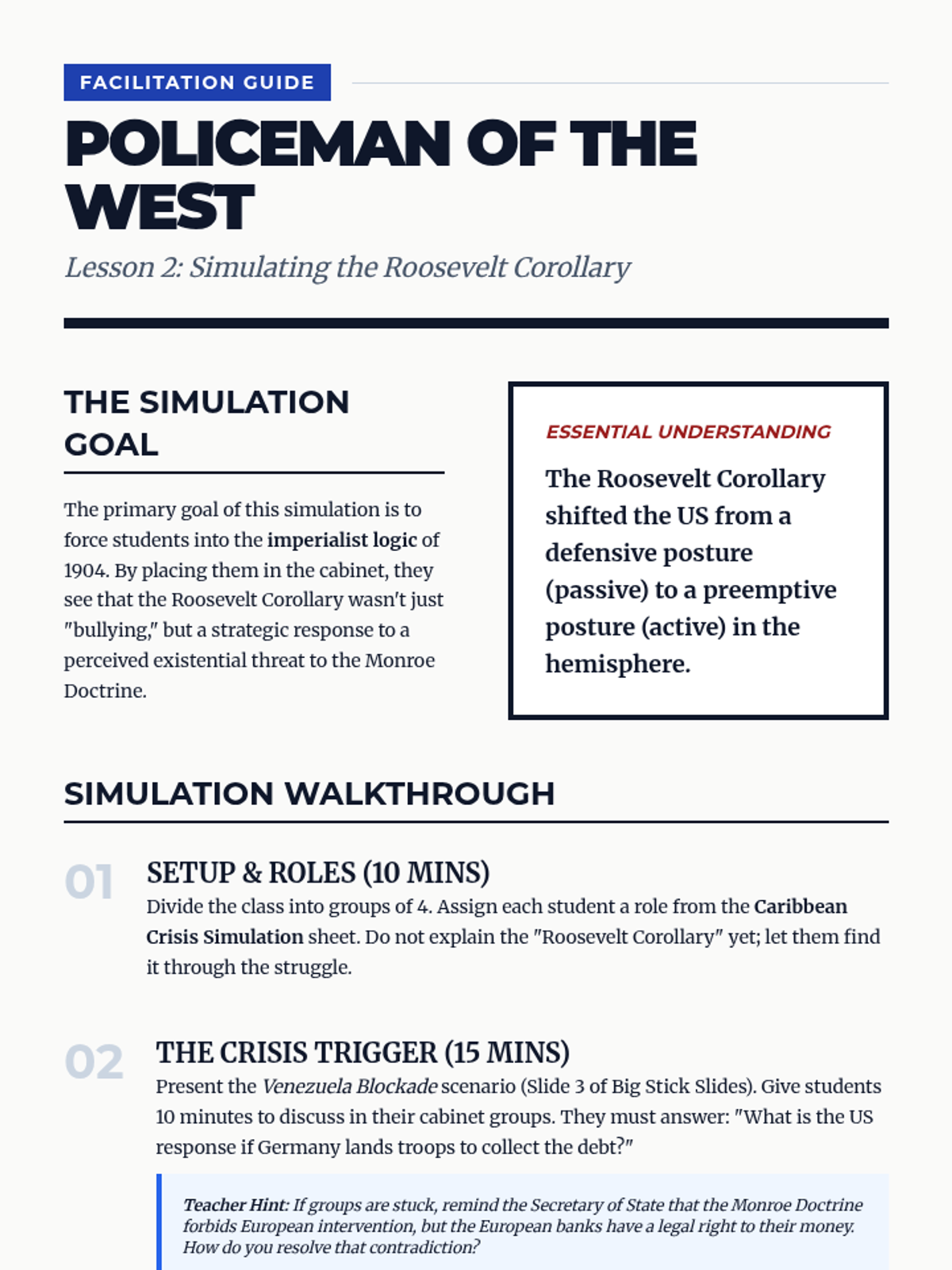 A 12th-grade history sequence exploring the shift in US foreign policy in Latin America from the Panama Canal to Wilson's Moral Diplomacy. Students use simulations, primary source analysis, and comparative studies to evaluate the motivations and impacts of interventionism.