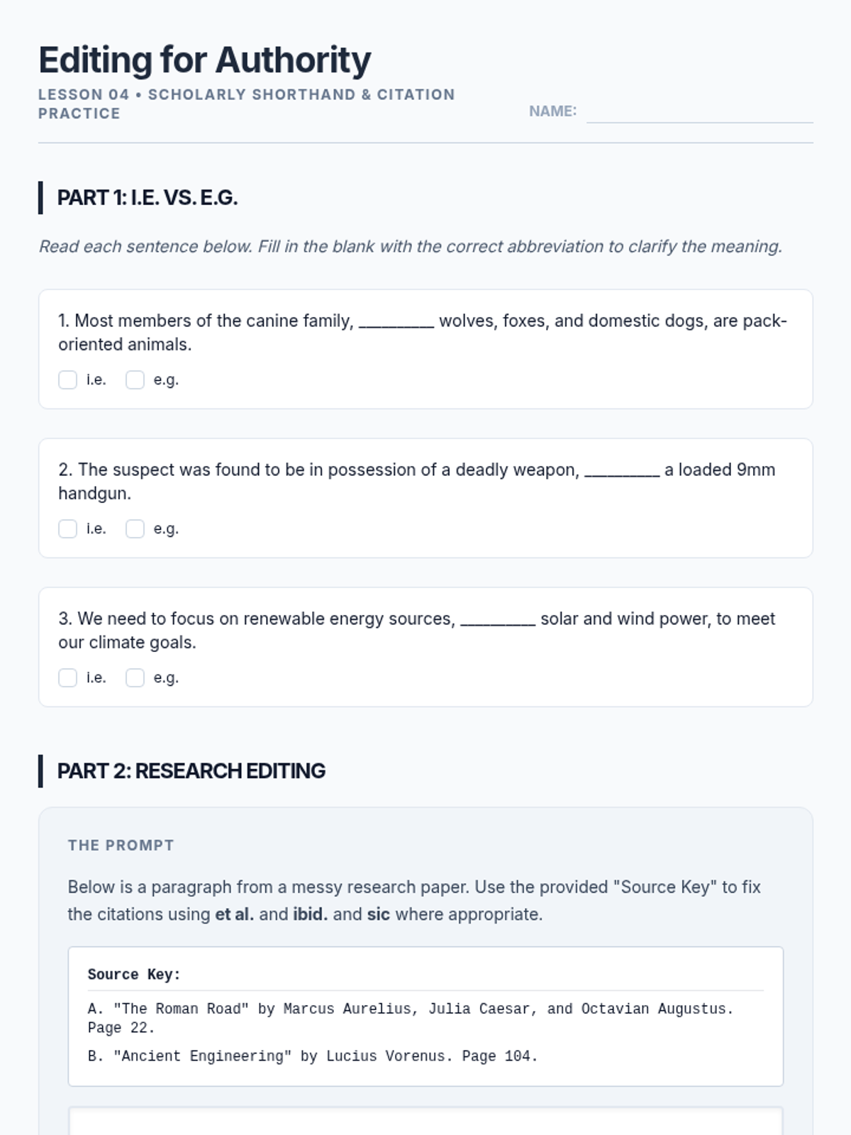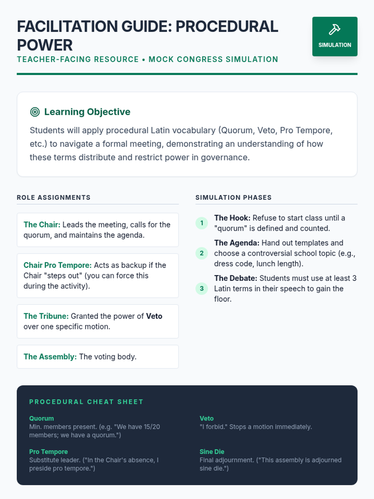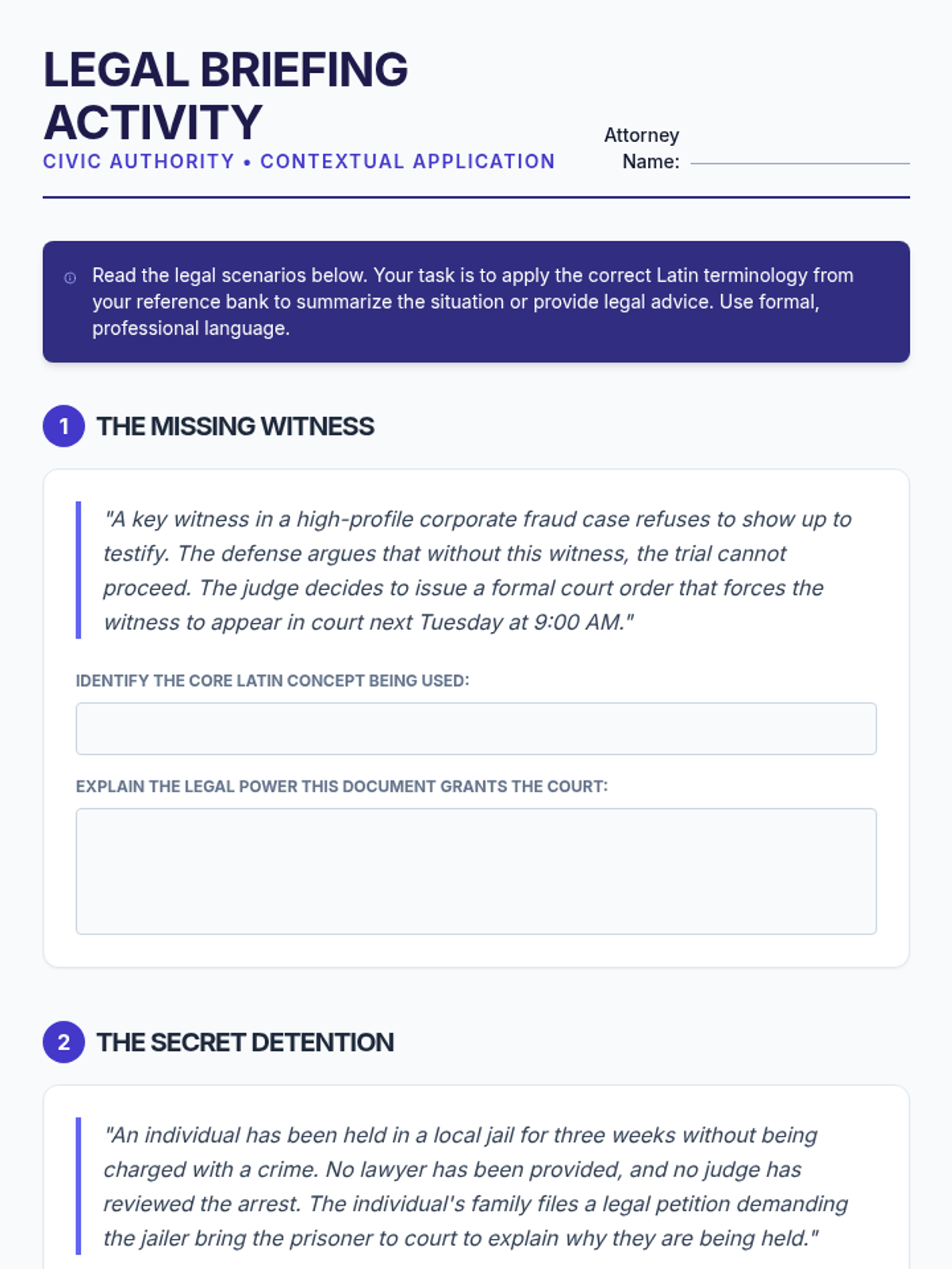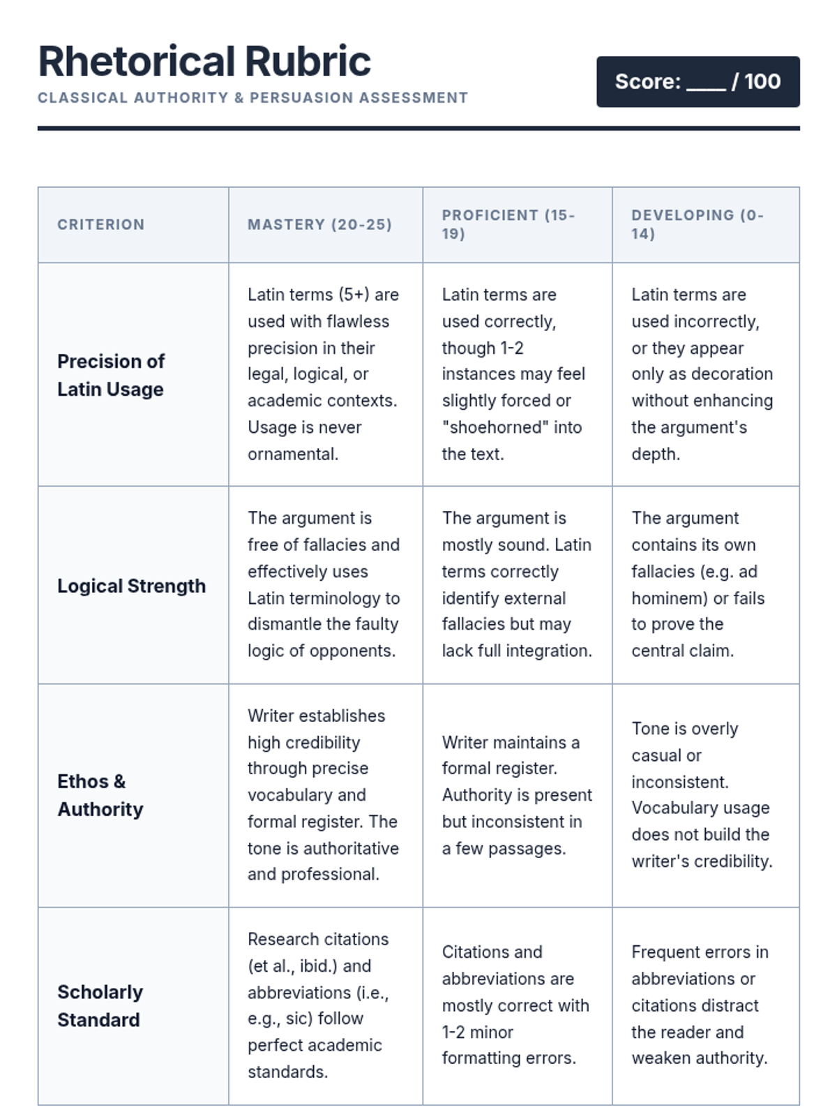 This high school ELA sequence explores Latin terminology in rhetoric, law, and academia. Students move from identifying logical fallacies to applying legal concepts and scholarly abbreviations, culminating in a persuasive project that leverages classical authority for modern argumentation.