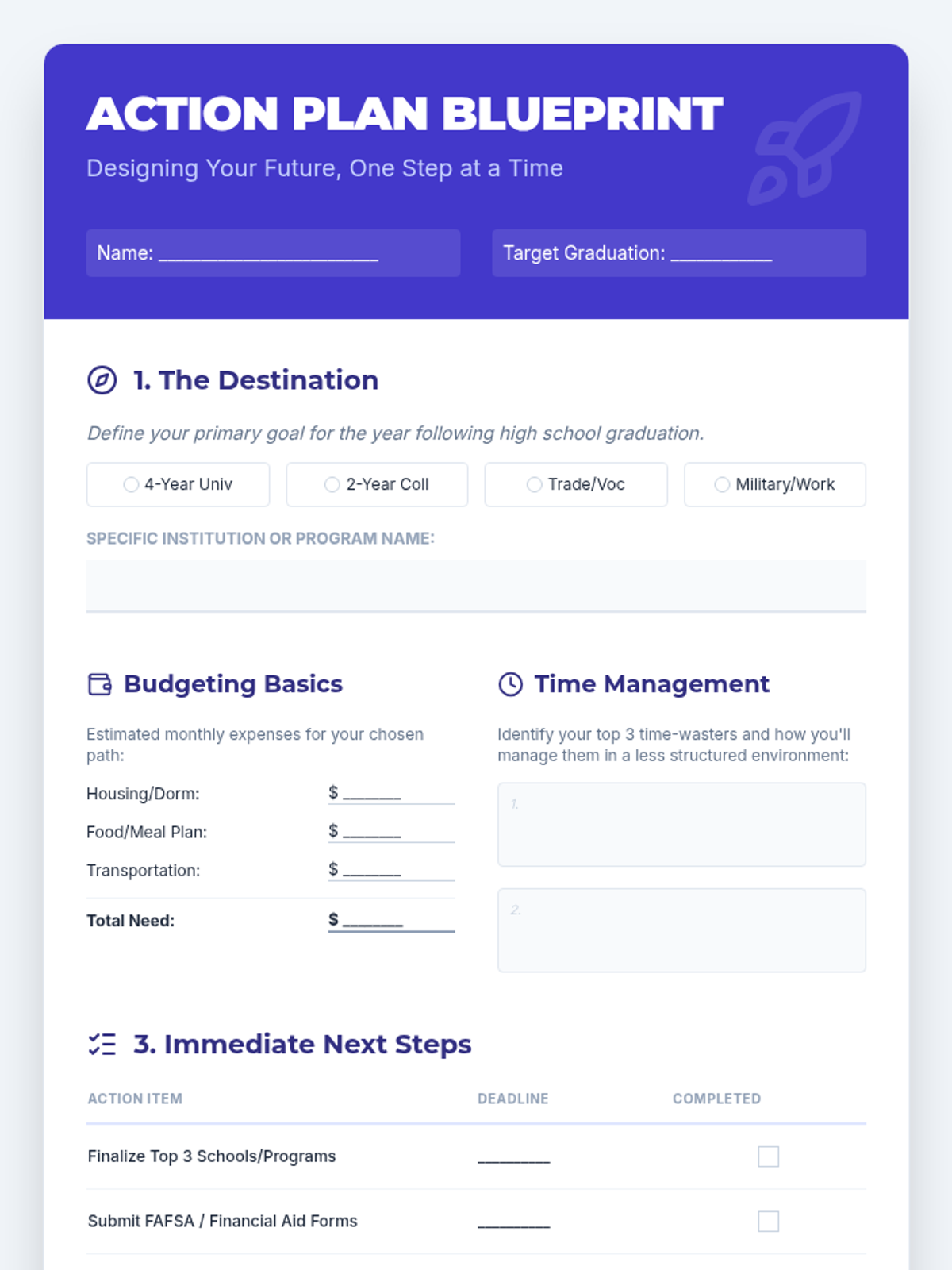 A comprehensive guide to help students navigate the transition from high school to post-secondary life, covering career exploration, college applications, financial aid, and essential life skills.