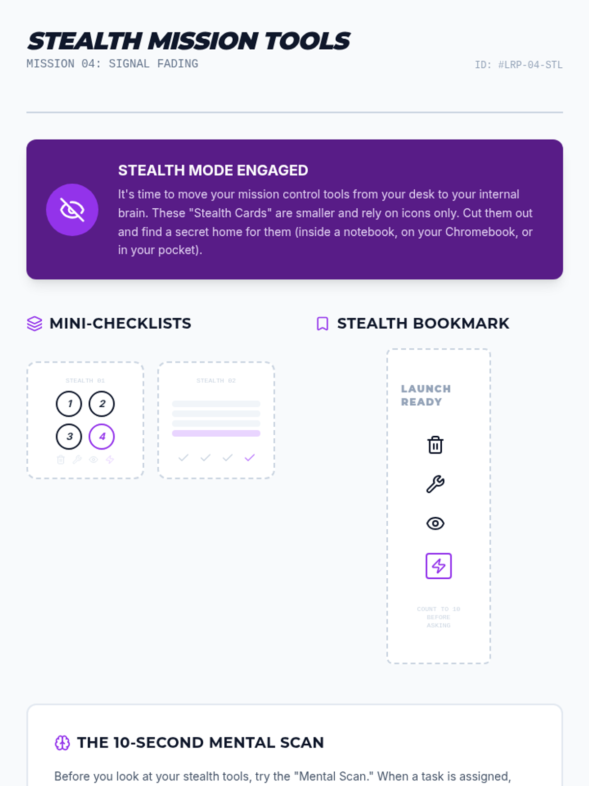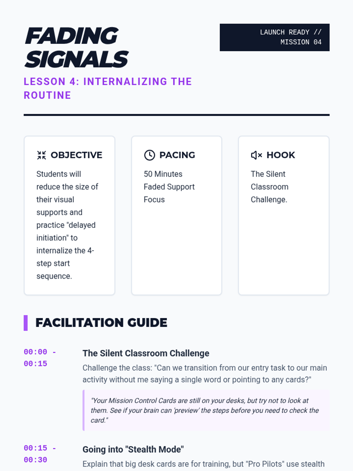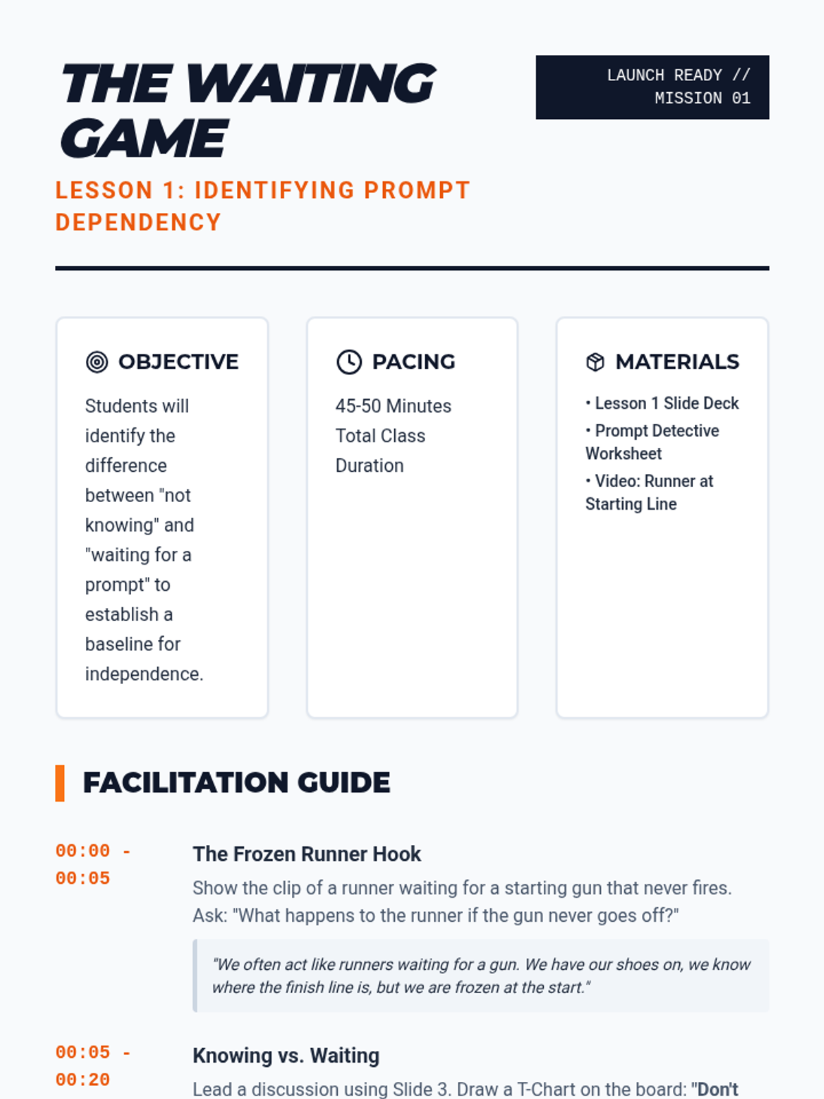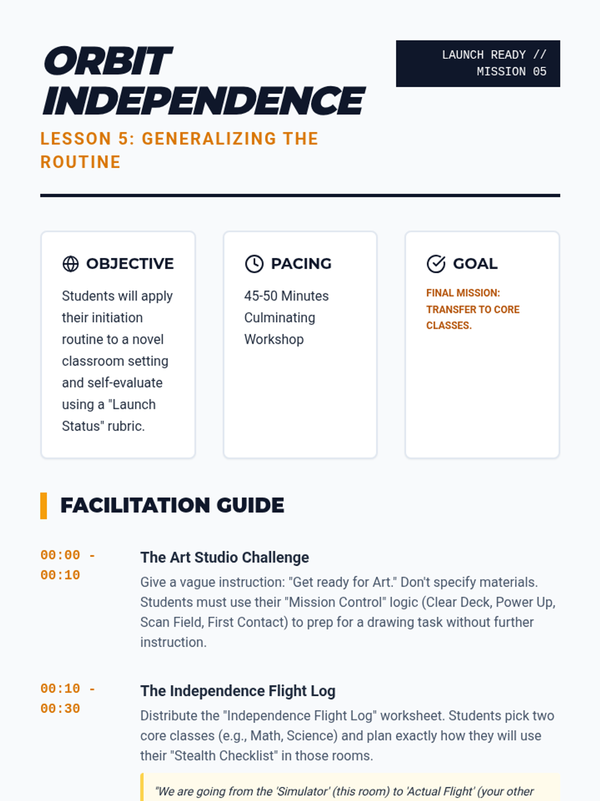 A specialized sequence for 6th-grade students to build independence in task initiation. It moves from identifying prompt dependency to using and internalizing visual checklists, helping students overcome 'waiting behavior' through systematic prompt fading.