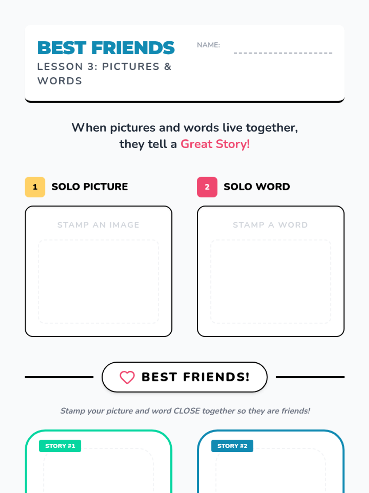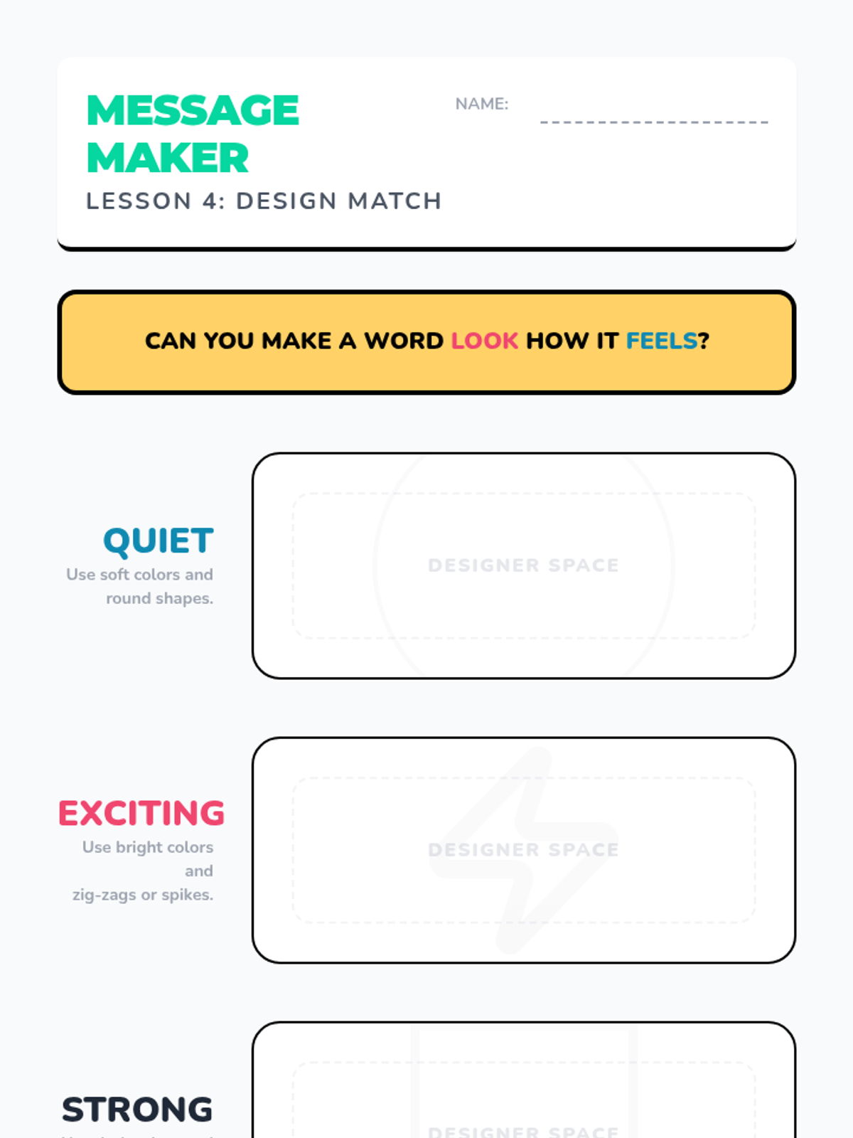 An introductory graphic design sequence for 1st graders, exploring typography, layout, and visual communication through printmaking and stamping.