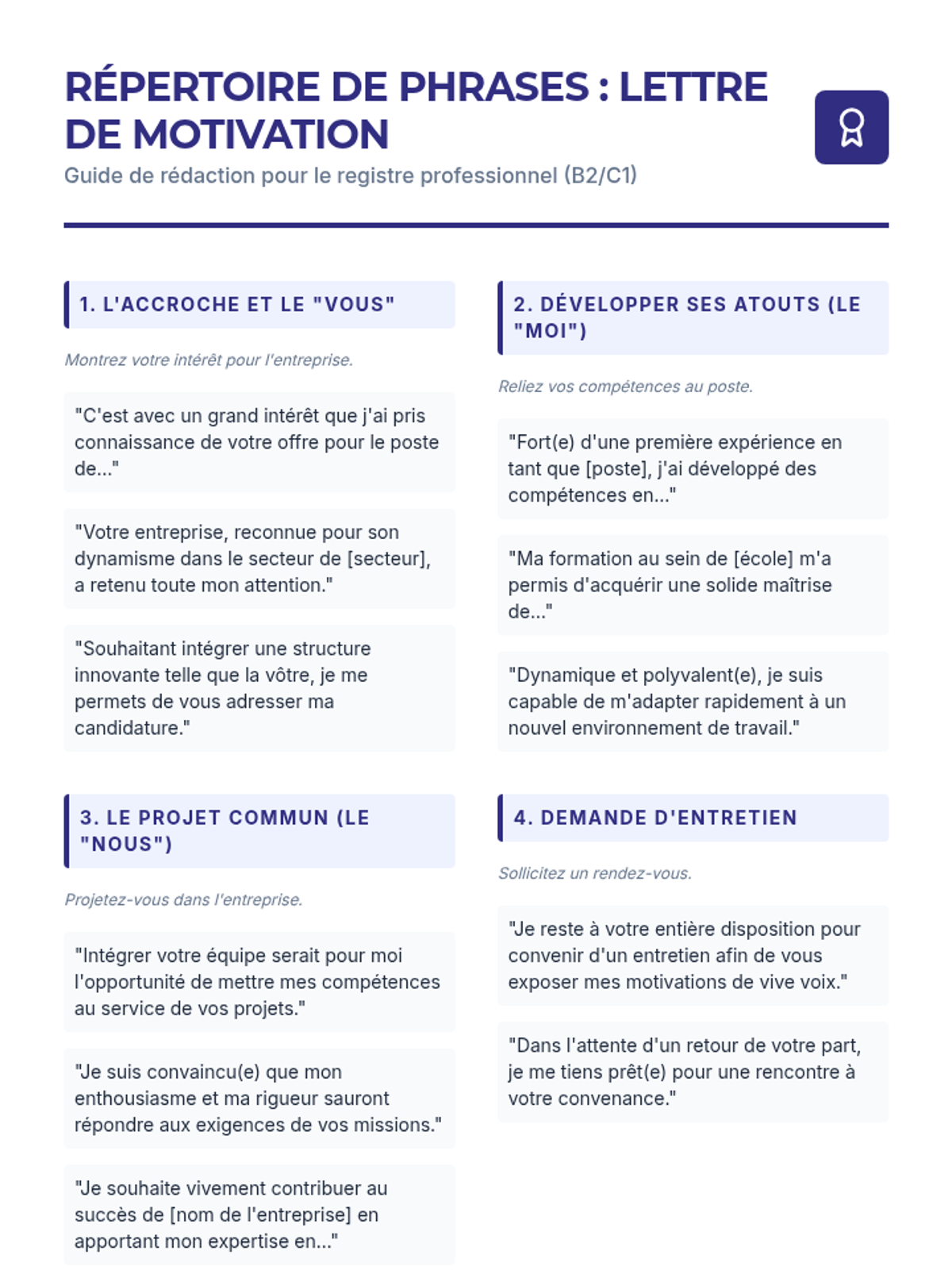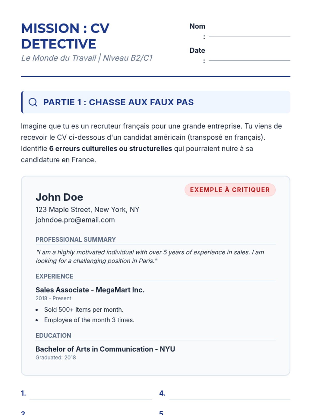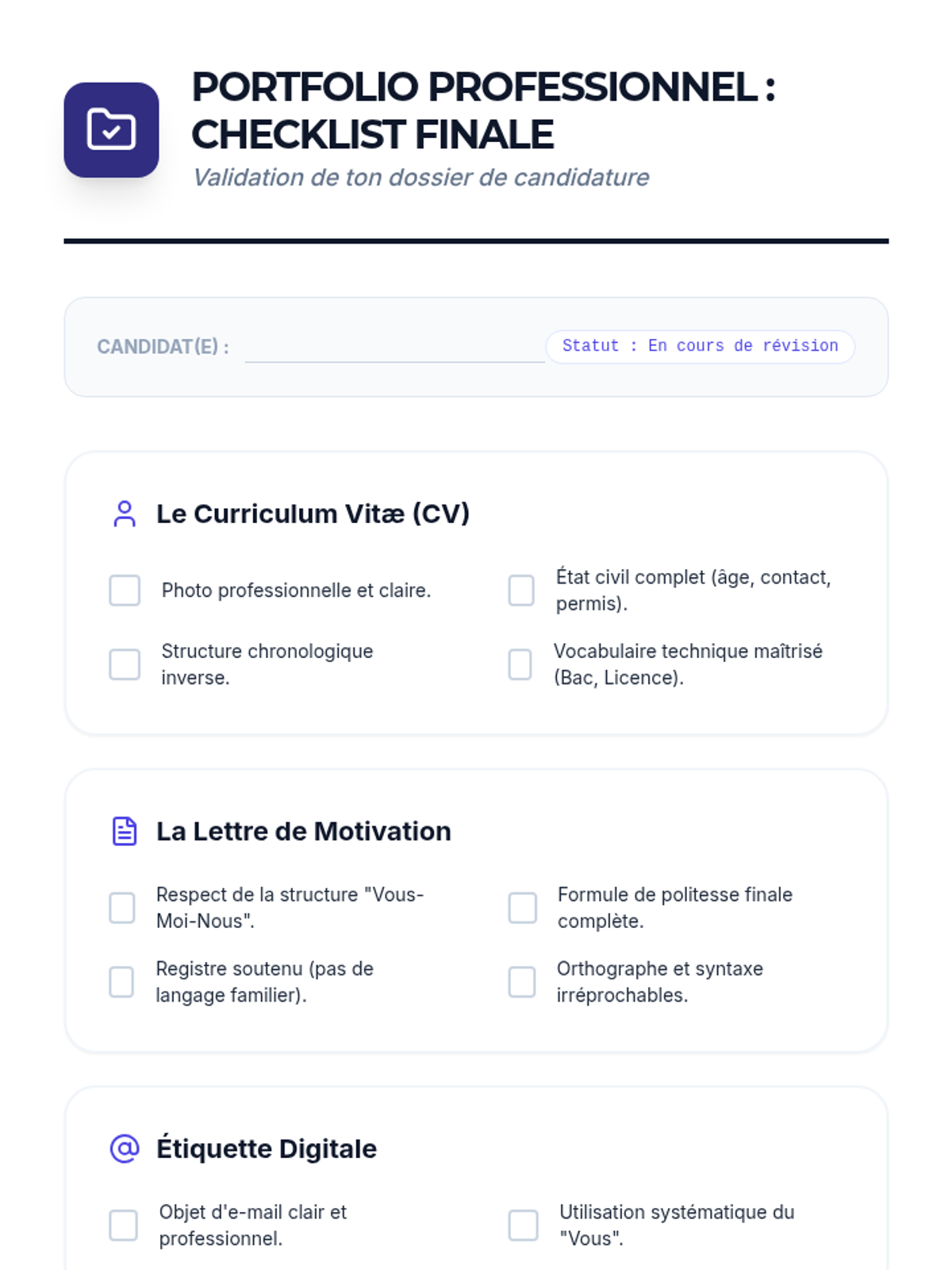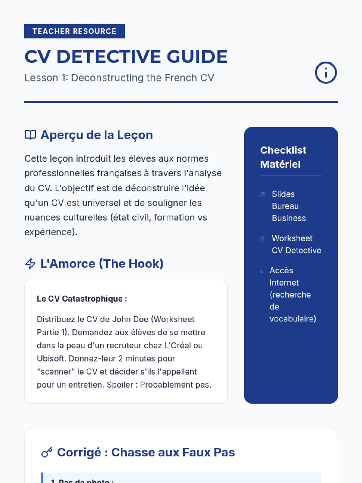 A comprehensive unit for 11th-grade French students on the conventions of professional writing in the Francophone world. Students learn to navigate the cultural nuances of CVs, letters of motivation, and digital etiquette to build a professional portfolio.